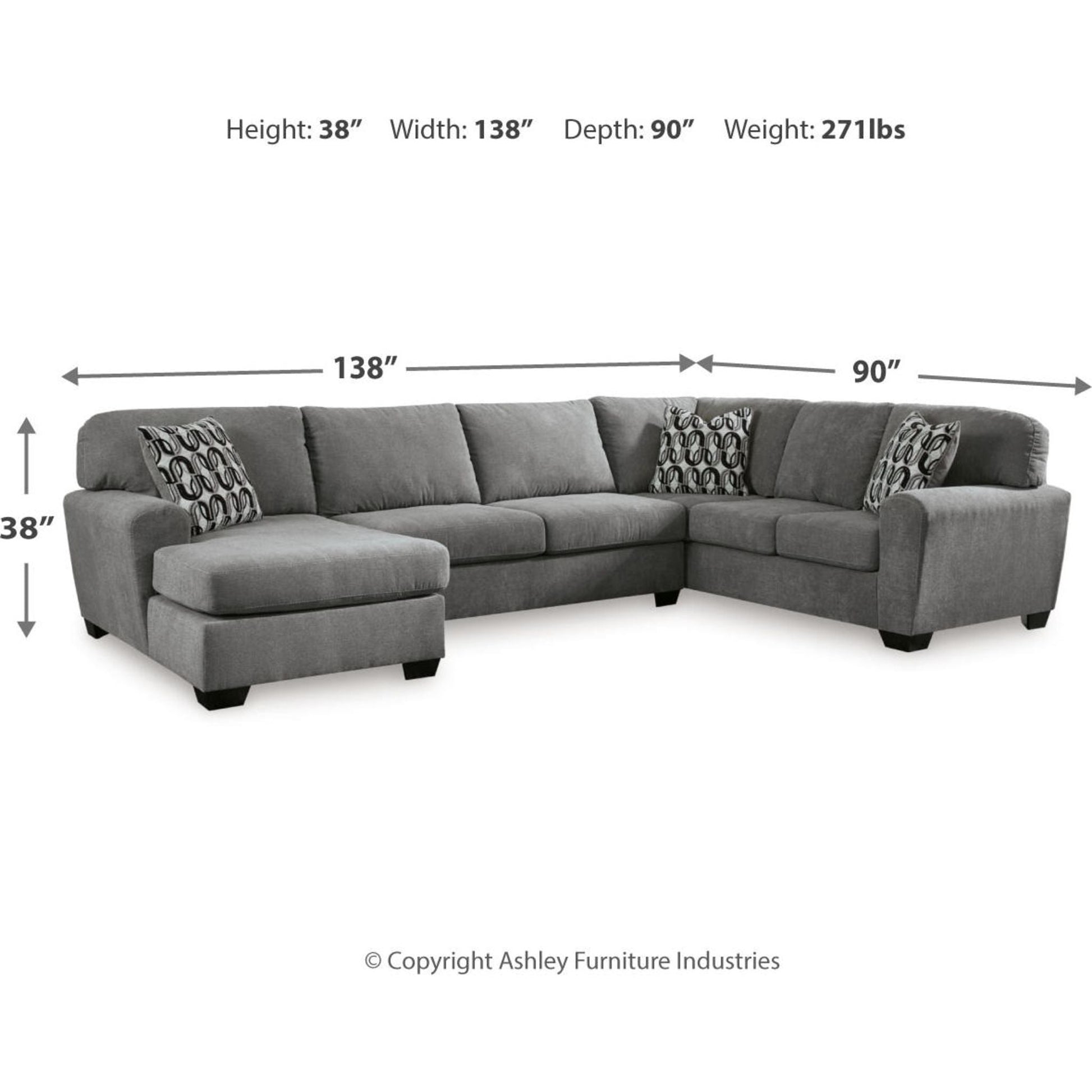 Birkdale Court 3 Piece Sectional with Chaise
