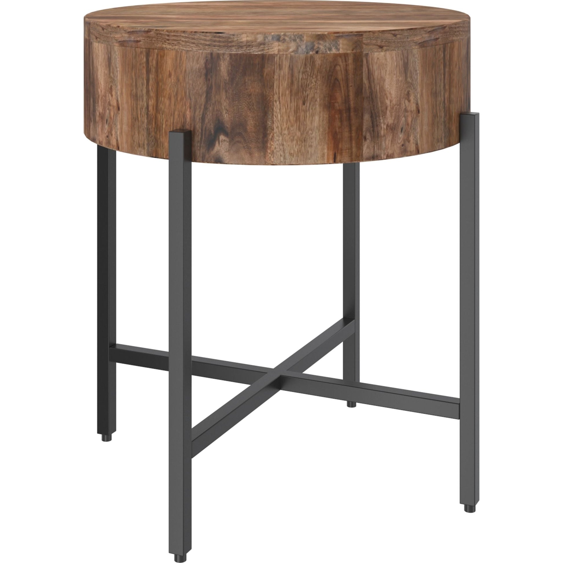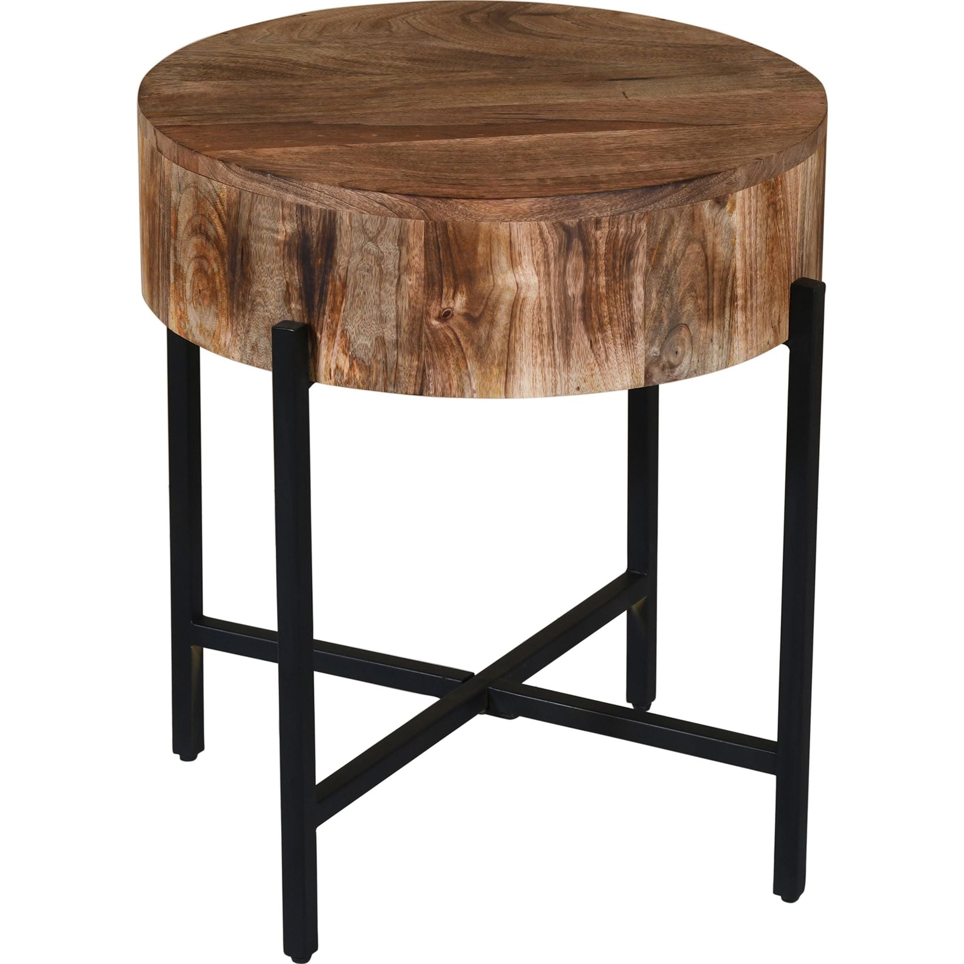 This industrial-inspired accent table takes a contemporary spin with the hand-crafted finish on the beautiful and sustainable mango wood top. The black iron provides strong, sturdy support and lends extra style credit with the cross-base design. Overall a gorgeous piece to place as an end table in the living room, in a hallway, or by a bedside.