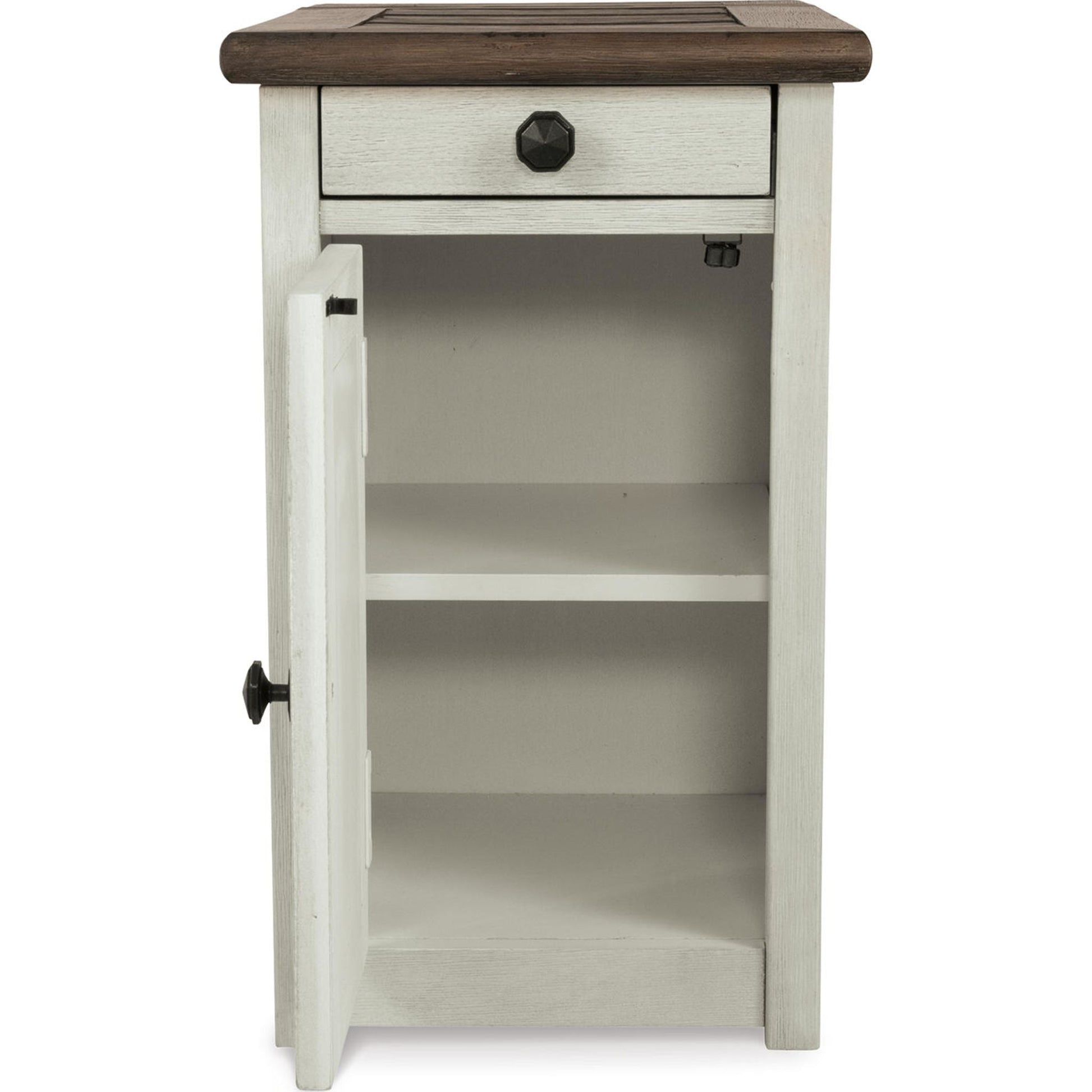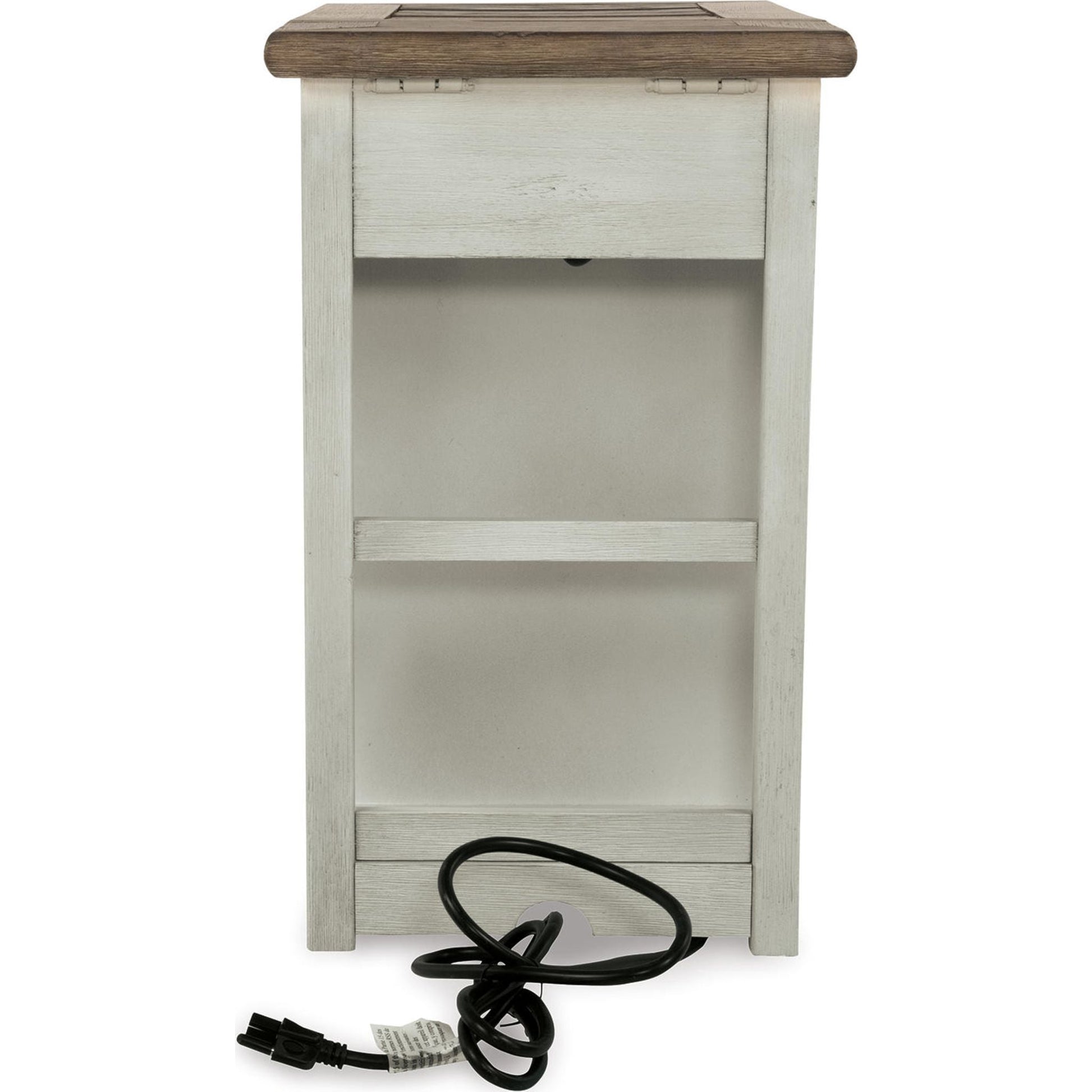 Display and contain your favorite things with this end table. Its textured antique white finish creates a vintage two-tone look, while outlets and USB ports provide functionality. This is a piece you will enjoy for years to come.