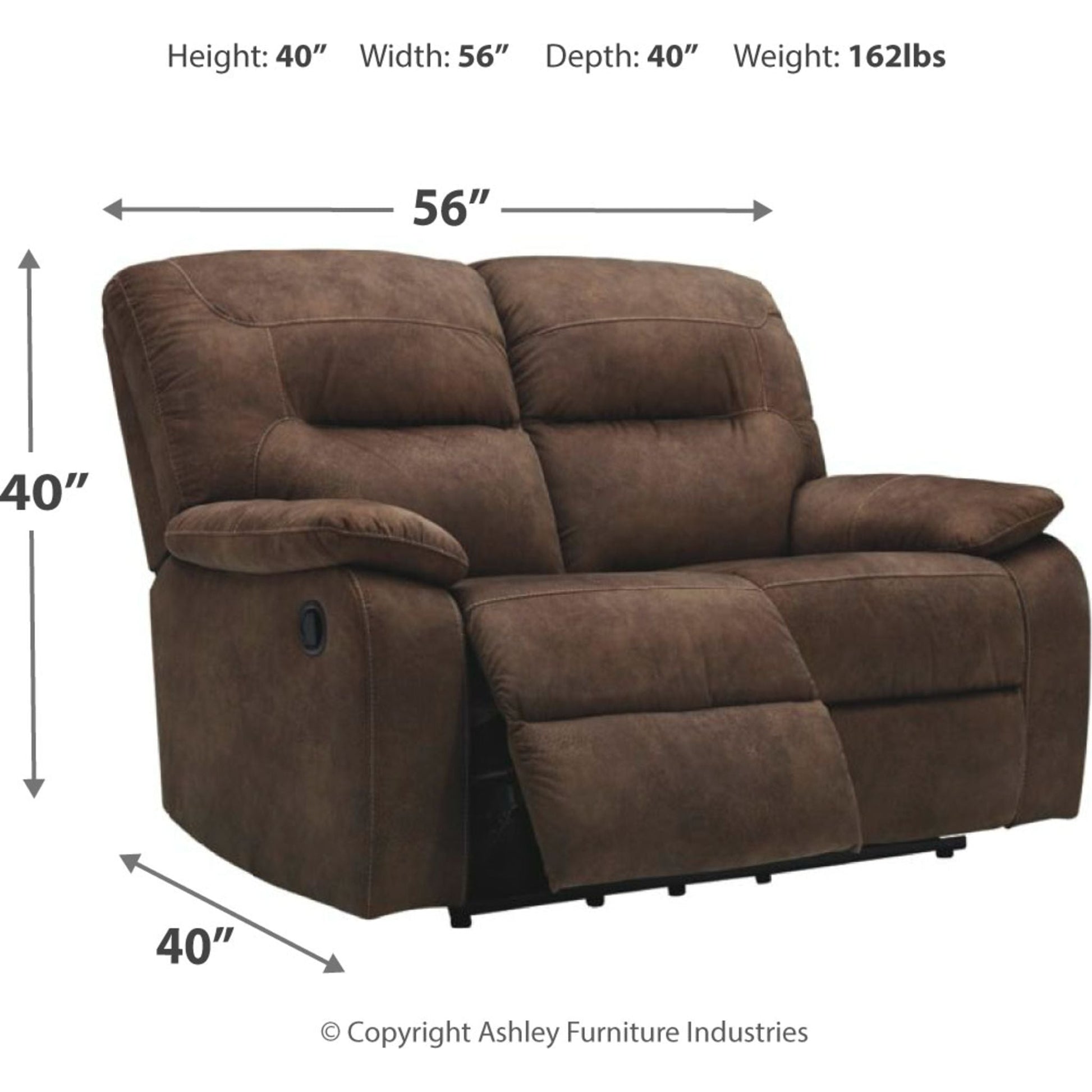 Looking for a sleek 2-seater? This reclining loveseat is your saving grace. Coffee brown microfiber cover is soft to the touch and padded for your comfort. Beautiful lines exhibit exceptional craftsmanship. Smaller-than-normal scale brings quality to even compact spaces. Now you can worry less about finding the perfect recliner for your room and relax more.