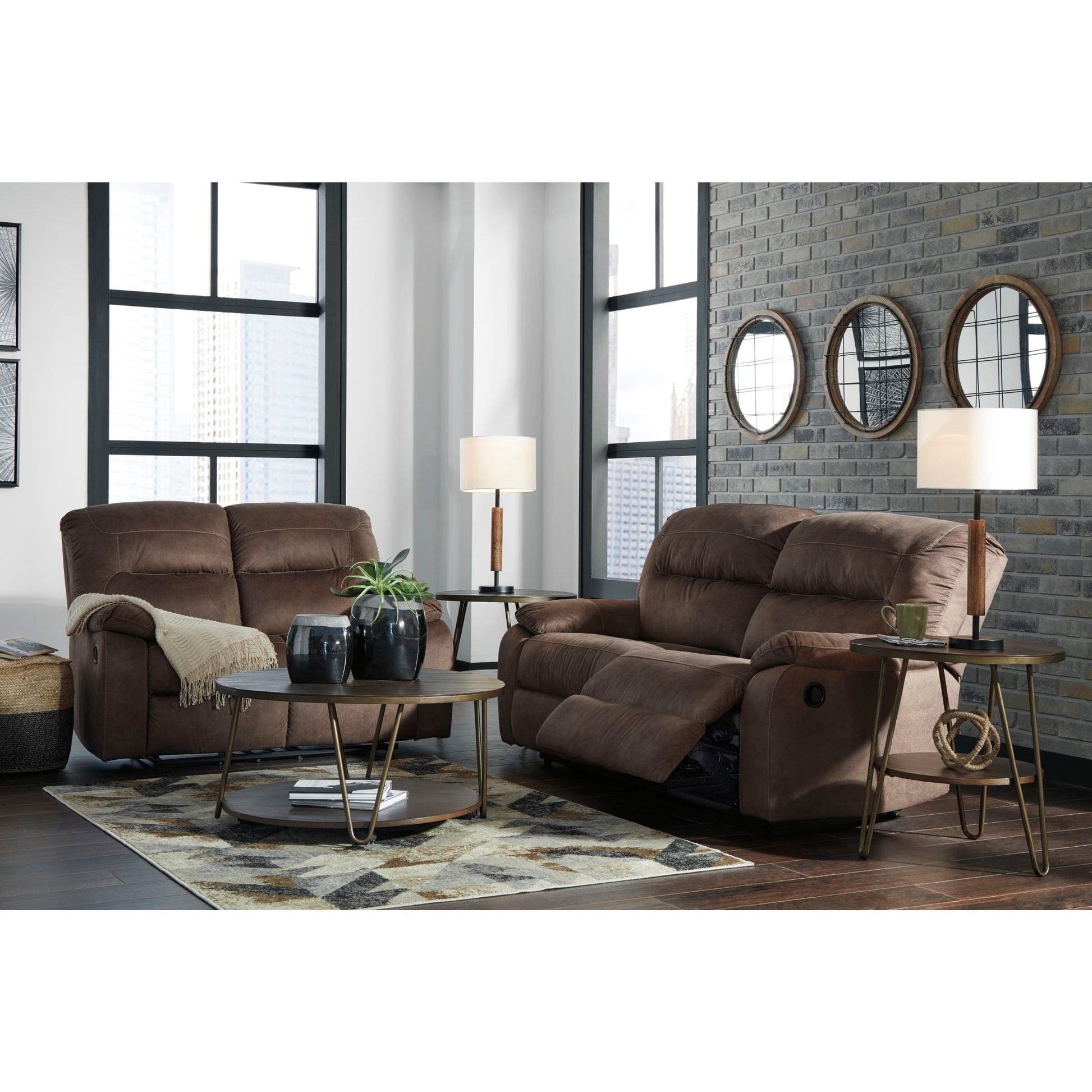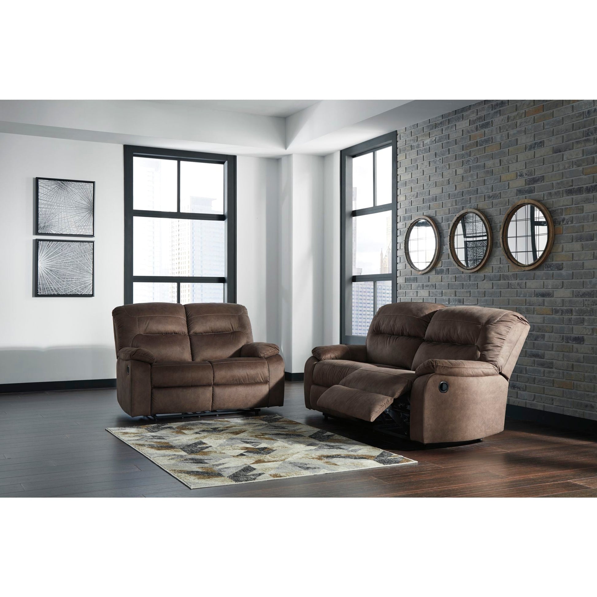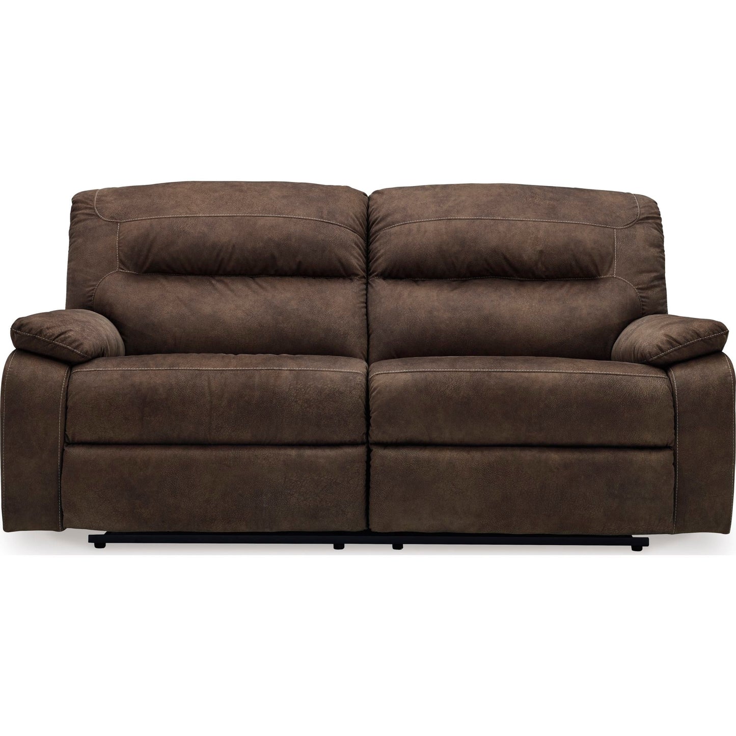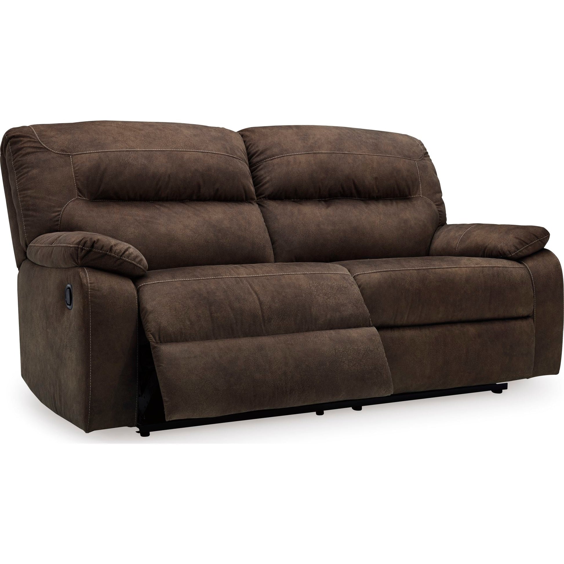 Looking for a sleek 2-seater? This reclining sofa is your saving grace. Coffee brown microfiber cover is soft to the touch and padded for your comfort. Beautiful lines exhibit exceptional craftsmanship. Smaller-than-normal scale brings quality to even compact spaces. Now you can worry less about finding the perfect recliner for your room and relax more.