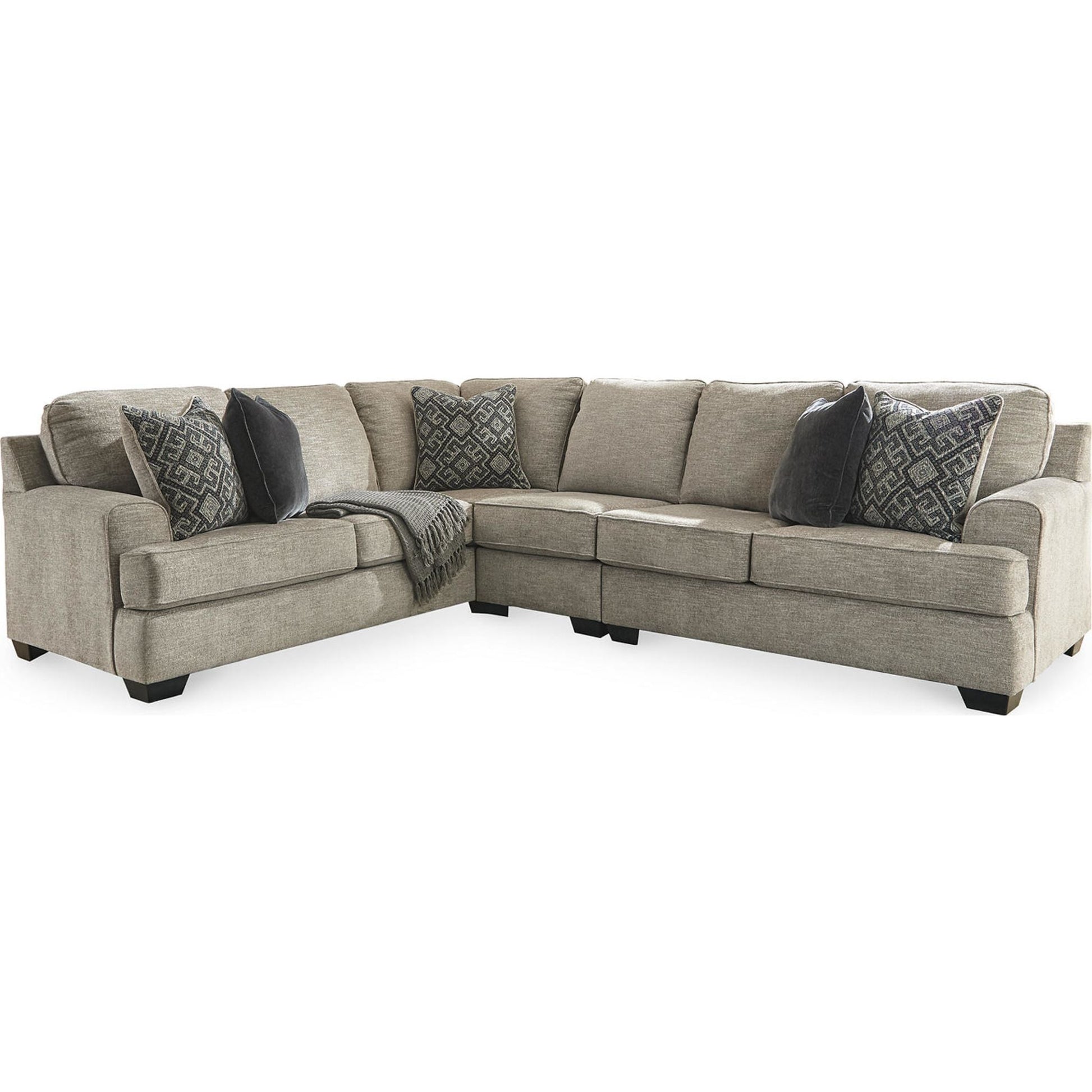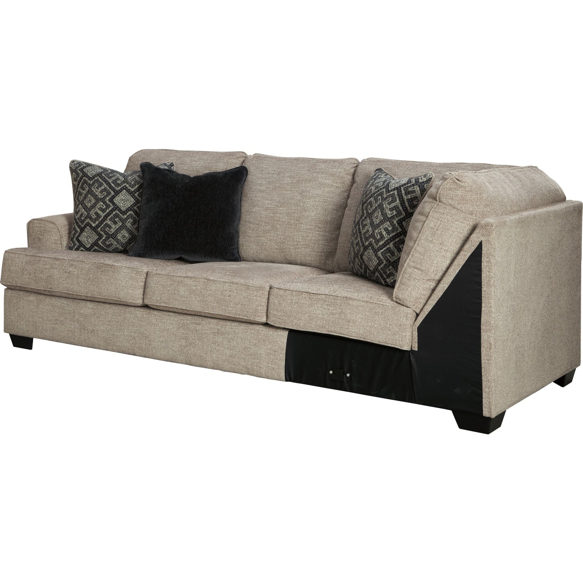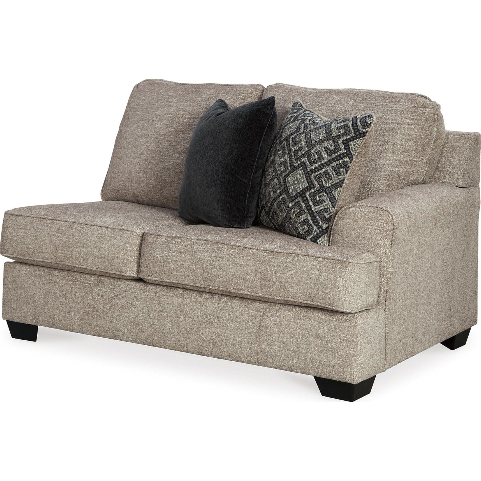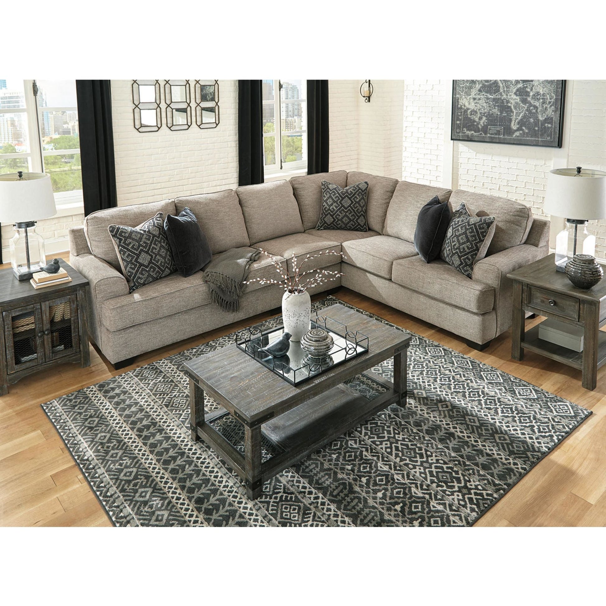 Whether your vision is clean and contemporary or cozy modern farmhouse, this sectional in a stone-tone neutral upholstery has the corner on style. Merging ultimate comfort with striking good looks, this chic sectional includes five coordinating accent pillows for that much more feel-good allure.