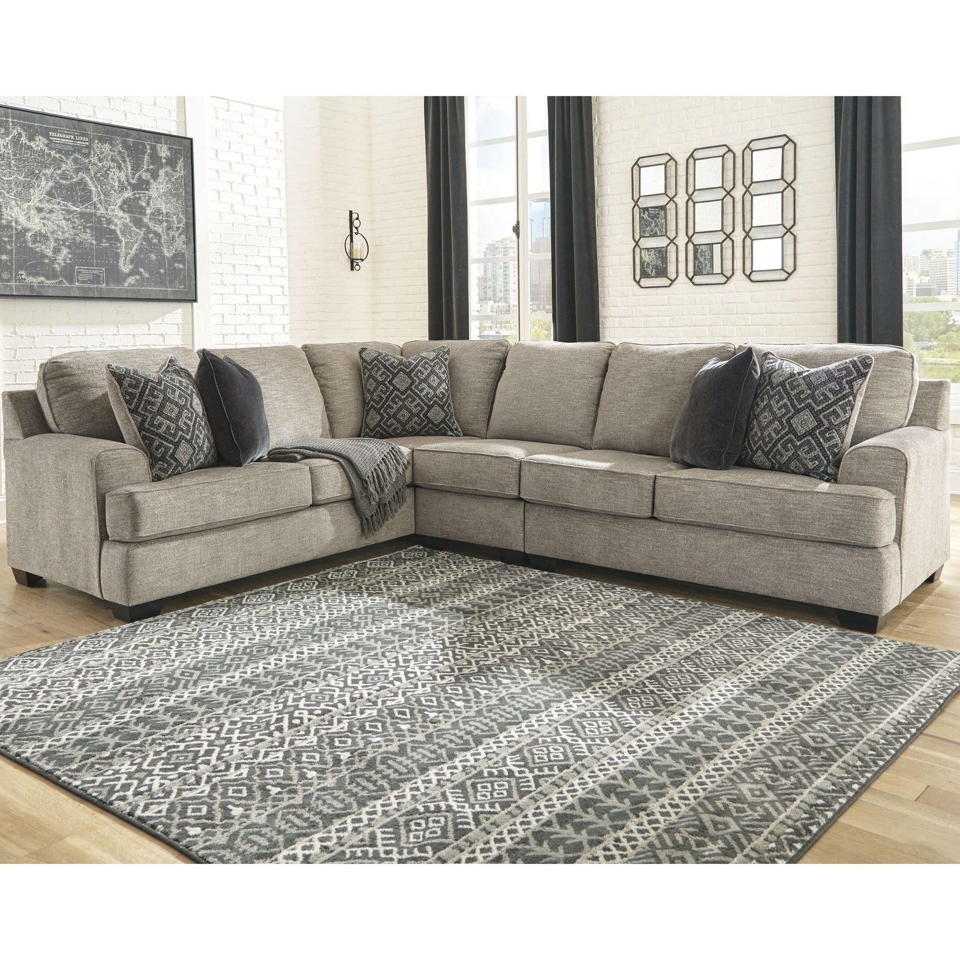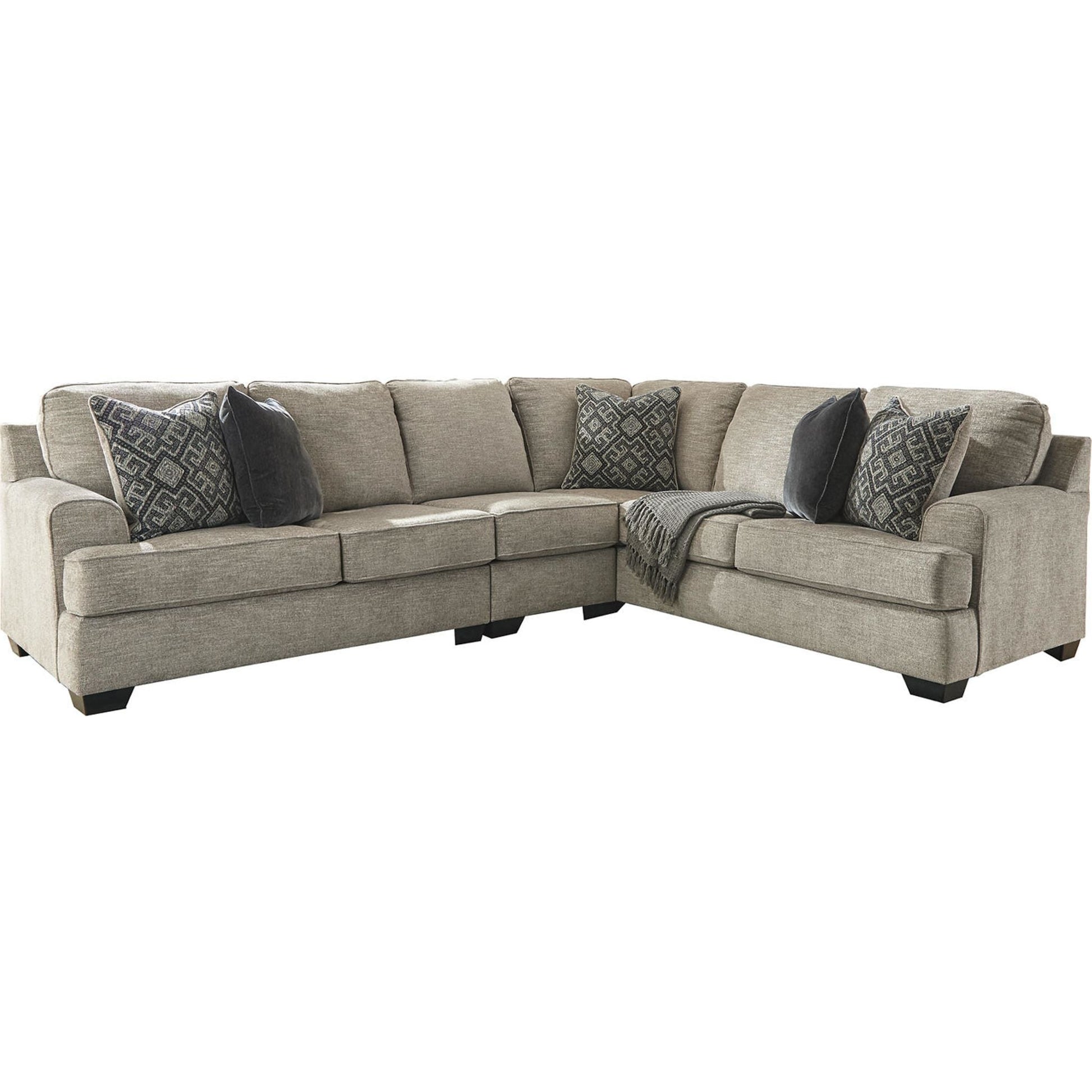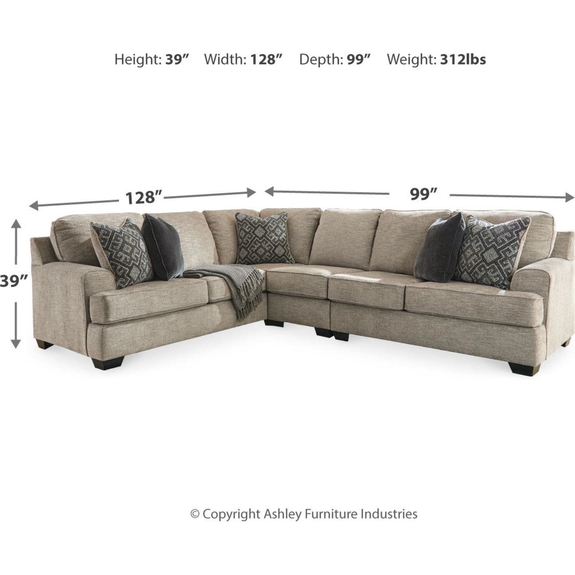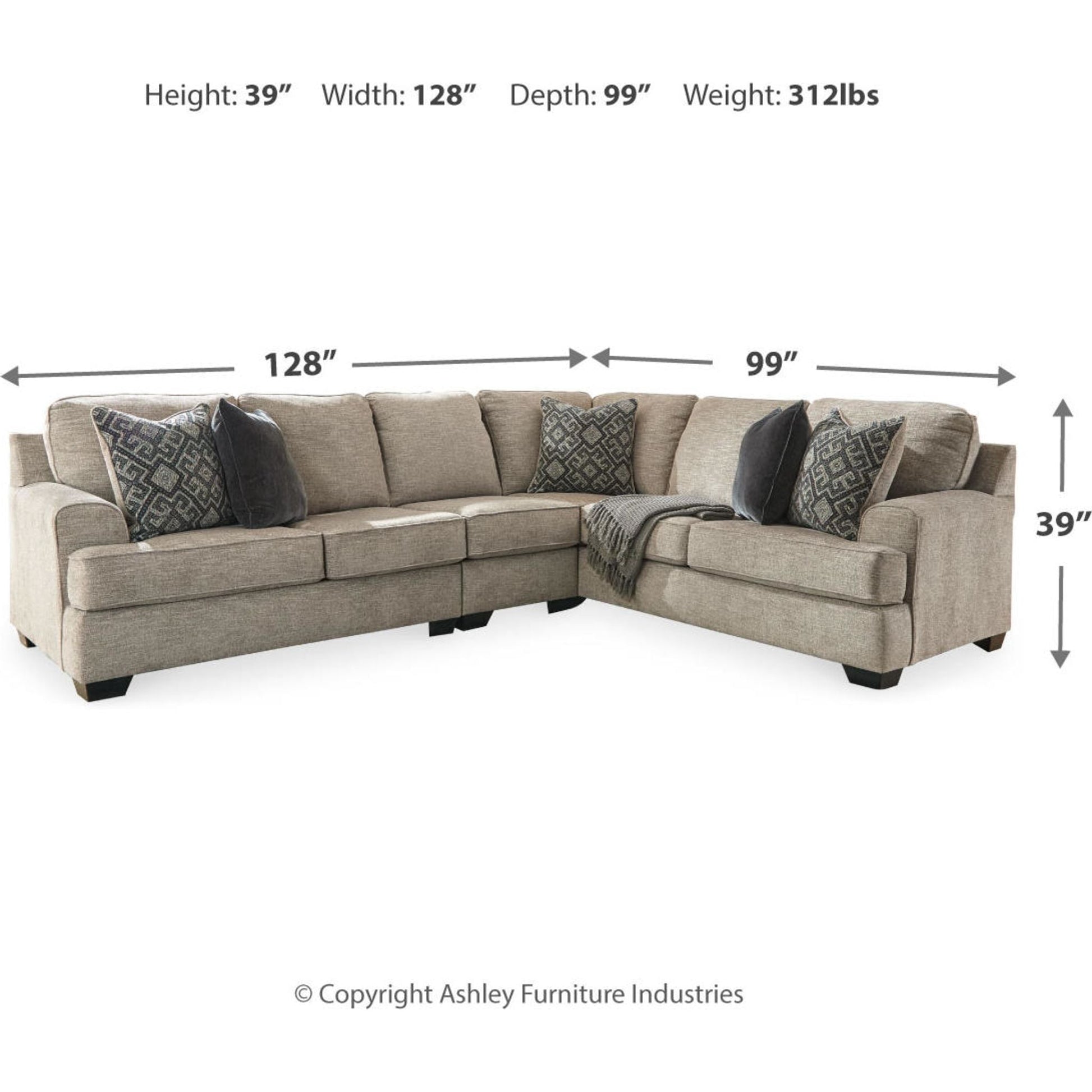 Whether your vision is clean and contemporary or cozy modern farmhouse, this sectional in a stone-tone neutral upholstery has the corner on style. Merging ultimate comfort with striking good looks, this chic sectional includes five coordinating accent pillows for that much more feel-good allure.