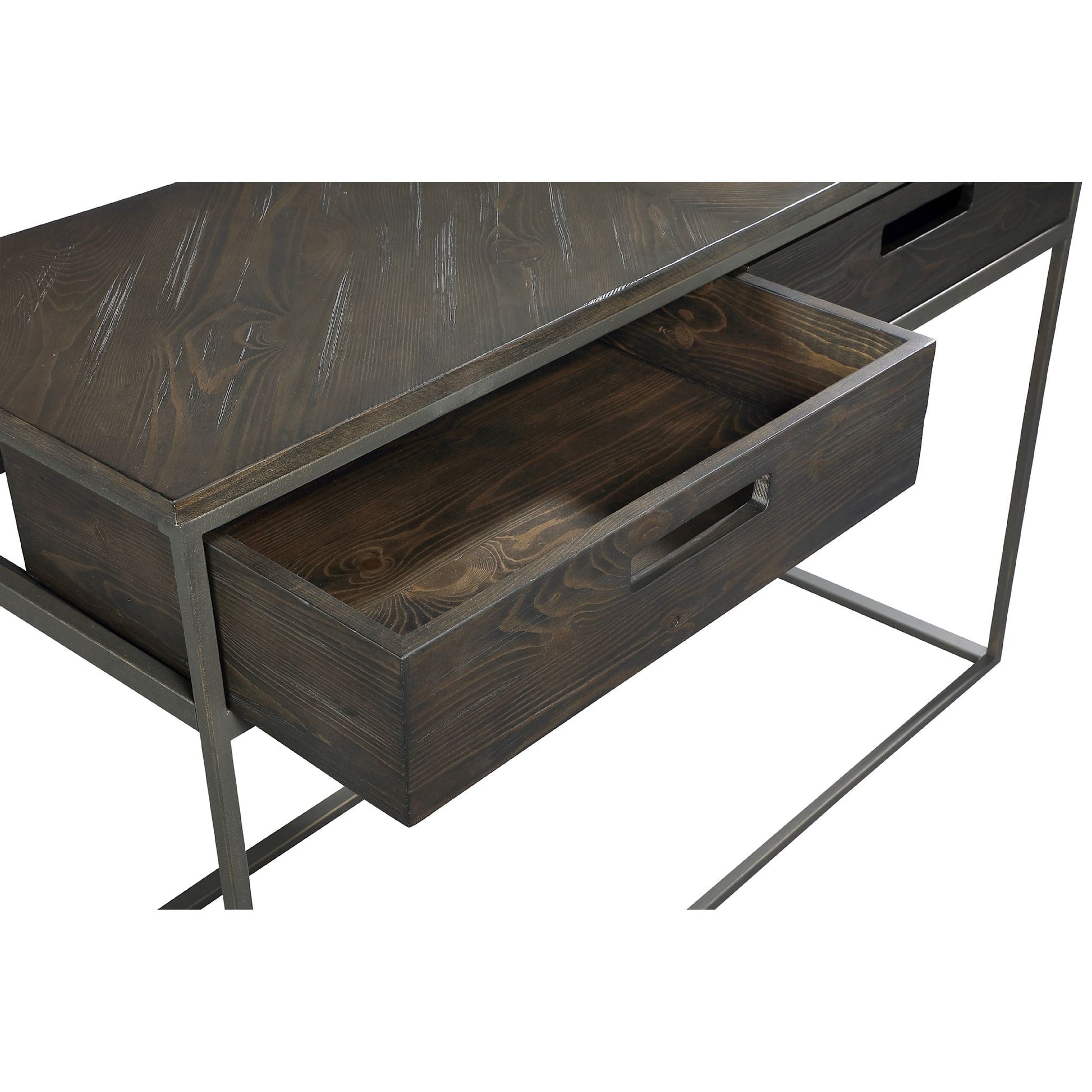 Crafted from solid pine and pine veneers with a metal base and ultra-clear glass tops, the Bradley collection is a beautiful addition to any room. This collection features oversized drawers that float inside a metal box style frame for a look that's equal parts rustic and modern.