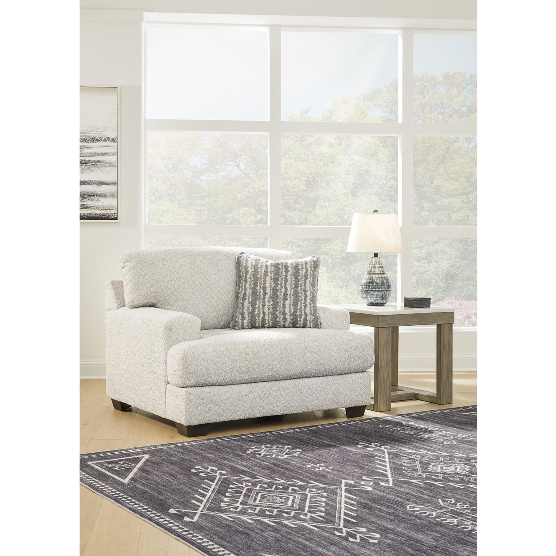 This oversized chair speaks to those drawn to fresh, contemporary style with richly neutral appeal. Wrapped in a wonderfully plush fabric loaded with multi-tonal interest, the on-trend chair has a warm, welcoming charm. Kick back, relax and settle in for comfort with this cool addition for modern spaces.