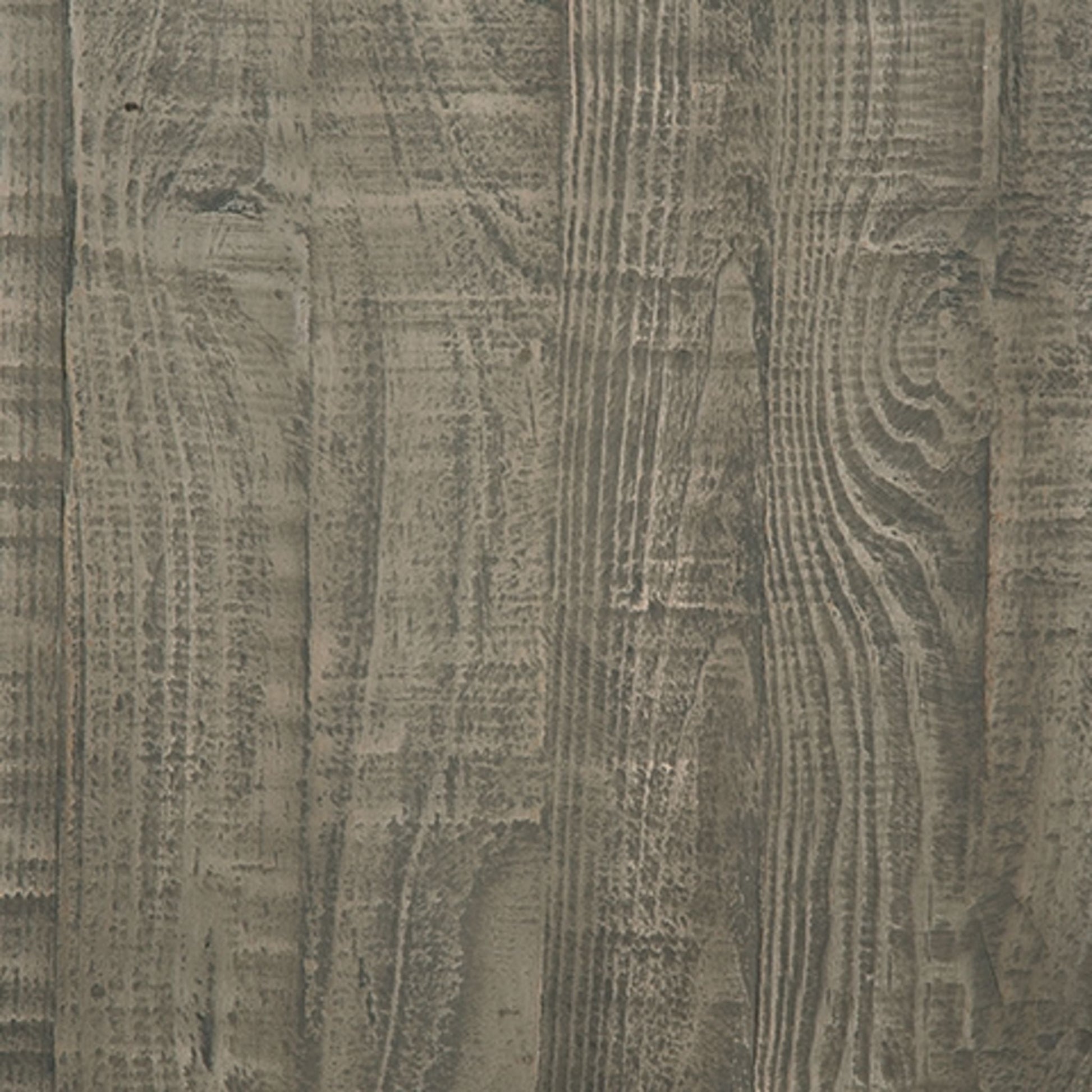 This round end table is an achievement in urban contemporary styling. Its ultra-cool design pairs a thick slab-style tabletop and an open lower shelf of solid pine wood with linear metal legs. A weathered gray finish keeps the aesthetic warm and inviting.