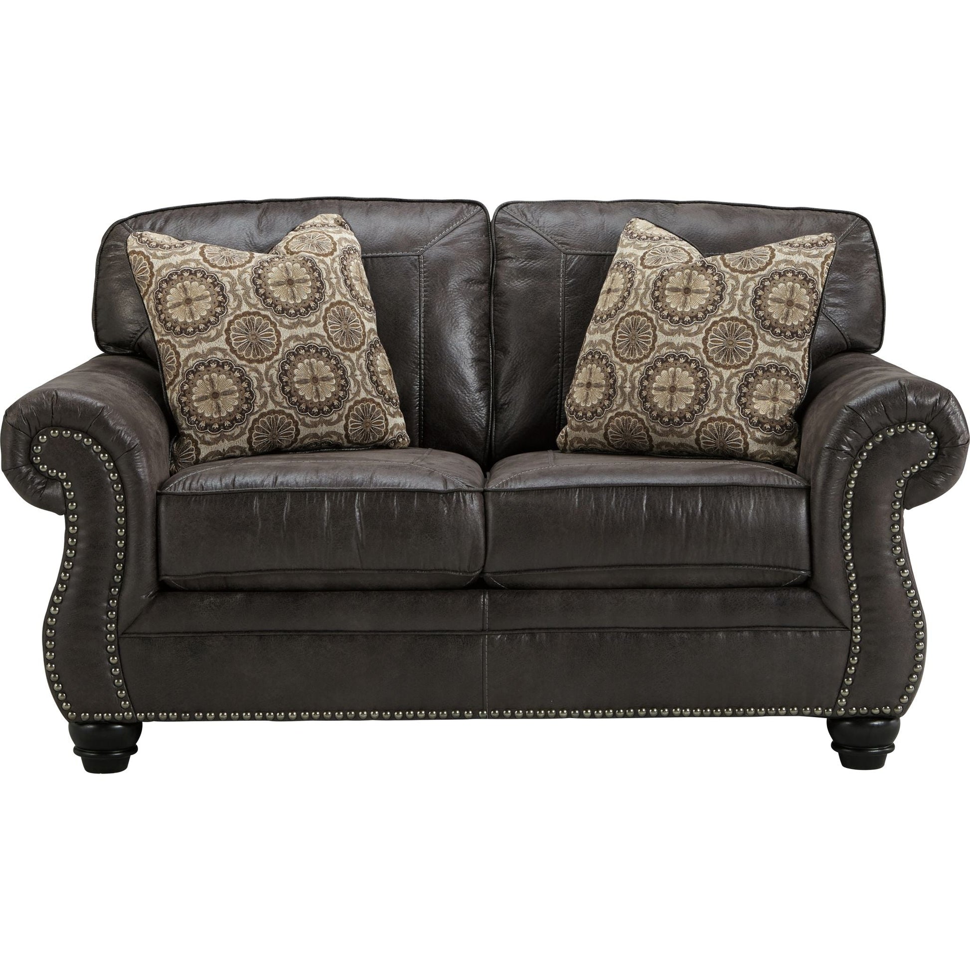Revel in the ruggedly handsome look of leather—at a fraction of the cost—with this stylish loveseat. Inspired by the rough-and-tumble beauty of the Southwest, it sports a “weathered” faux leather crafted for warmth, comfort and everyday living. A touch of nailhead trim adds the perfect punch of character.