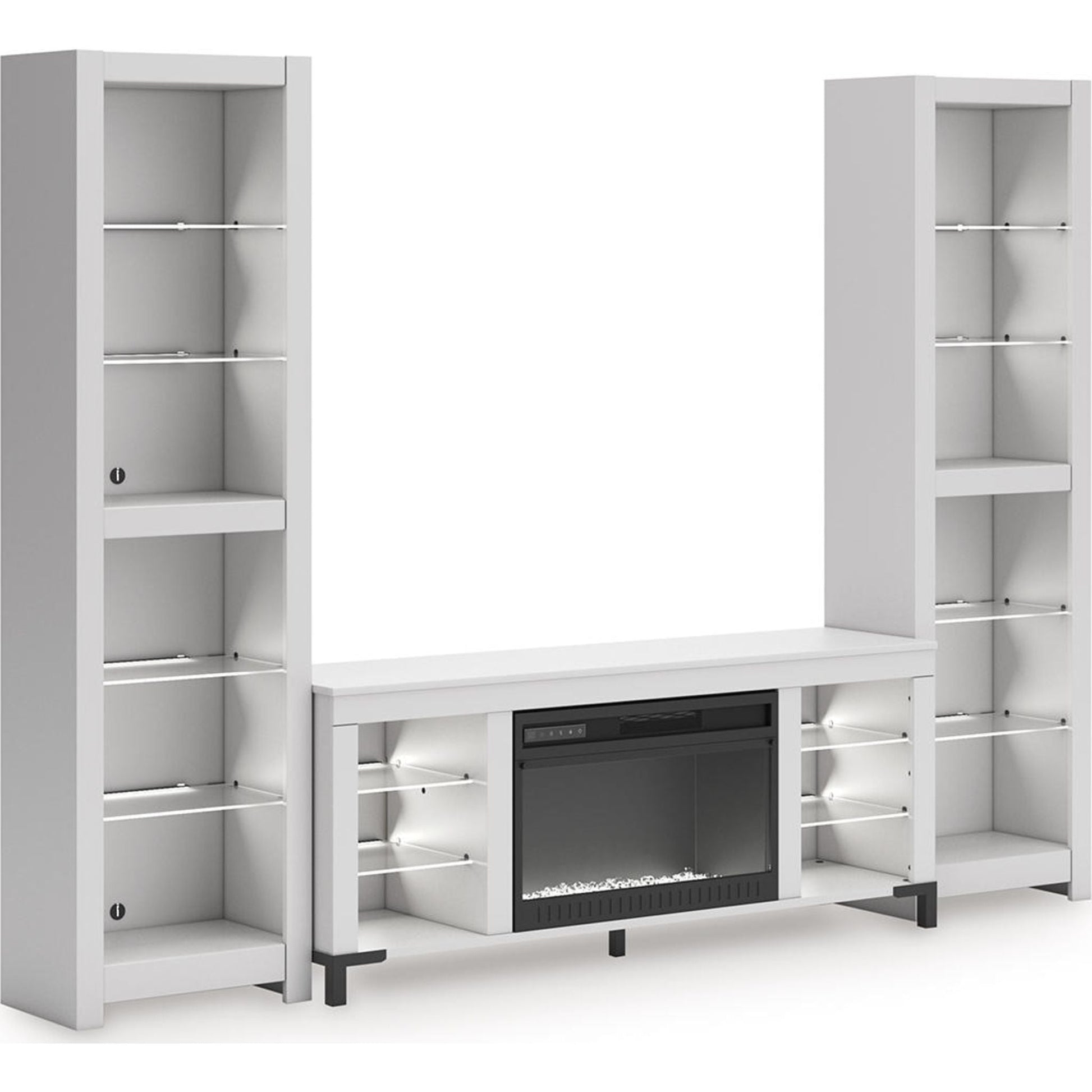 Level up your gaming experience and make movie nights to remember. This entertainment center with fireplace extends your entertainment beyond the screen. Its built-in fireplace brings the heat, synchronizing with LED backlighting on the assorted shelves. And you can customize the vibe with three trendy color options: blue, white and red. Modern function. Captivating, cool style. With this entertainment center, revamp your home’s recreational hub like never before.