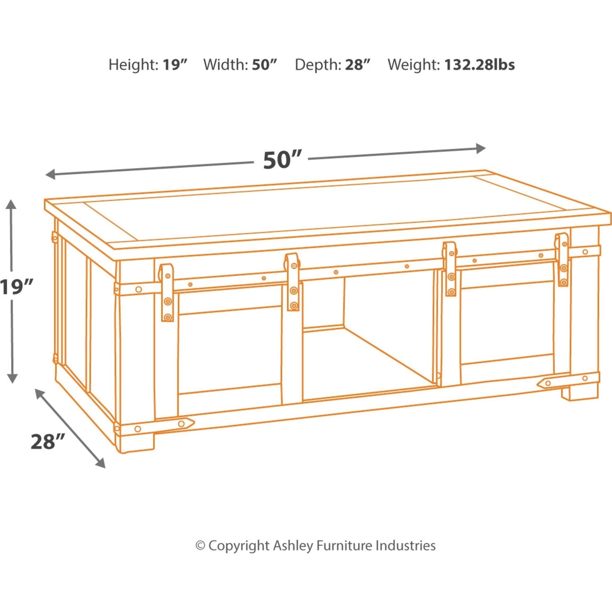 Roll with the ease of a coffee table on casters in farmhouse style. This rectangular table garners attention with its smooth sliding barn doors, distressed rustic finish and black metal accents. With hidden storage behind its barn doors, you'll love the extra space for stashing items you want to keep within reach. If you need to move this table, its casters make it simple—what a value for adding down-home style with functionality to your living space.