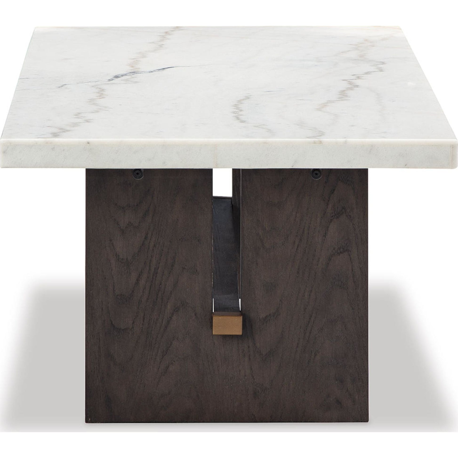 Dressed to thrill, the simply stunning Burkhaus coffee table offers a high-design look at a down-to-earth price. Ultra-sleek lines are accentuated with a dark waxy brown oak finish that’s so easy on the eyes. Clean-lined and modern, the plinth base and natural marble tabletop showcase quality craftsmanship and attention to detail. This table is the perfect centerpiece for a living room or family space, with a timeless look that's made to last.