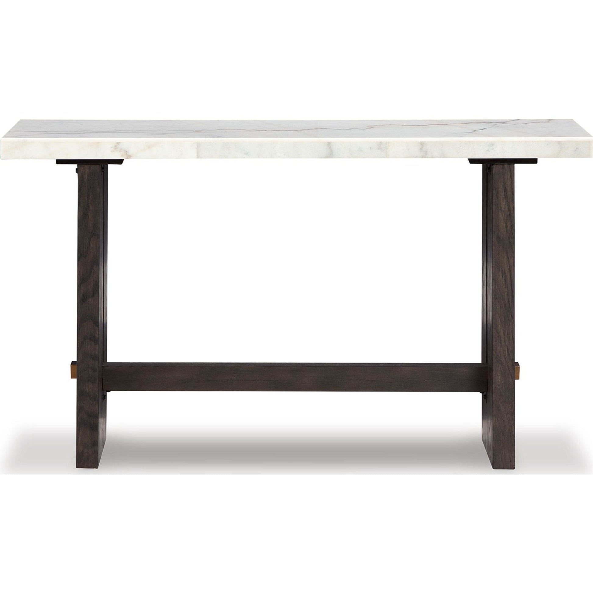 Dressed to thrill, the simply stunning Burkhaus sofa table offers a high-design look at a down-to-earth price. Ultra-sleek lines are accentuated with a dark waxy brown oak finish that’s so easy on the eyes. Clean-lined and modern, the plinth base and natural marble tabletop showcase quality craftsmanship and attention to detail. This table is the perfect sofa companion for a living room or family space, with a timeless look that's made to last.