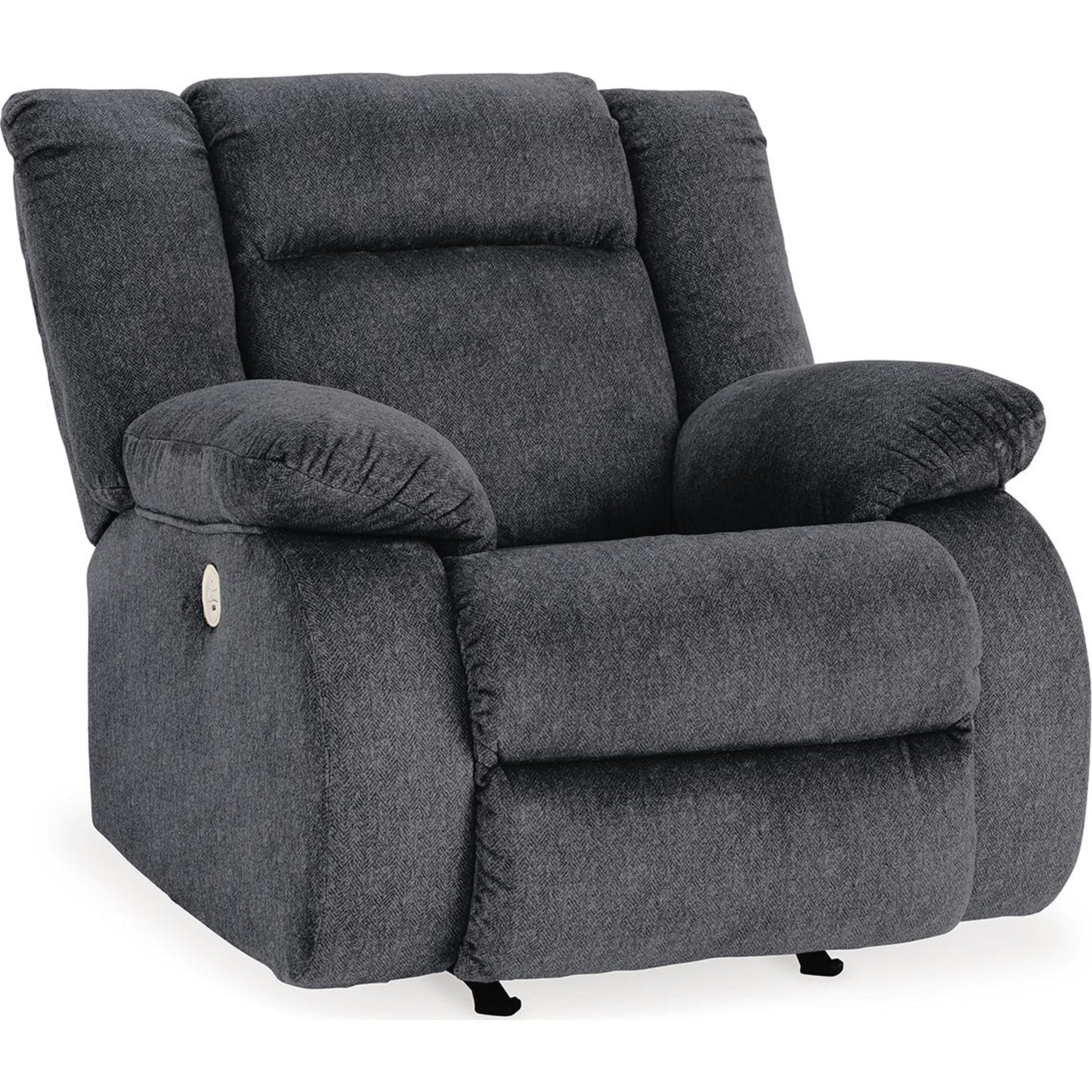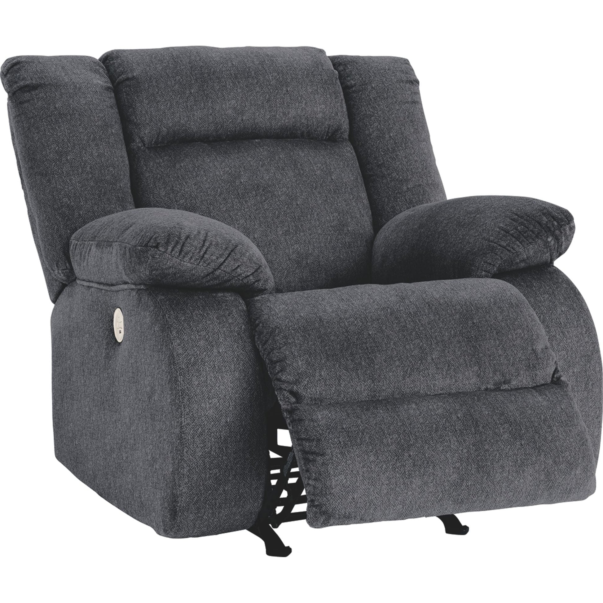 If highly contemporary looks and a heavenly feel sit well with you, rest your eyes on this power rocker recliner. Padded velvet upholstery has a plush high pile that's so soft to the touch. Jumbo contrast stitching adds fashion-forward flair, while radius cut arm frame incorporates cool, curvaceous interest. At your fingertips: one-touch power control with a zero-draw USB plug-in that’s not only convenient but also energy efficient. When it comes to high style at a down-to-earth price, this power recliner really brings it home.
