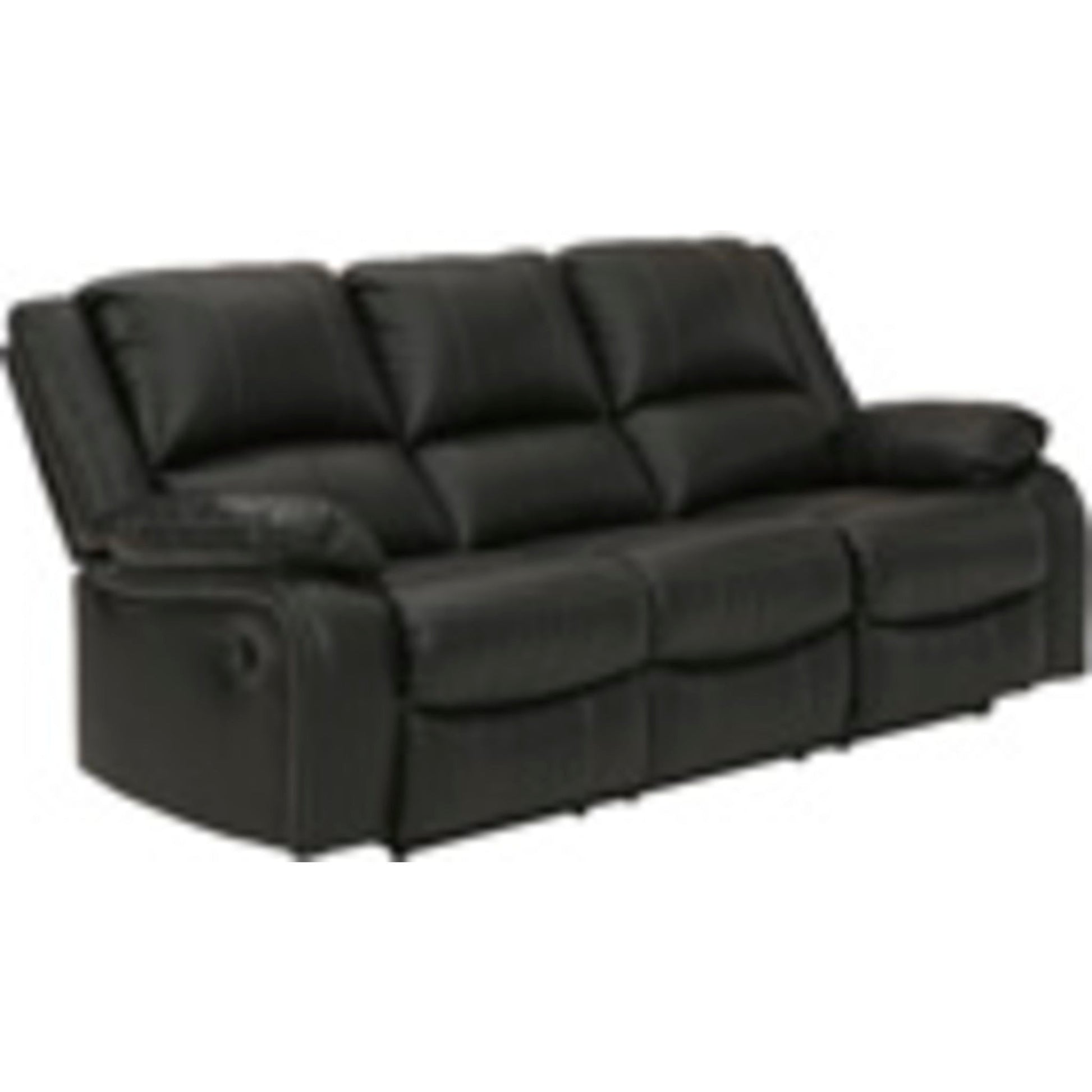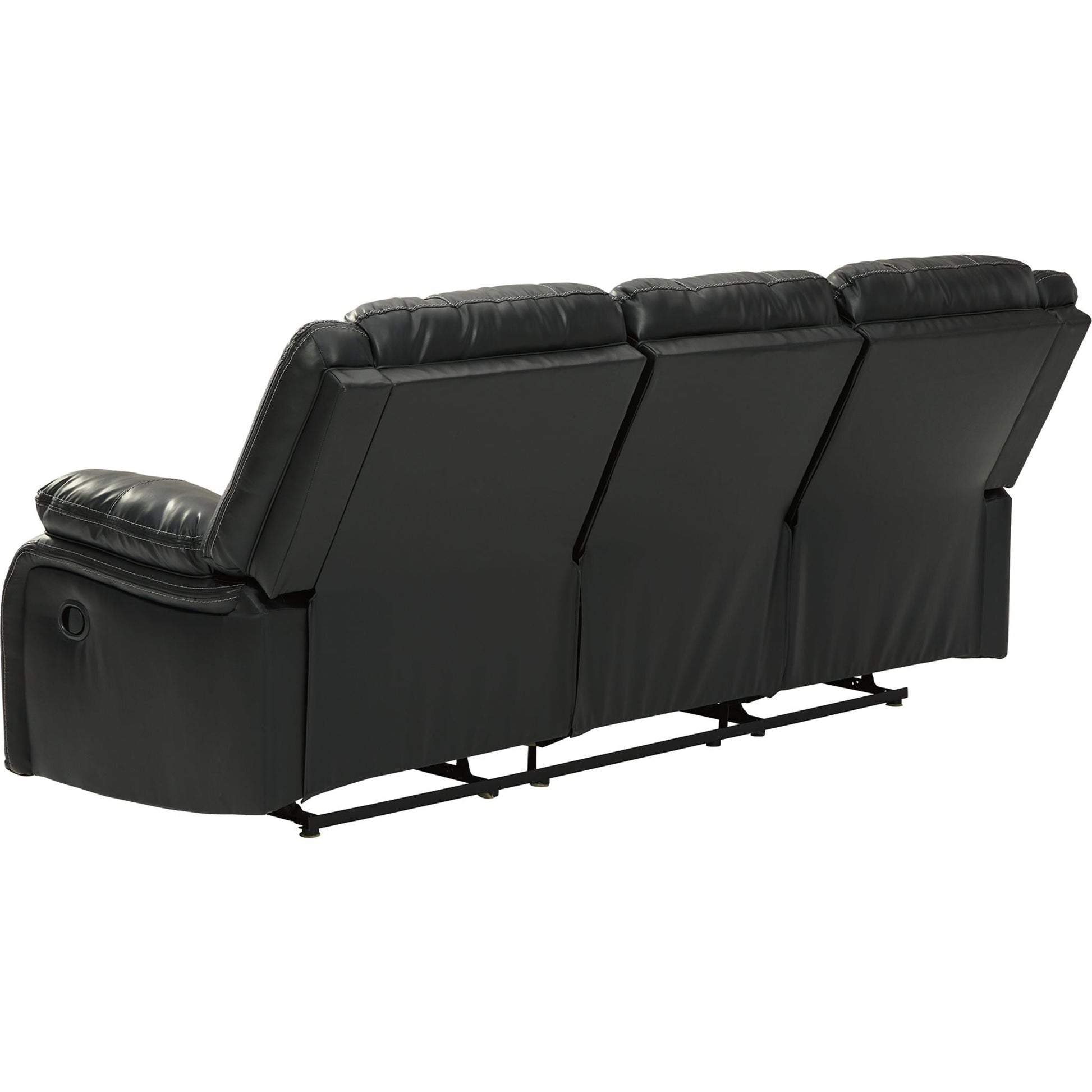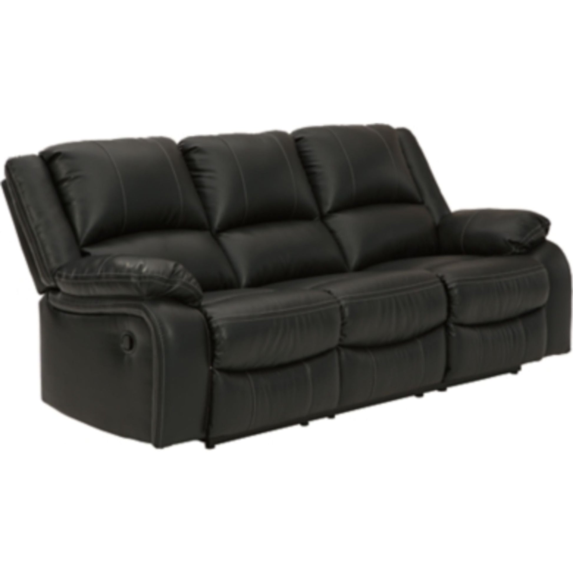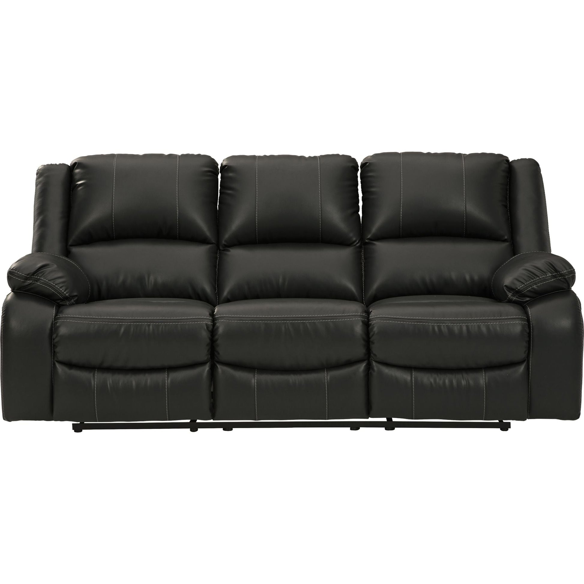 Sleek and streamlined, this reclining sofa draws out your leisure time with its bustle back construction and thickly cushioned armrests. The super soft faux leather gets a high-end tweak with jumbo contrast stitching so you don’t have to sacrifice style for comfort. Sink into the comfortably supportive cushions and stretch your evening as long as you can.