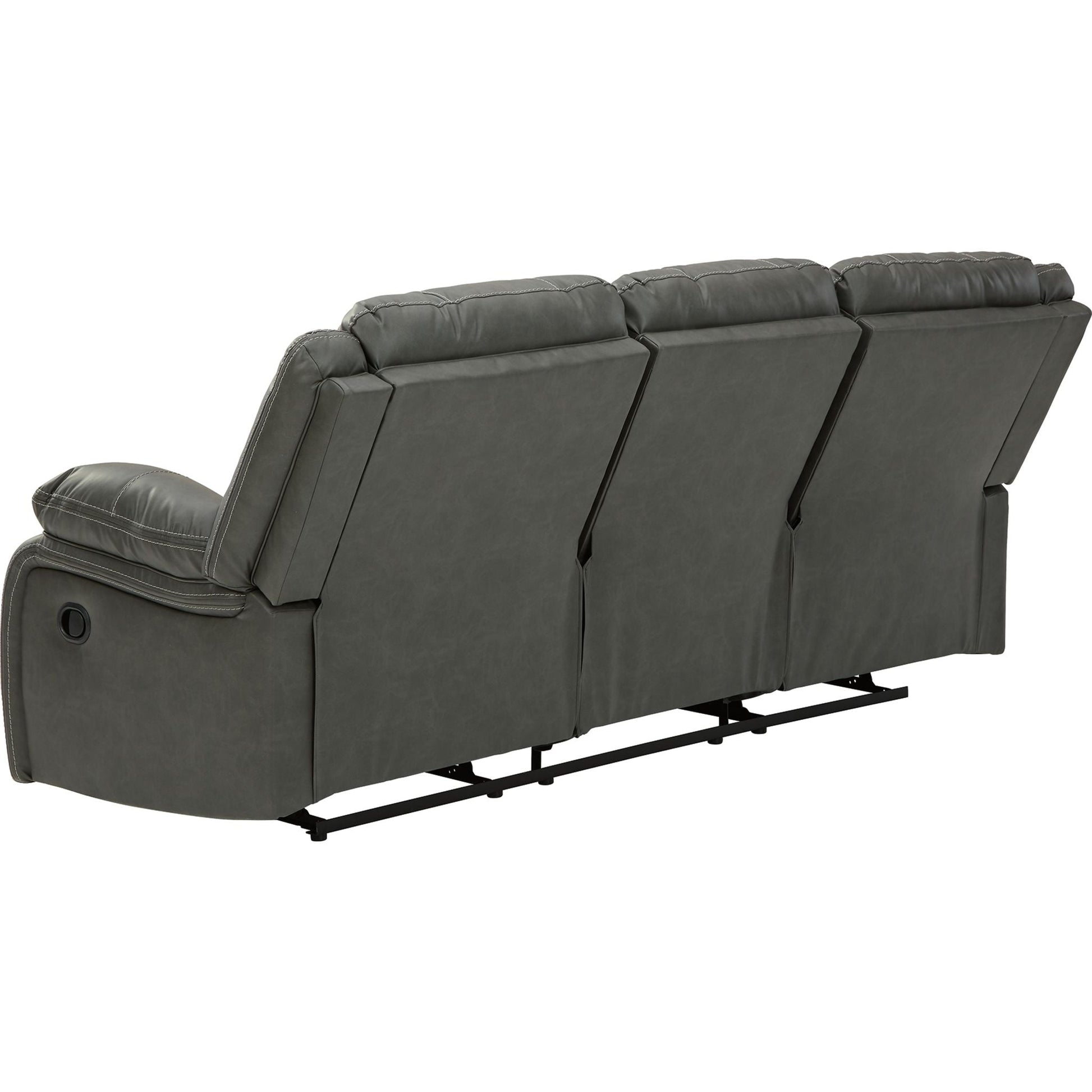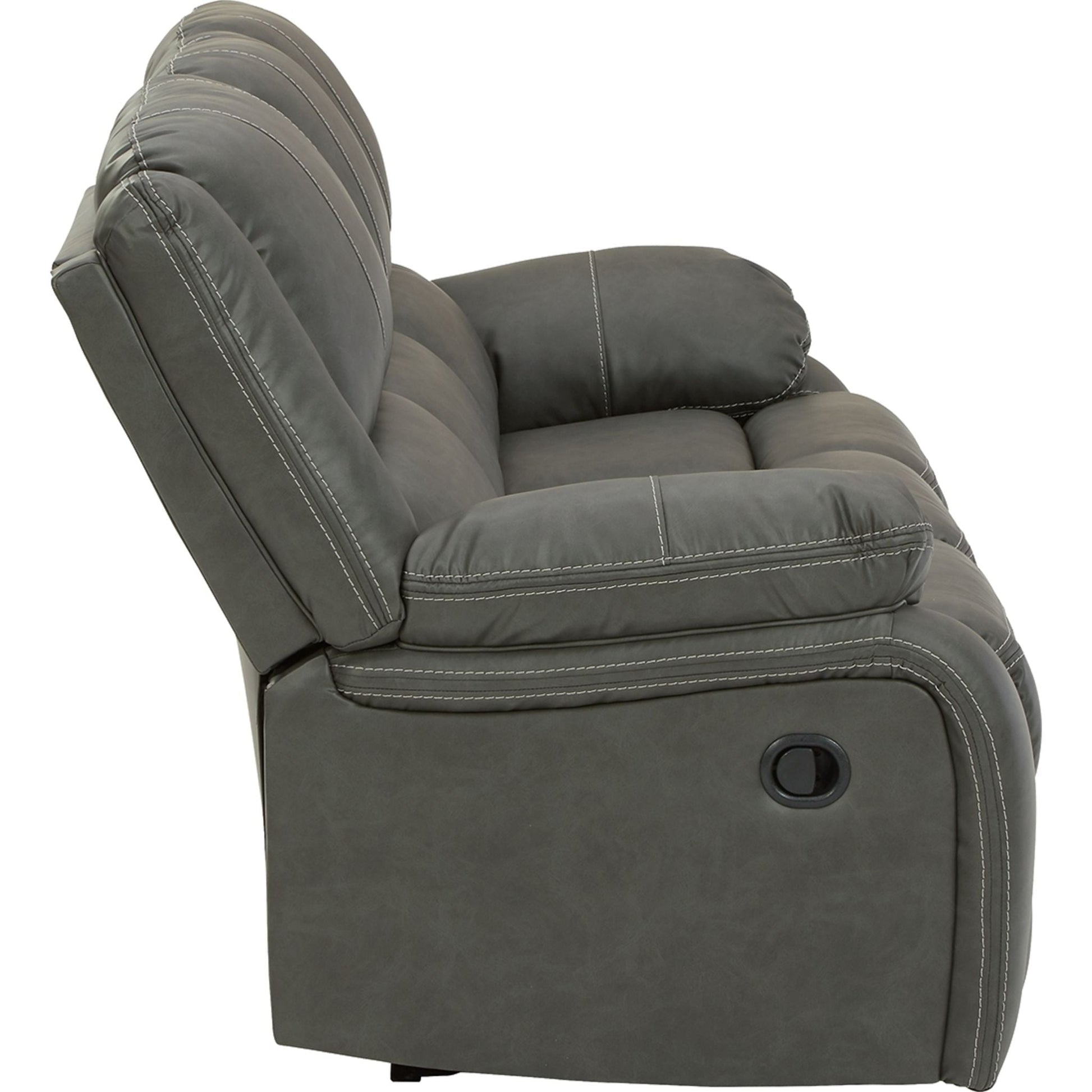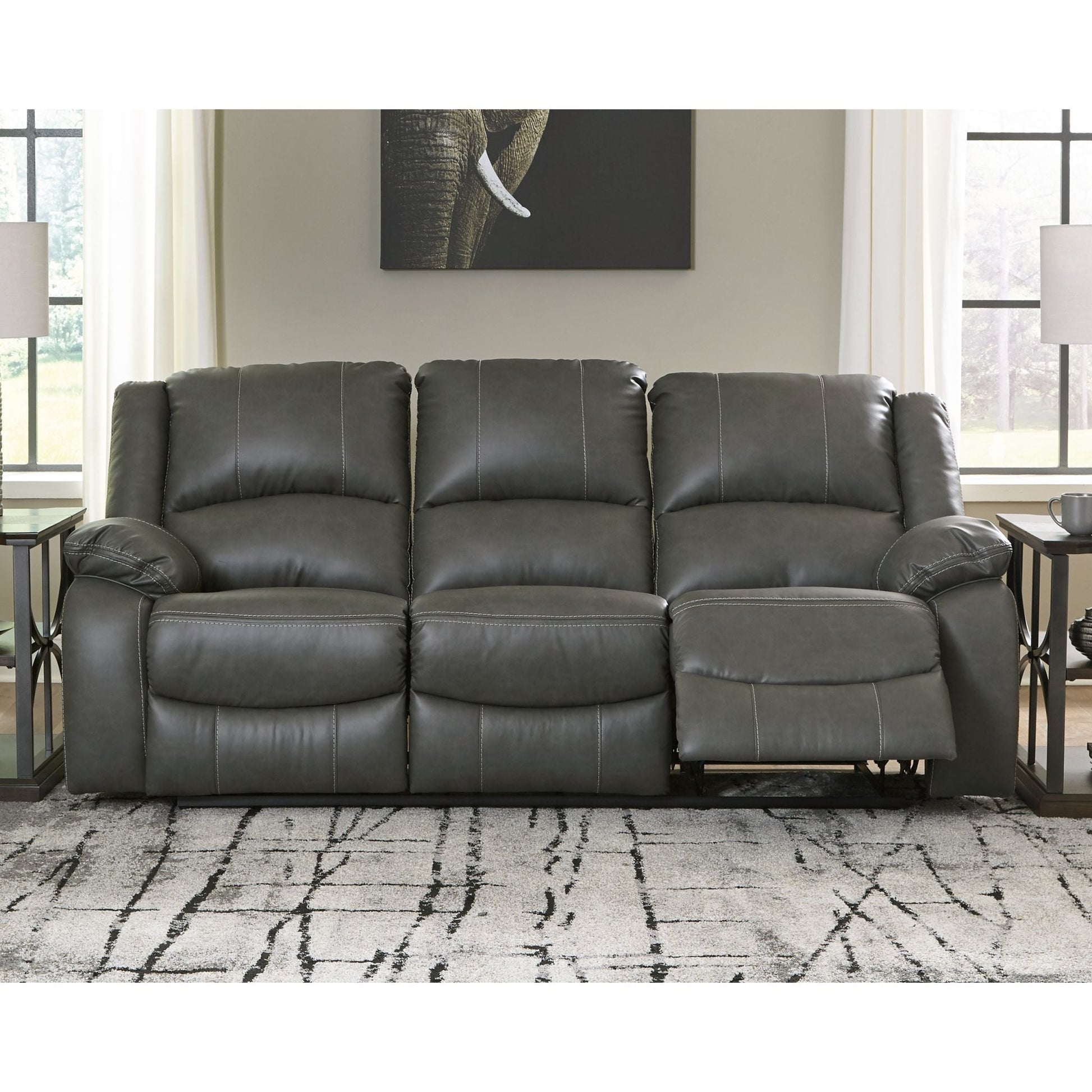 Sleek and streamlined, this reclining sofa draws out your leisure time with its bustle back construction and thickly cushioned armrests. The super soft faux leather gets a high-end tweak with jumbo contrast stitching so you don’t have to sacrifice style for comfort. Sink into the comfortably supportive cushions and stretch your evening as long as you can.
