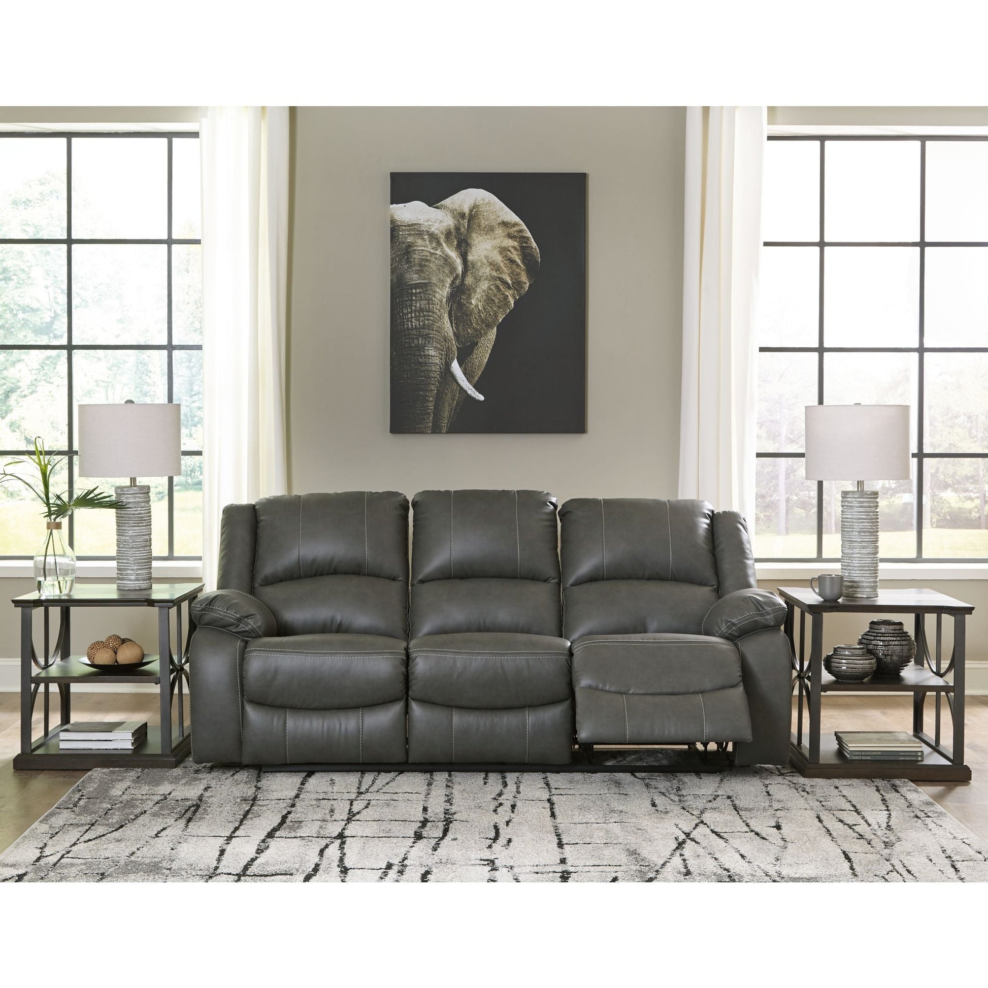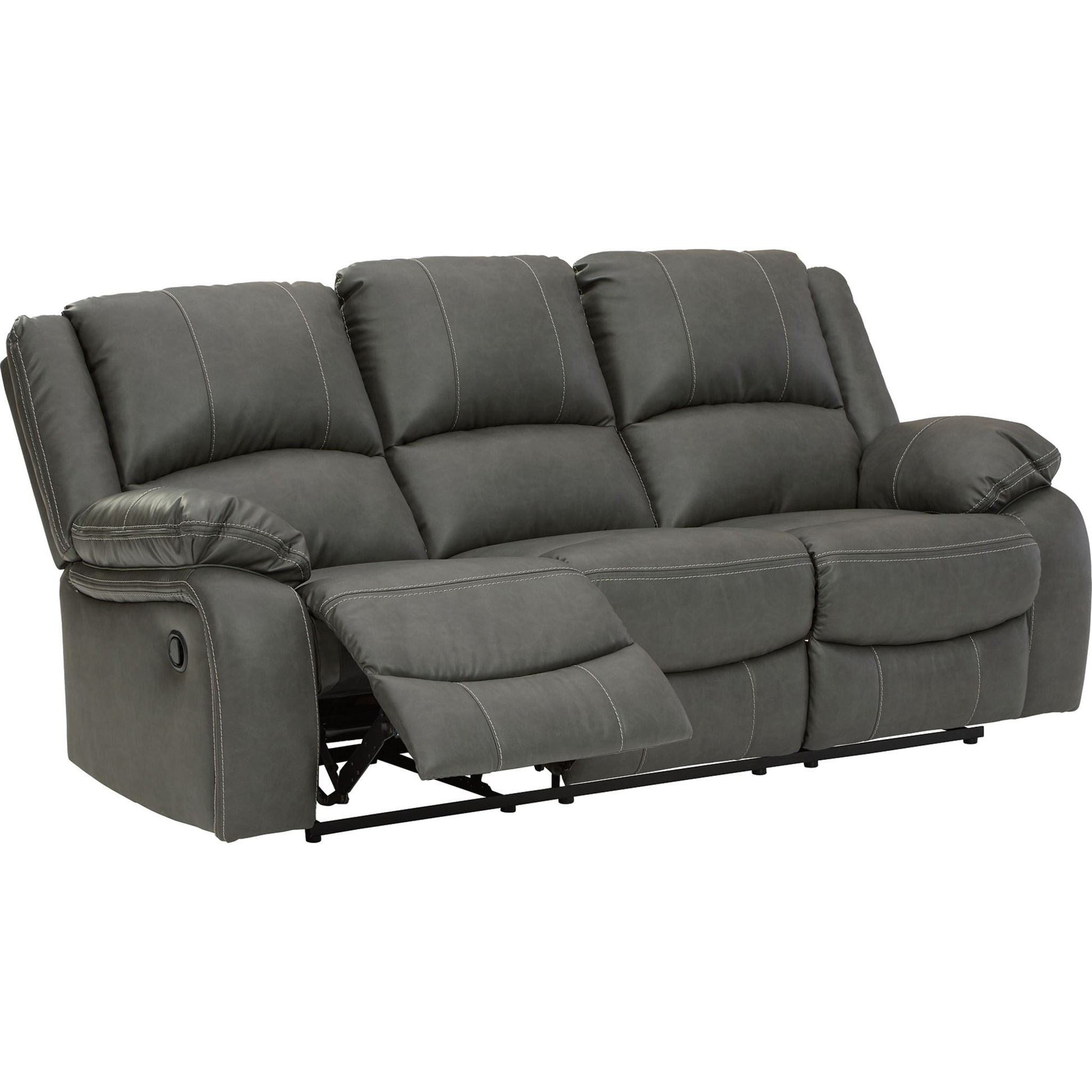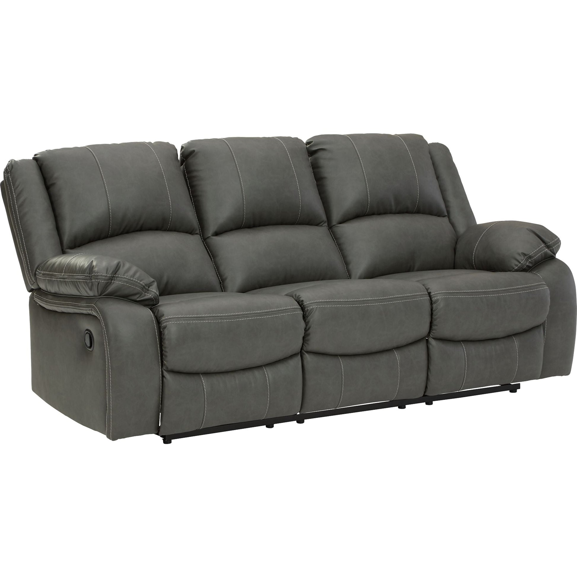 Sleek and streamlined, this reclining sofa draws out your leisure time with its bustle back construction and thickly cushioned armrests. The super soft faux leather gets a high-end tweak with jumbo contrast stitching so you don’t have to sacrifice style for comfort. Sink into the comfortably supportive cushions and stretch your evening as long as you can.
