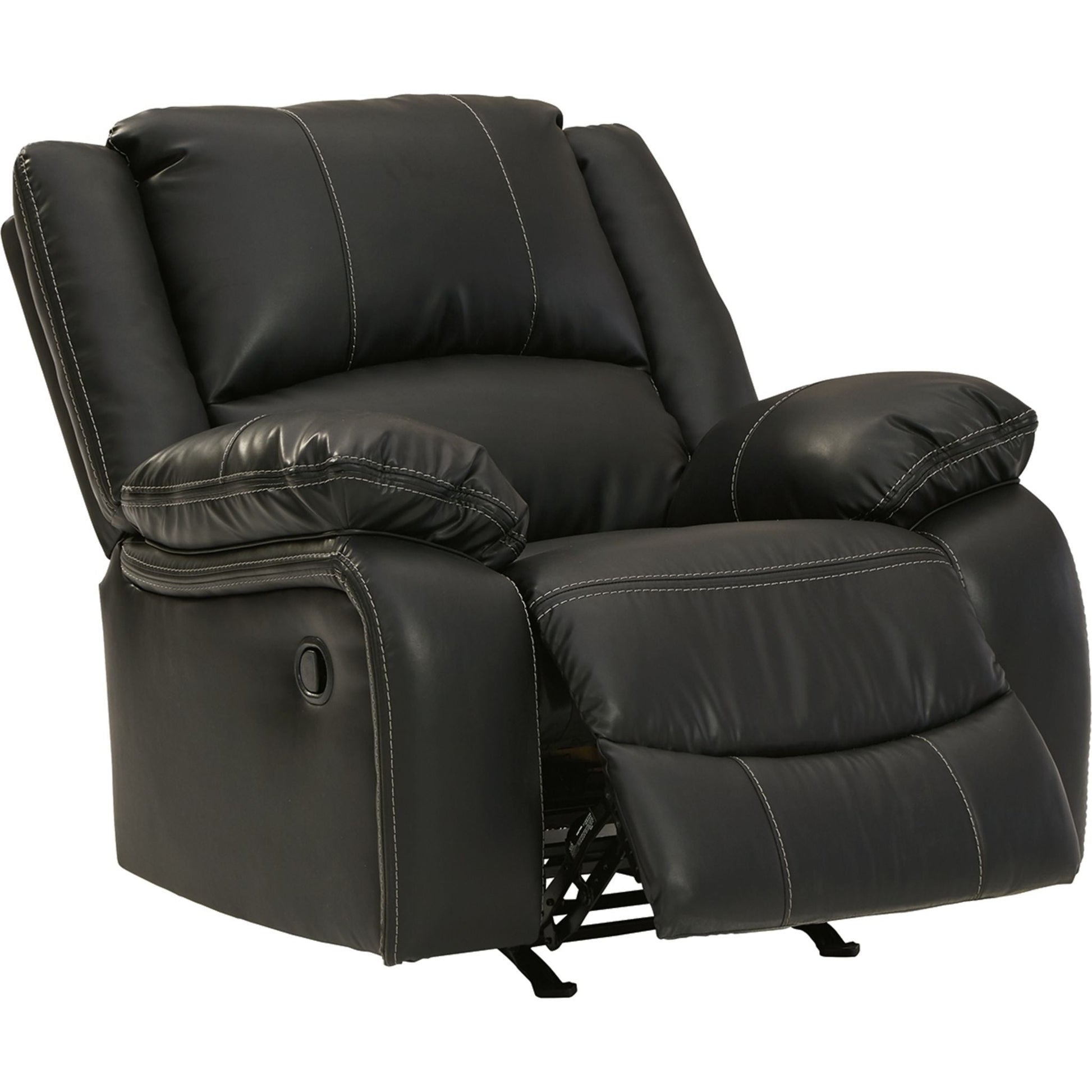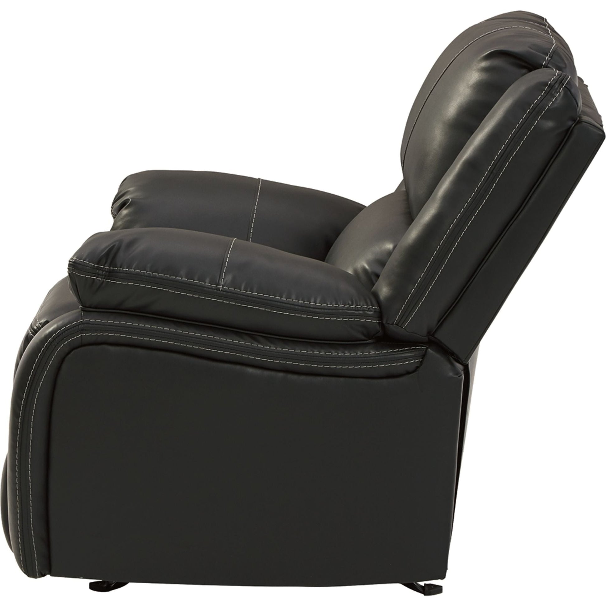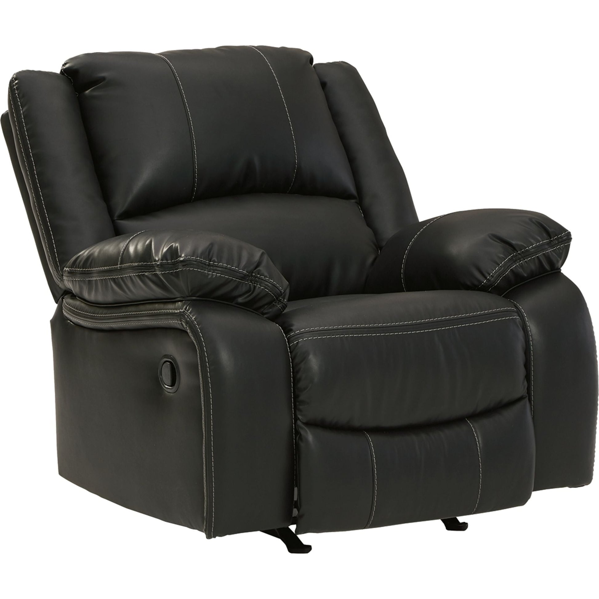 Sleek and streamlined, this rocker recliner draws out your leisure time with its bustle back construction and thickly cushioned armrests. The super soft faux leather gets a high-end tweak with jumbo contrast stitching so you don’t have to sacrifice style for comfort. Sink into the comfortably supportive cushions and stretch your evening as long as you can.