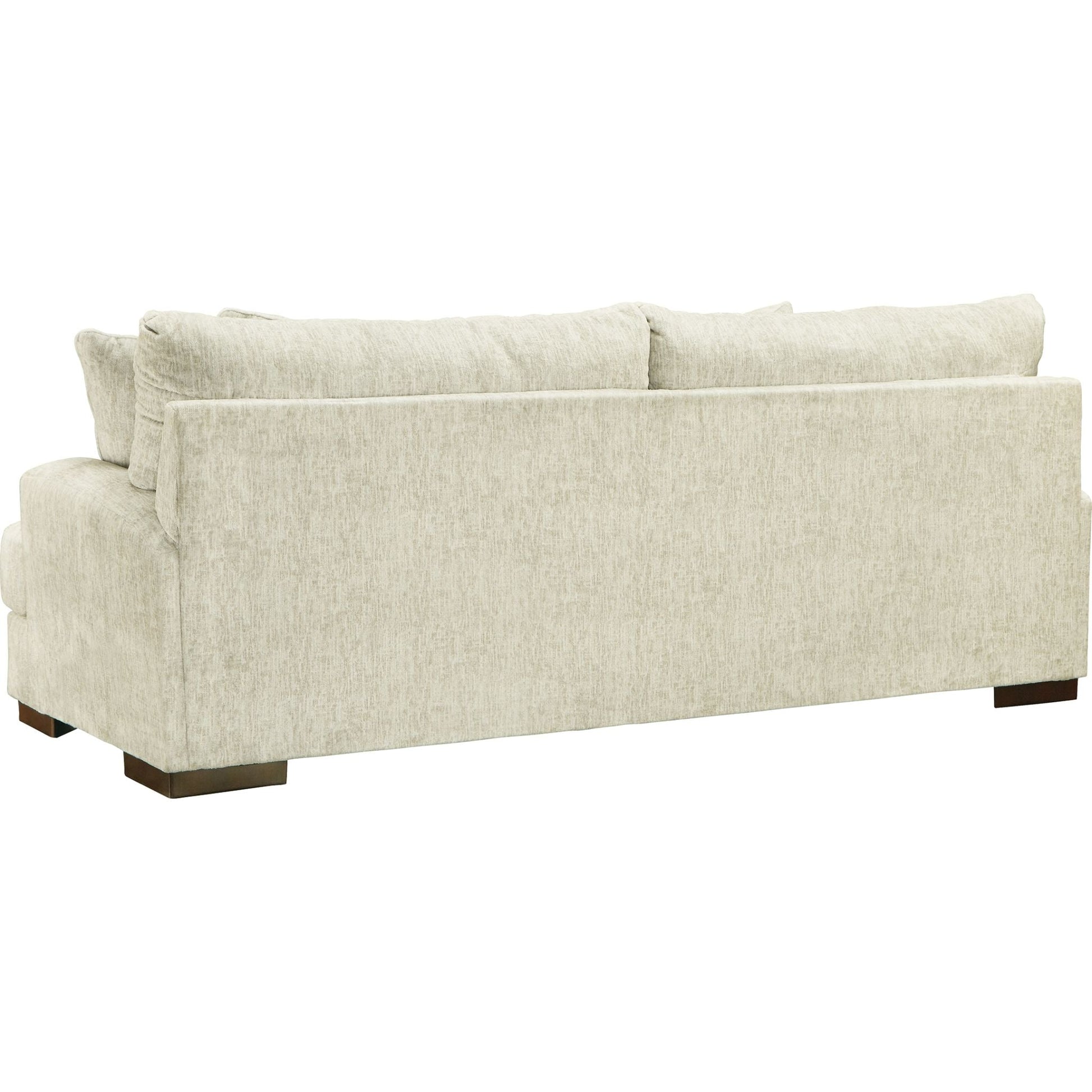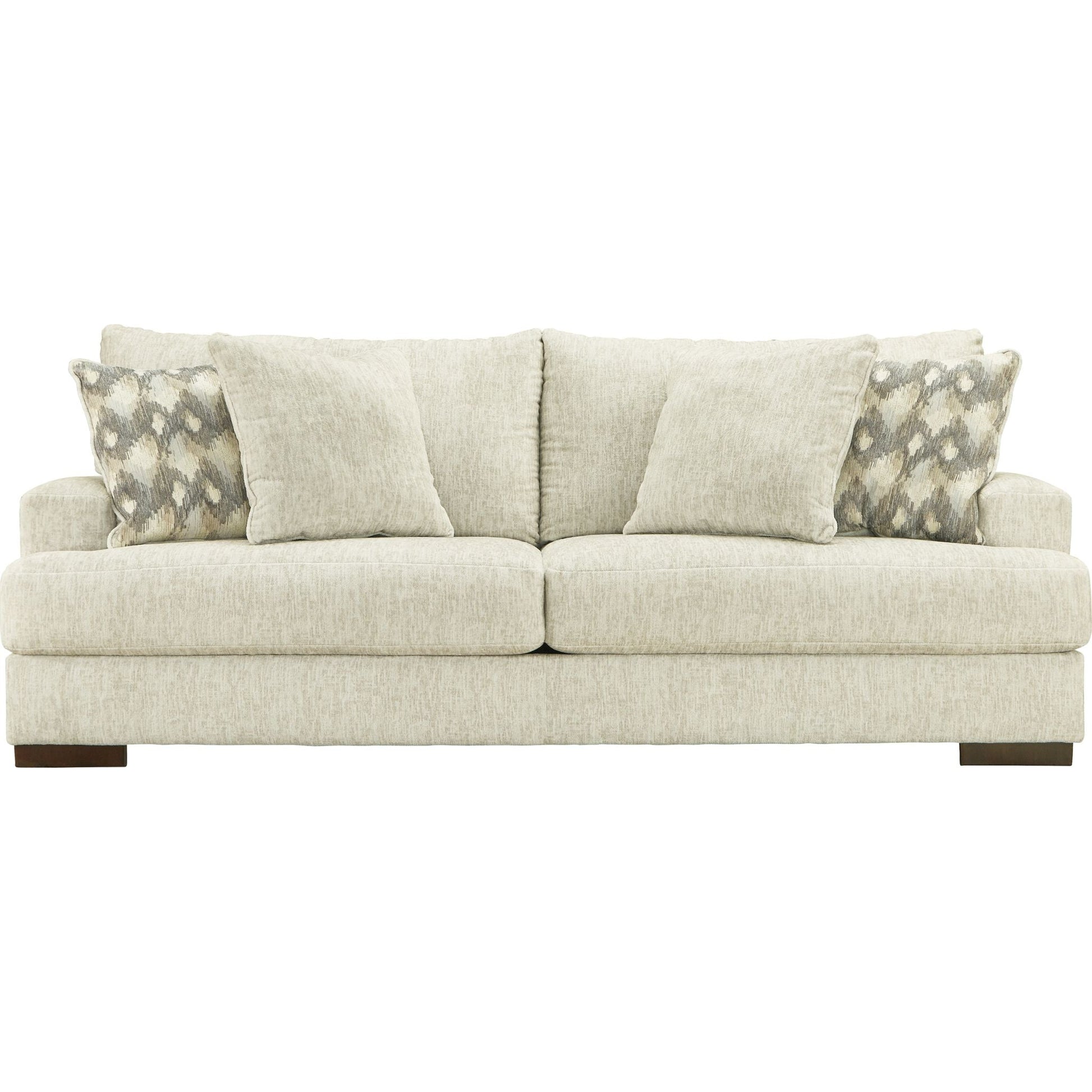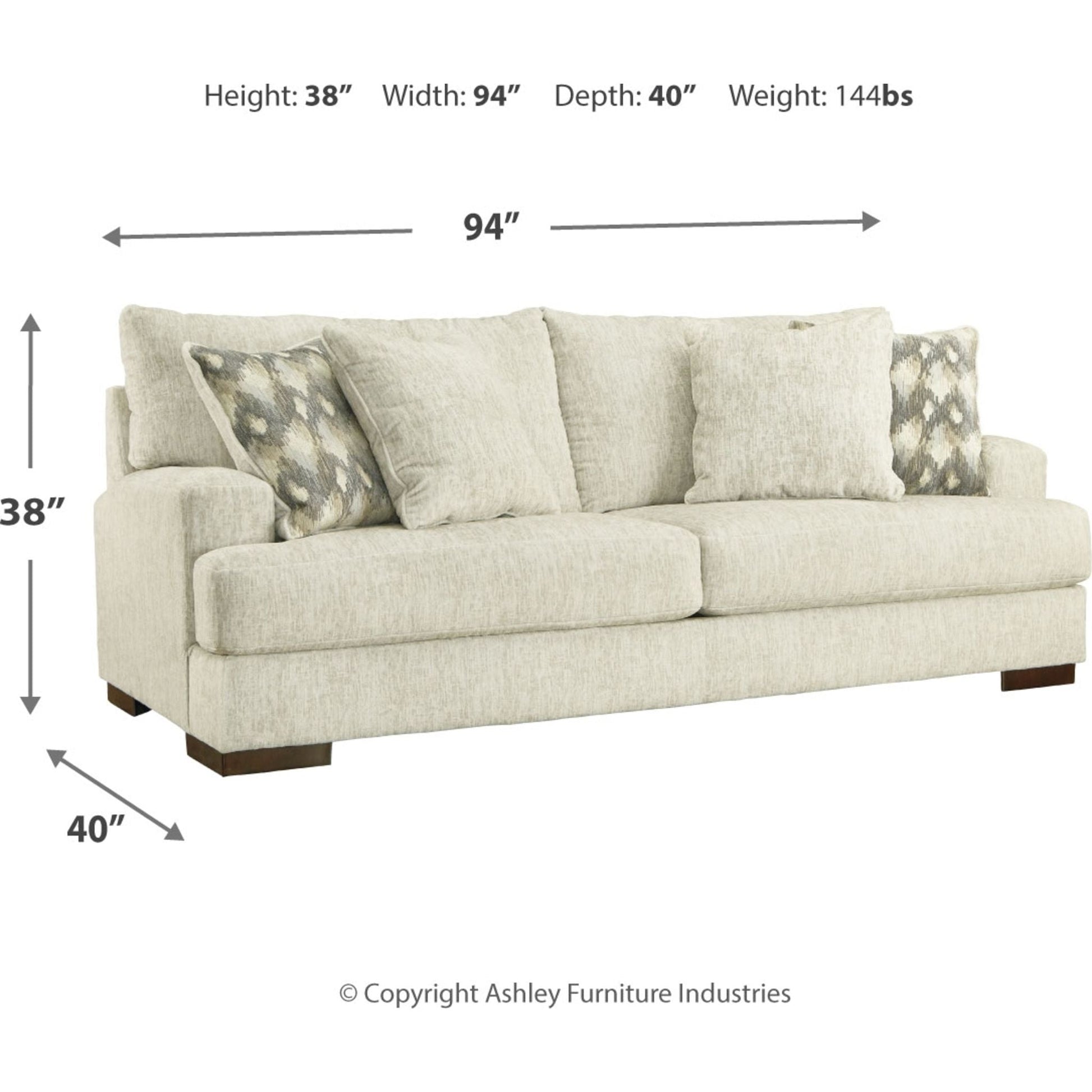 Easy on the eyes and irresistibly comfortable, this sofa is covered in luxurious chenille microfiber in a light, neutral hue that blends beautifully in a room. Wide track arms have a contemporary look and plush cushions cradle you comfortably. Textured accent pillows in complementary colors add subtle contrast.