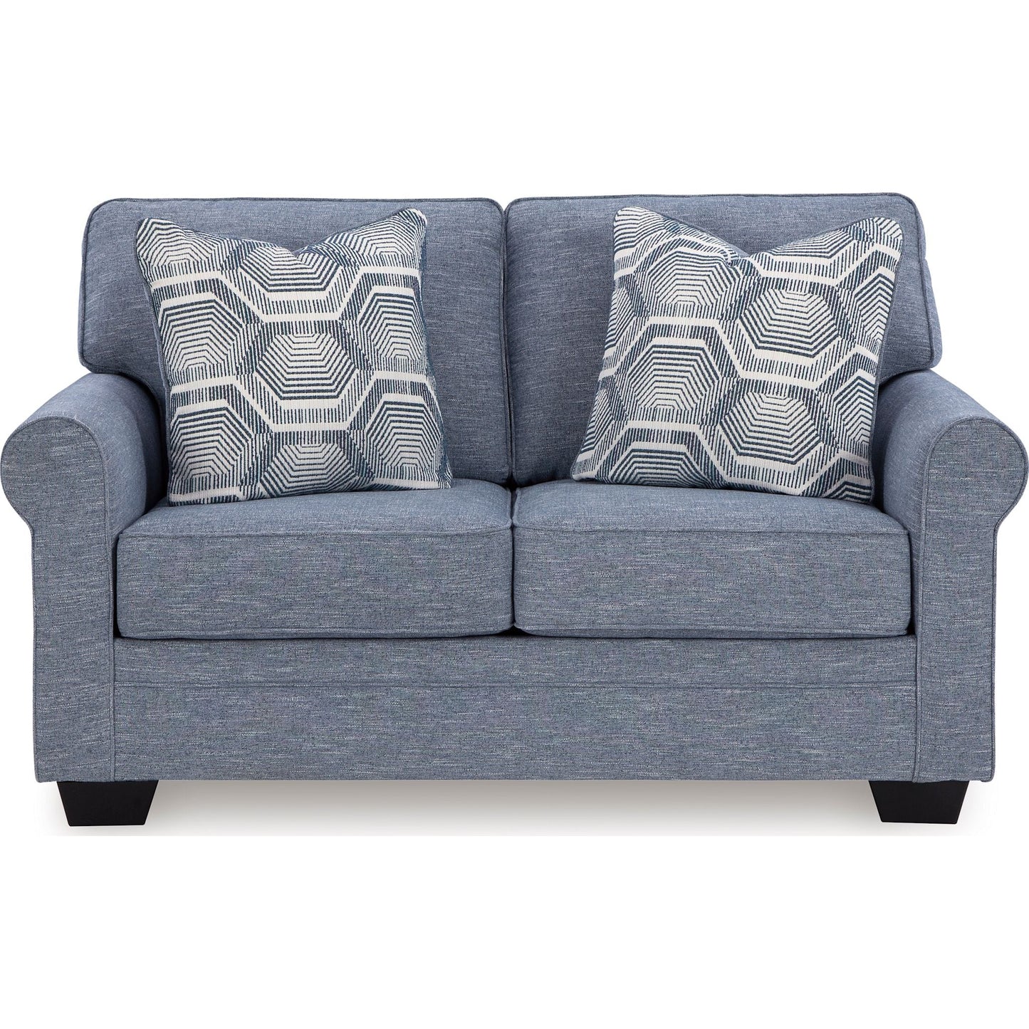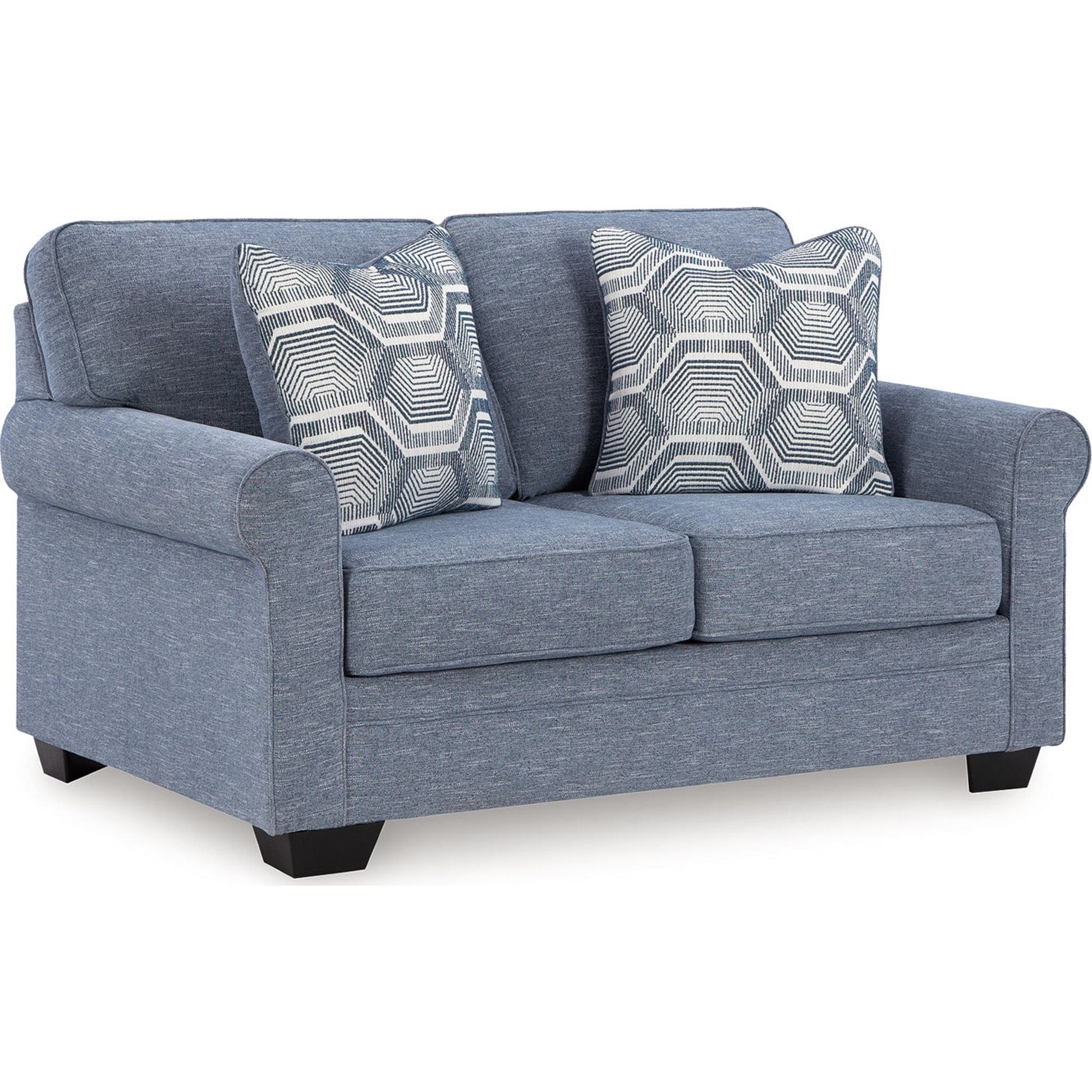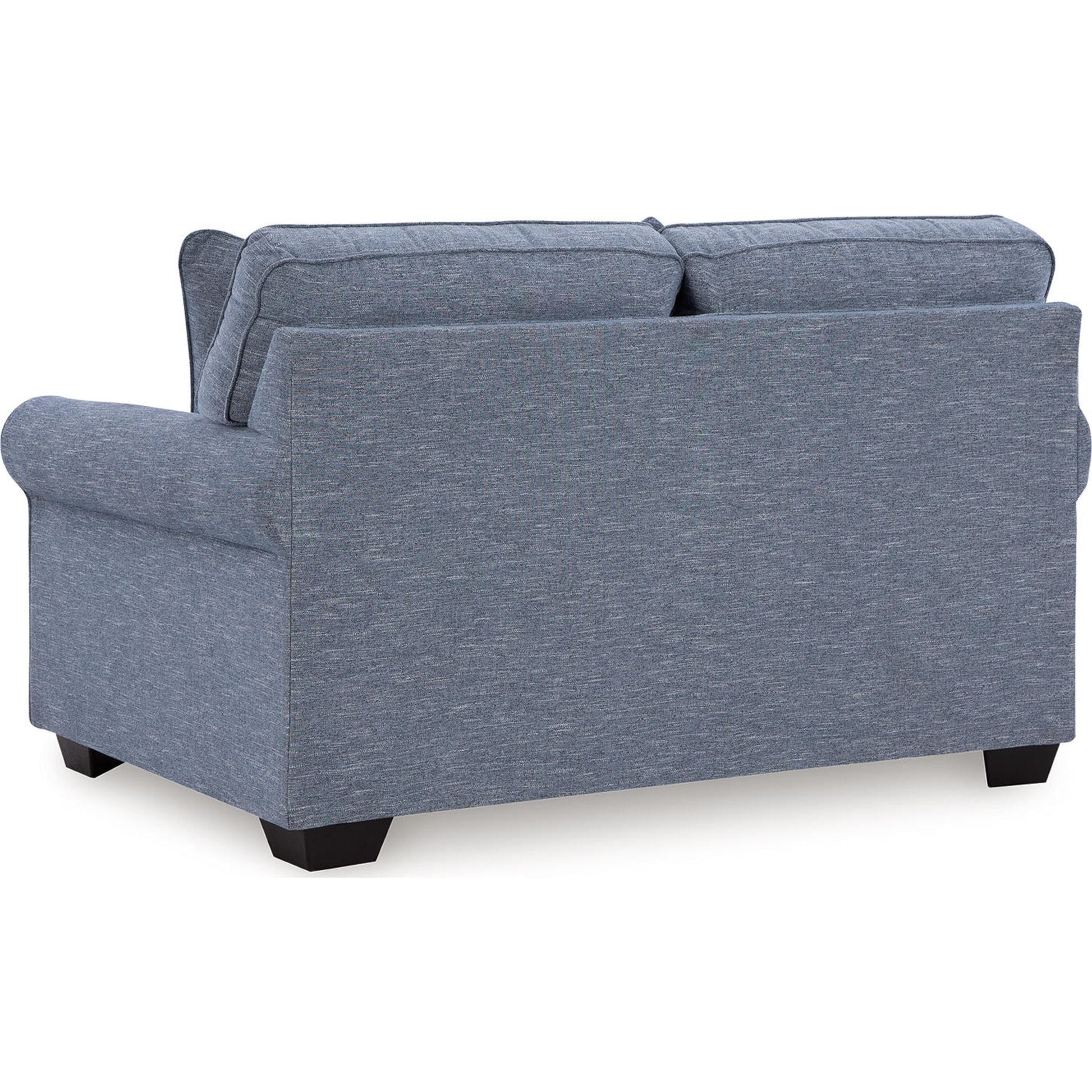 This loveseat is defined by comfort, convenience and classic style. Soft to the touch and stain-resistant, the family-friendly Next-Gen Nuvella™ fabric is easy to maintain. And you'll love the universal appeal of its denim-inspired hue. With roll arms adding a dash of traditional flair, the loveseat is a simply chic approach to everyday relaxation.