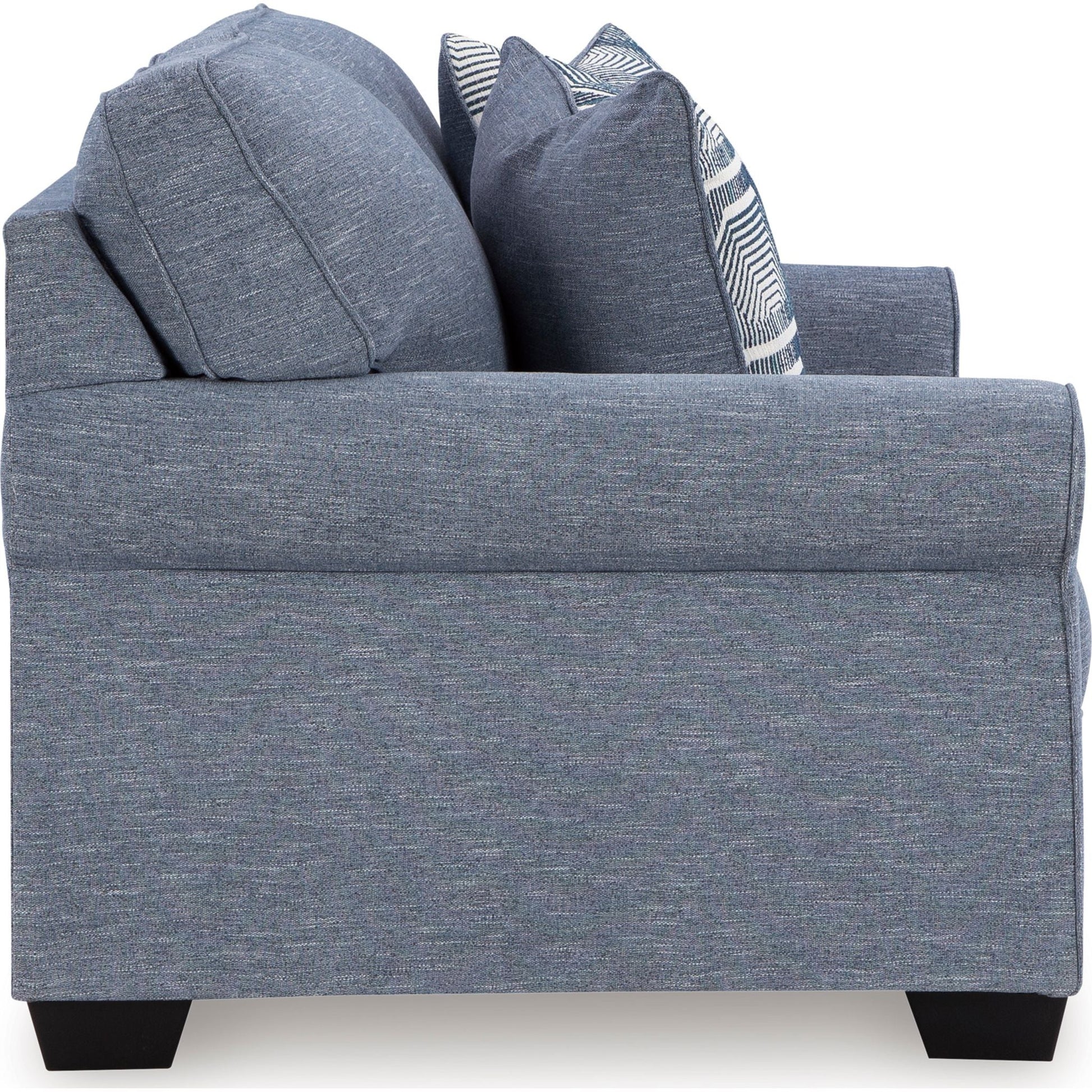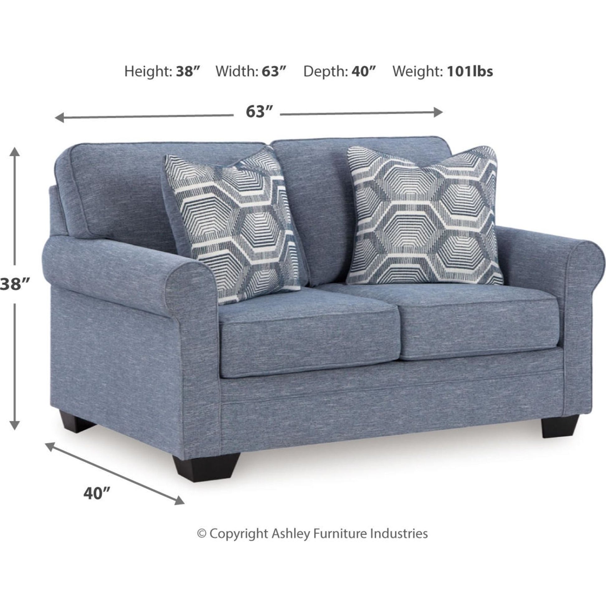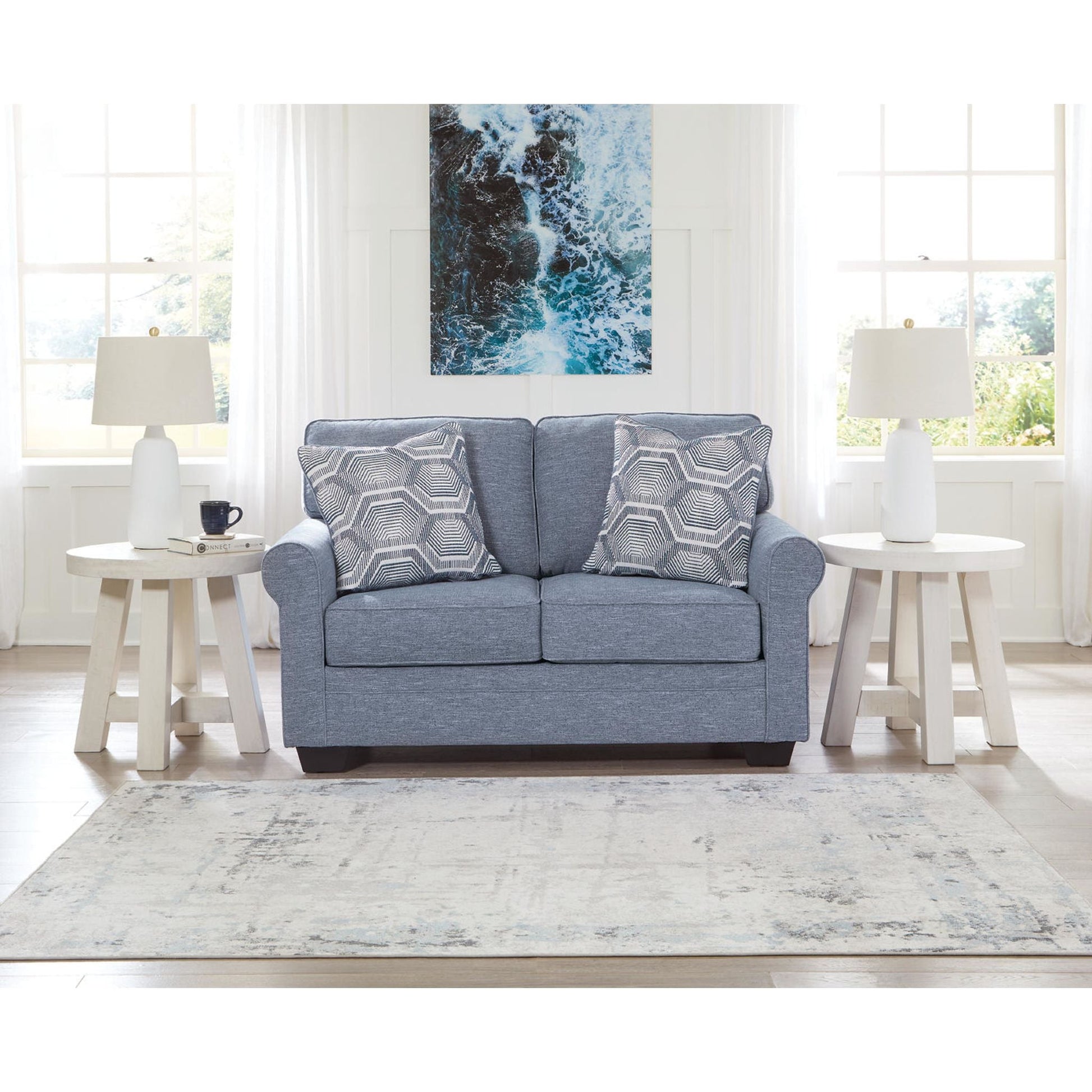 This loveseat is defined by comfort, convenience and classic style. Soft to the touch and stain-resistant, the family-friendly Next-Gen Nuvella™ fabric is easy to maintain. And you'll love the universal appeal of its denim-inspired hue. With roll arms adding a dash of traditional flair, the loveseat is a simply chic approach to everyday relaxation.