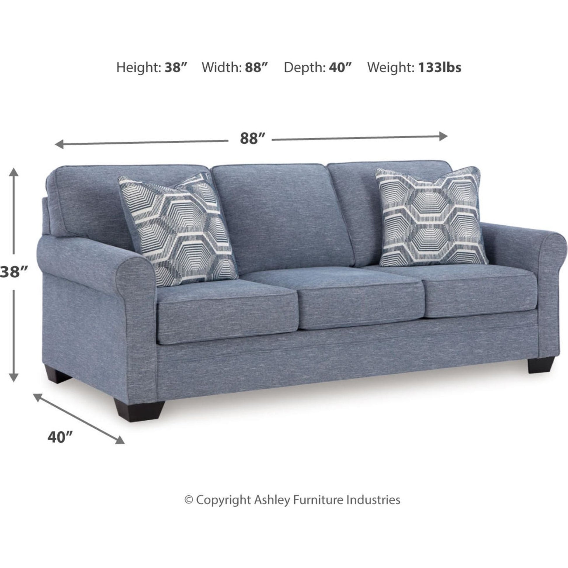 This sofa is defined by comfort, convenience and classic style. Soft to the touch and stain-resistant, the family-friendly Next-Gen Nuvella™ fabric is easy to maintain. And you'll love the universal appeal of its denim-inspired hue. With roll arms adding a dash of traditional flair, the loveseat is a simply chic approach to everyday relaxation.
