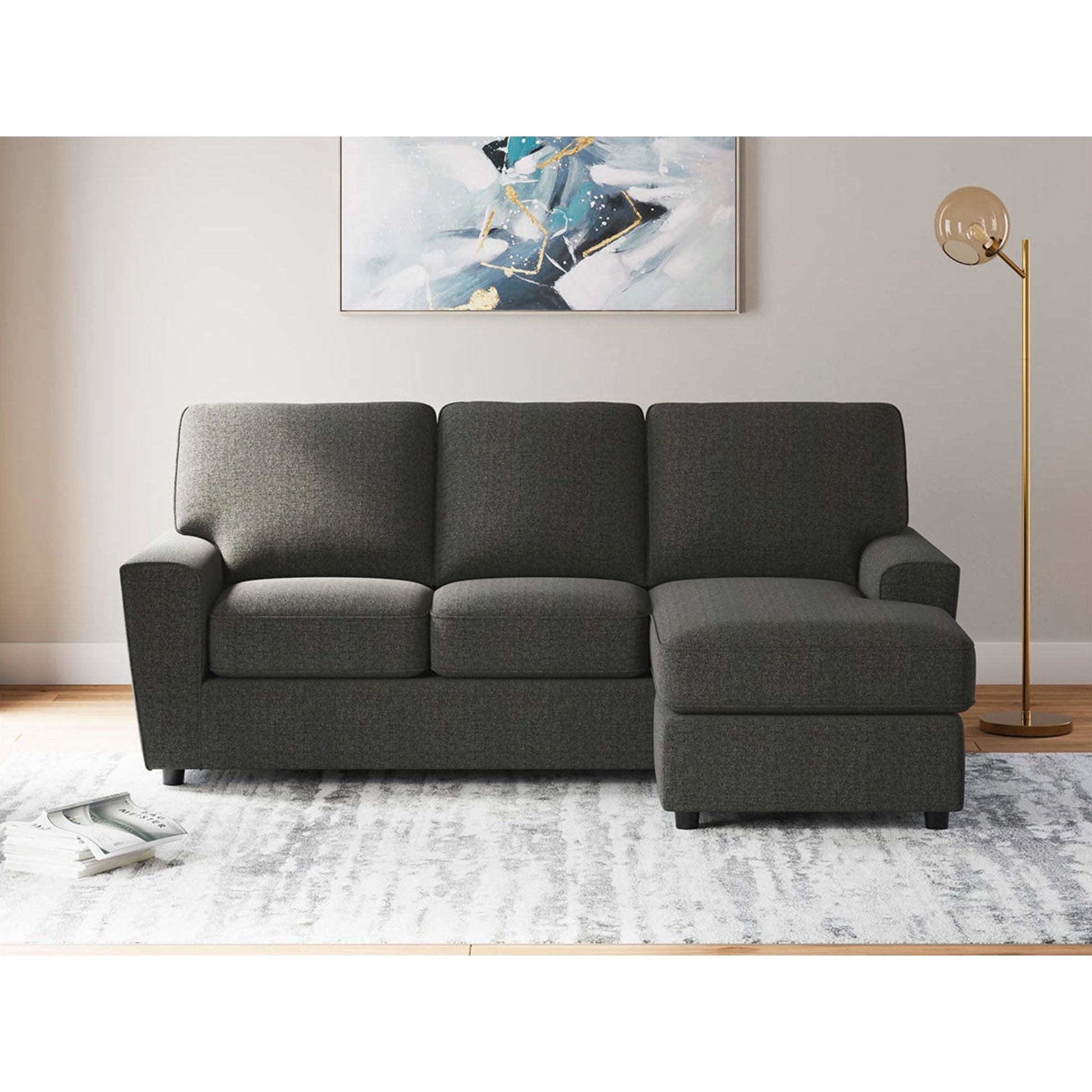 Revamp your sleekly styled living room sanctuary with this sofa chaise. Well-suited to contemporary spaces with a calming neutral upholstery in slate gray, it makes a subtle design statement in your space whether you’re hosting guests or enjoying a night in. Enamoring with its streamlined design, it’s a simply stylish way to sink into superior comfort.