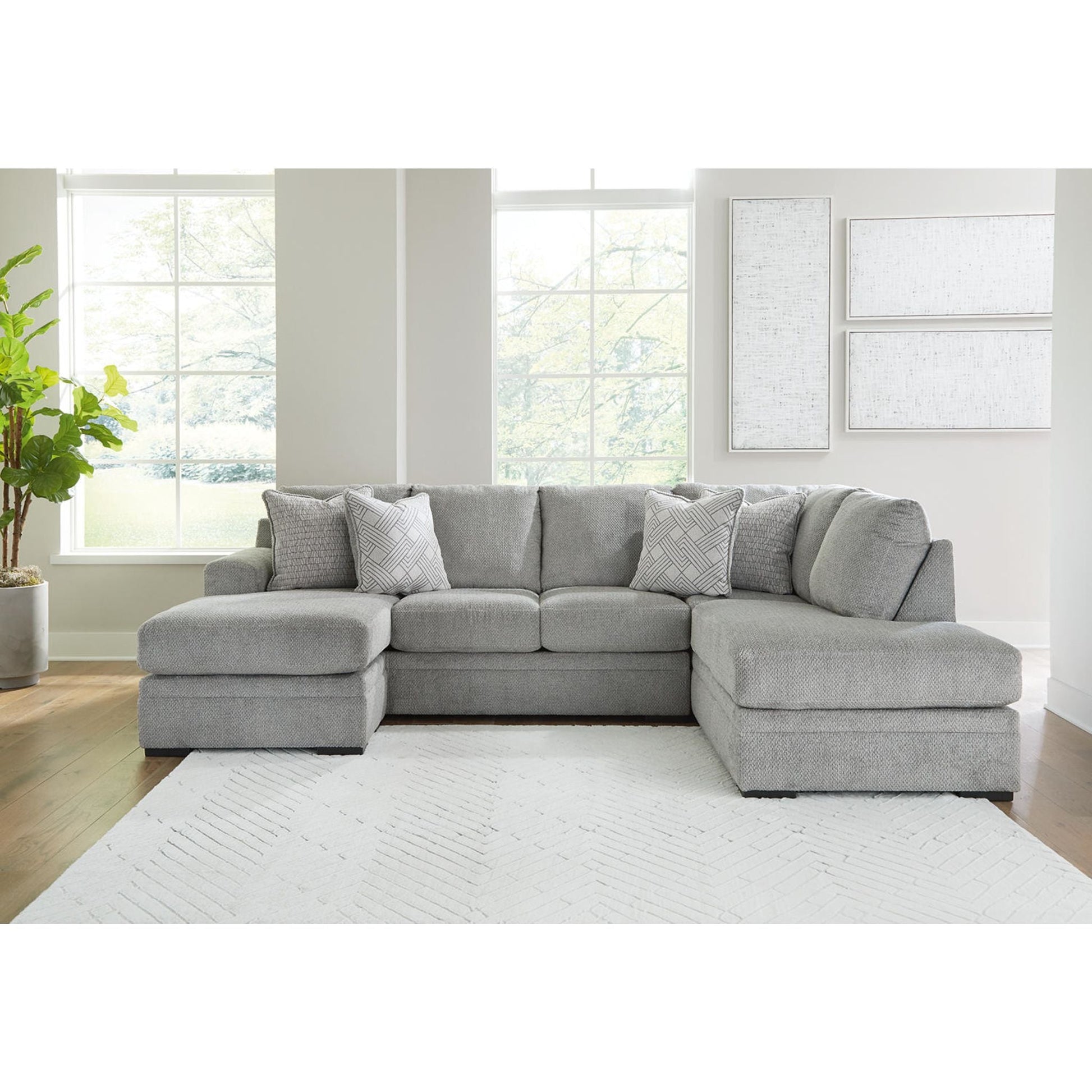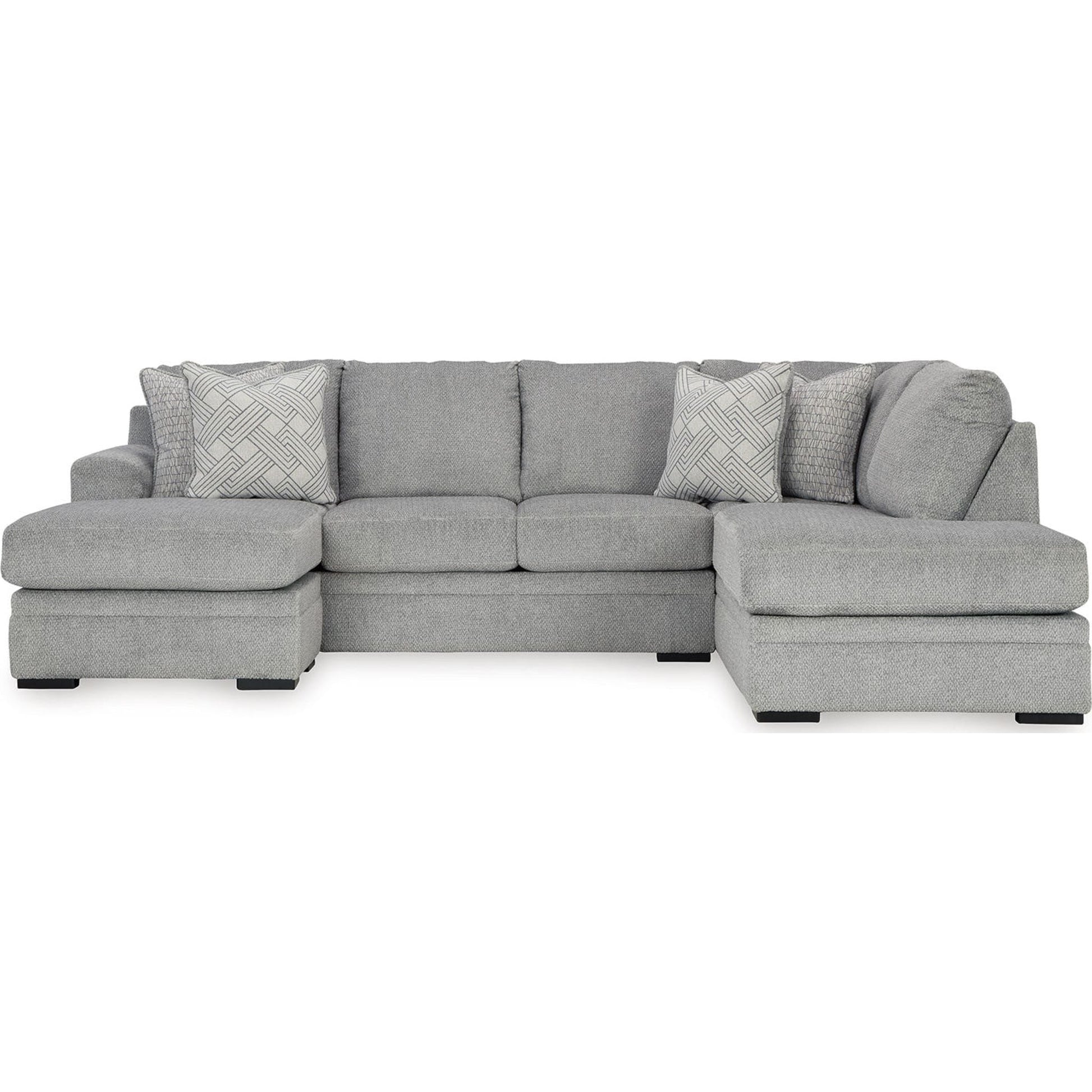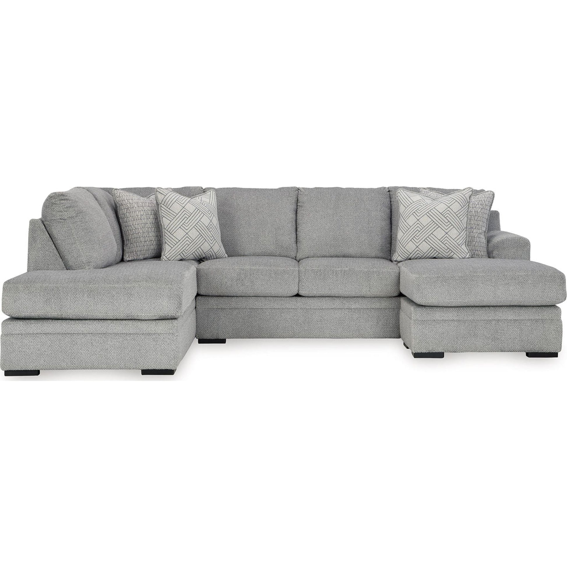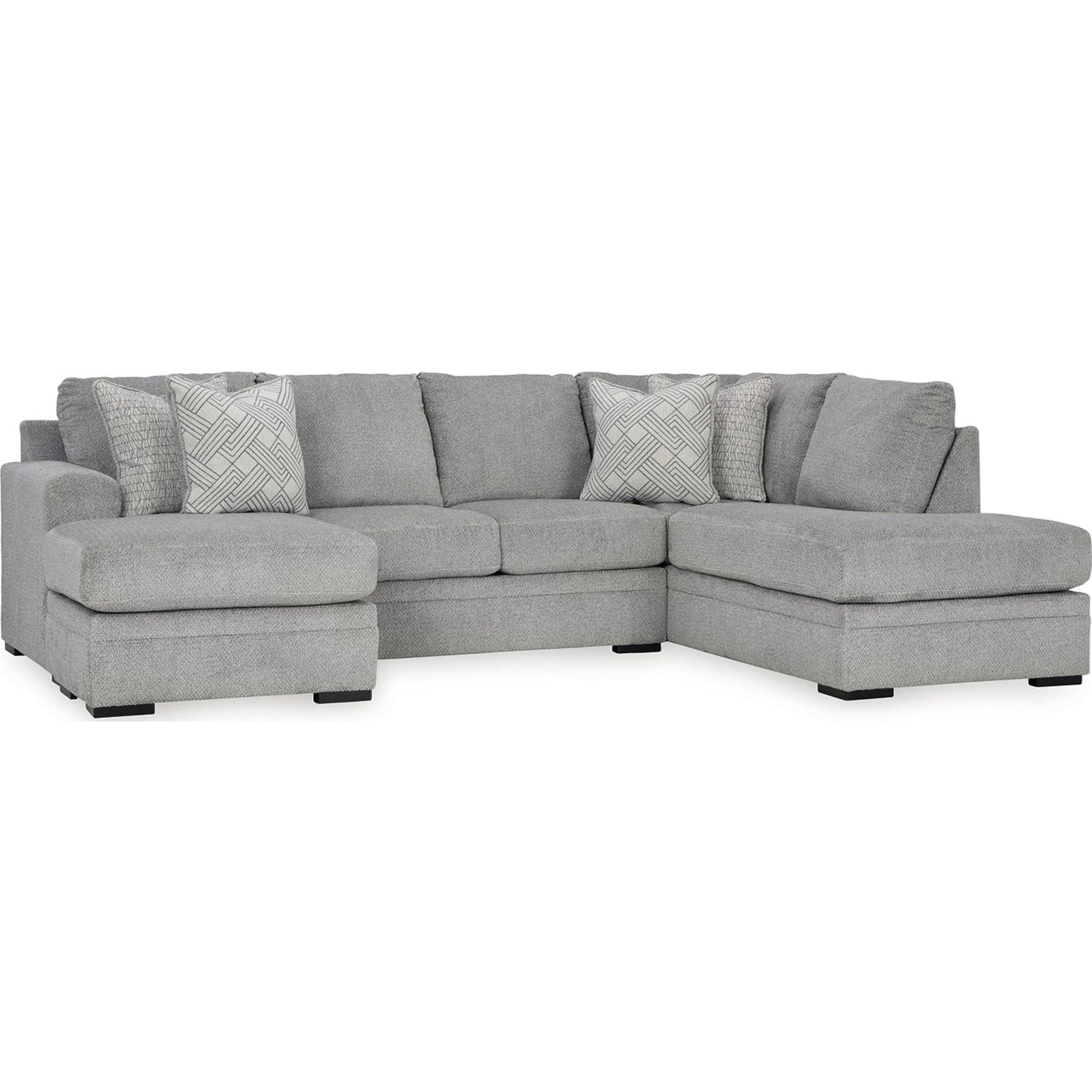 Don’t be limited by a lack of space. This sectional makes family movie nights and get-togethers with friends all the more cozy. With its double-chaise configuration, everyone has a spot to lounge. A trendy gray hue offers the contemporary style you crave. So sit back and relax—this functional piece is ready to indulge you with everyday comfort.