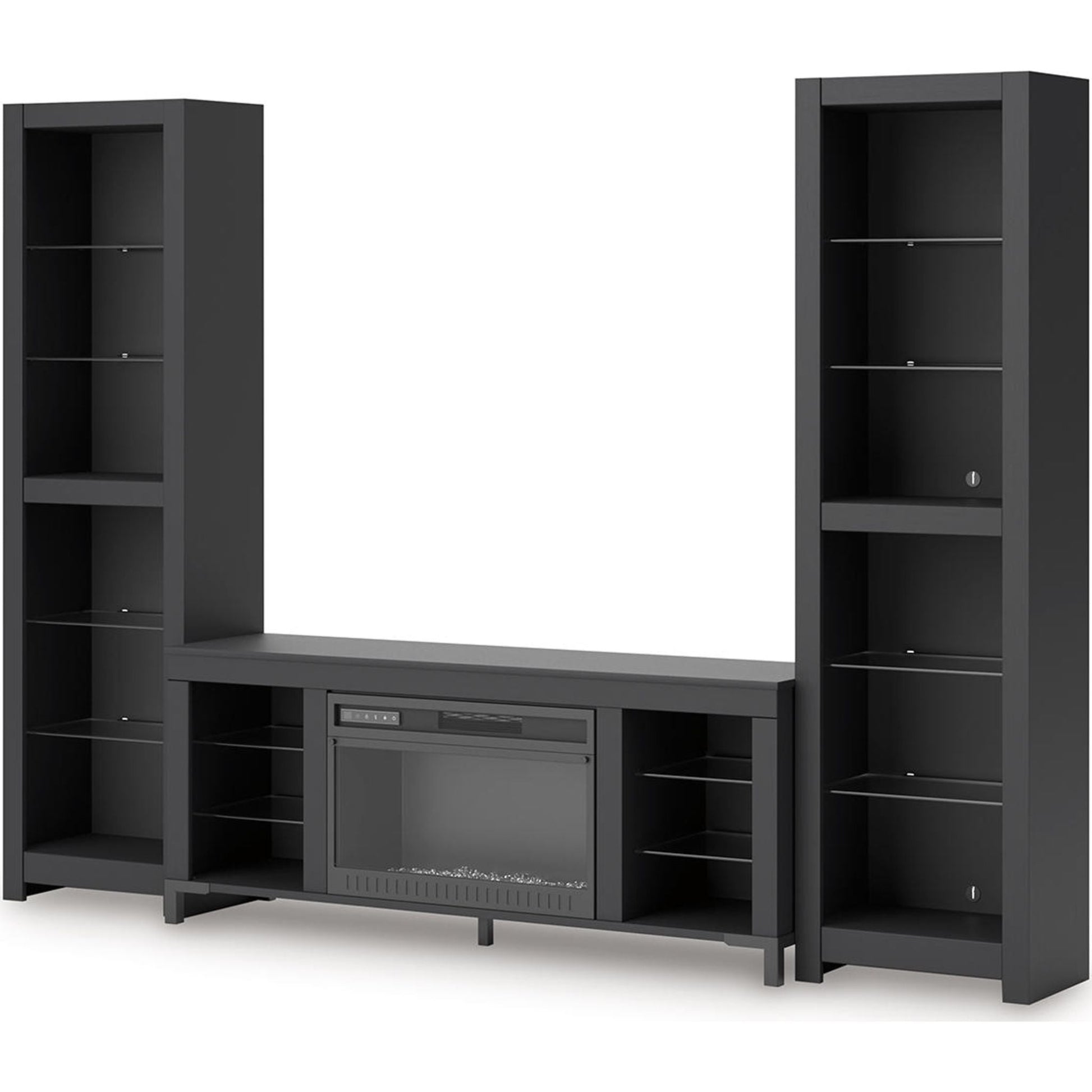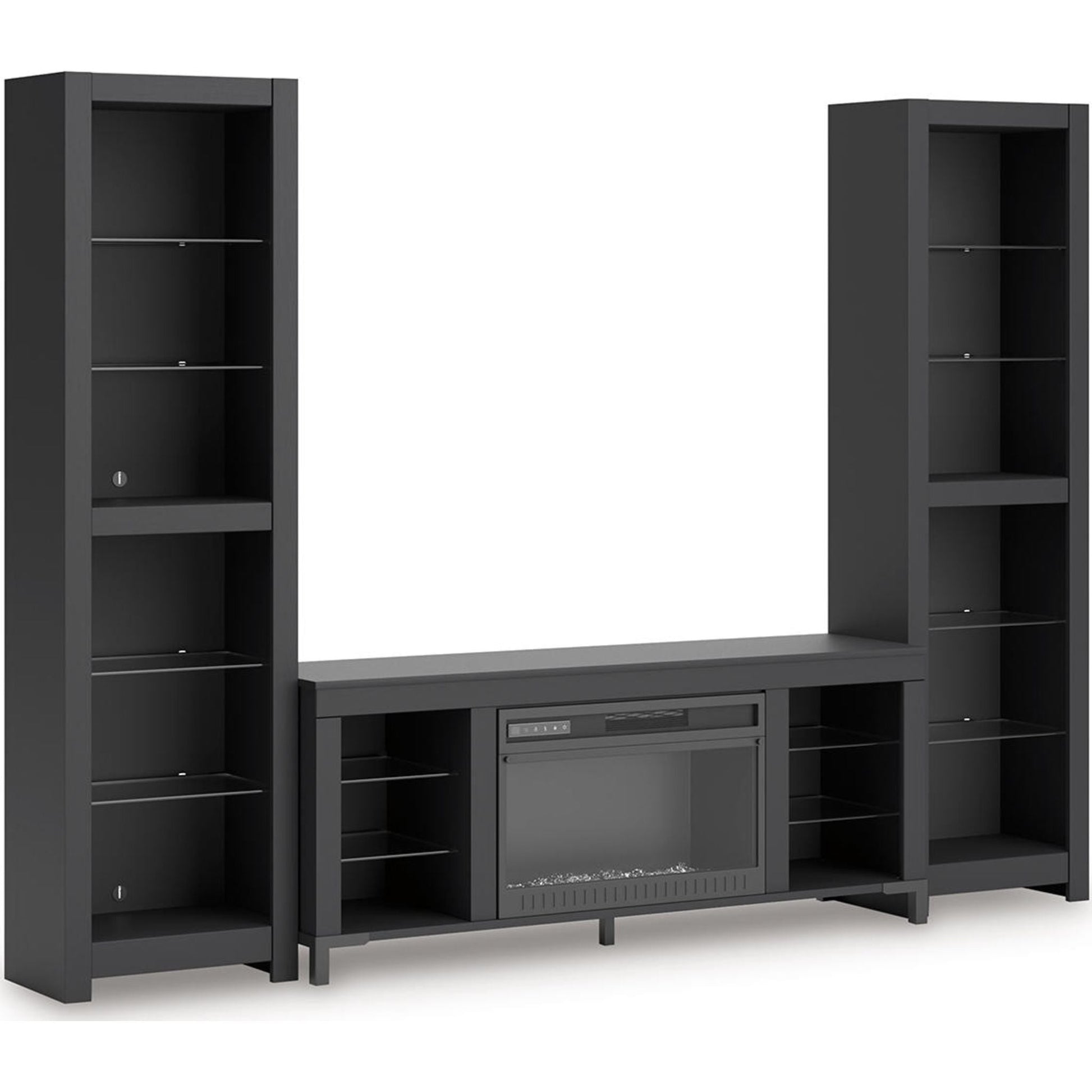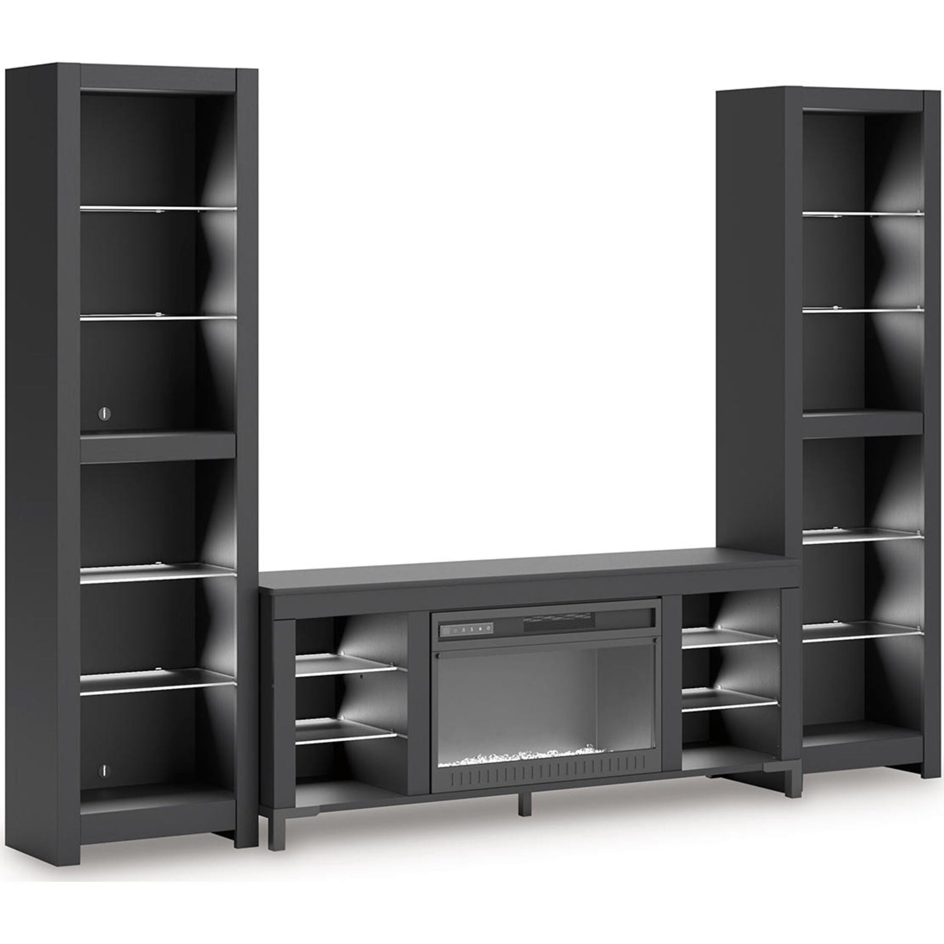 Level up your gaming experience and make movie nights to remember. This entertainment center with fireplace extends your entertainment beyond the screen. Its built-in fireplace brings the heat, synchronizing with LED backlighting on the assorted shelves. And you can customize the vibe with three trendy color options: blue, white and red. Modern function. Captivating, cool style. With this entertainment center, revamp your home’s recreational hub like never before.