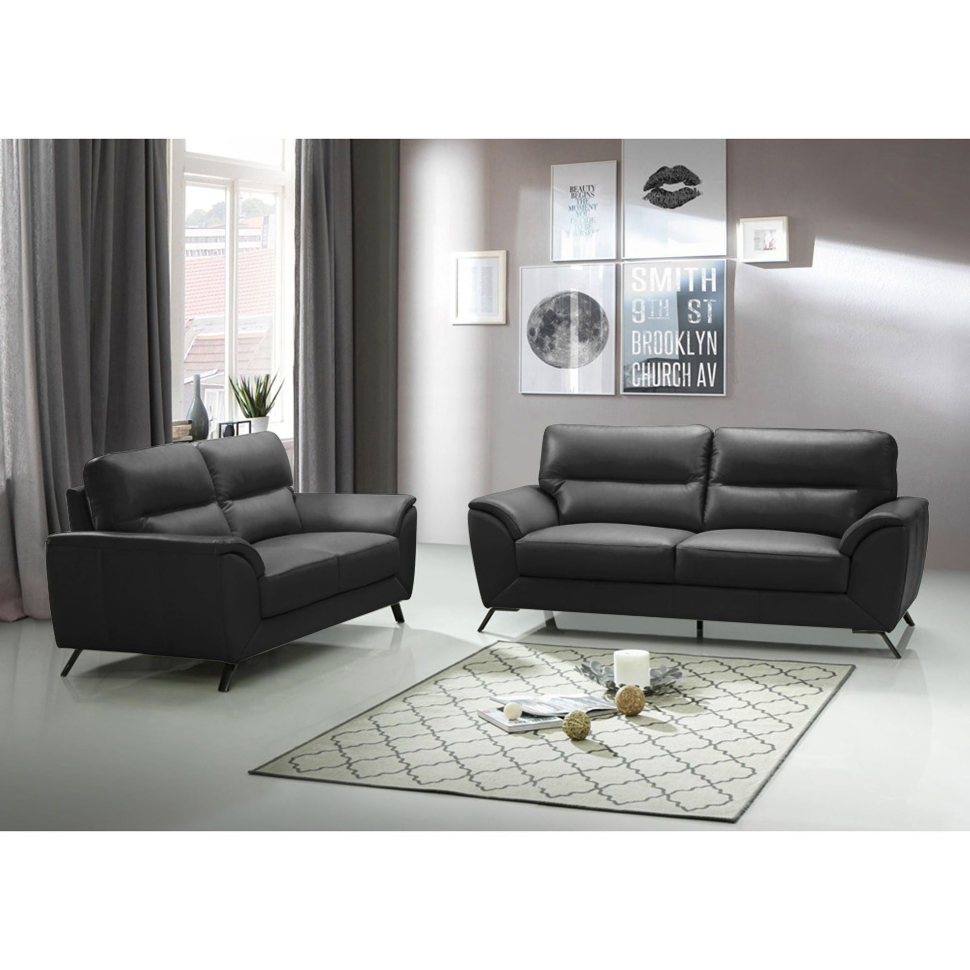Contemporize the way you relax with the Clara Loveseat. Upholstered in top grain leather match that gives an all-around classy look. The metal feet make the Clara the perfect canopy for your modern home.