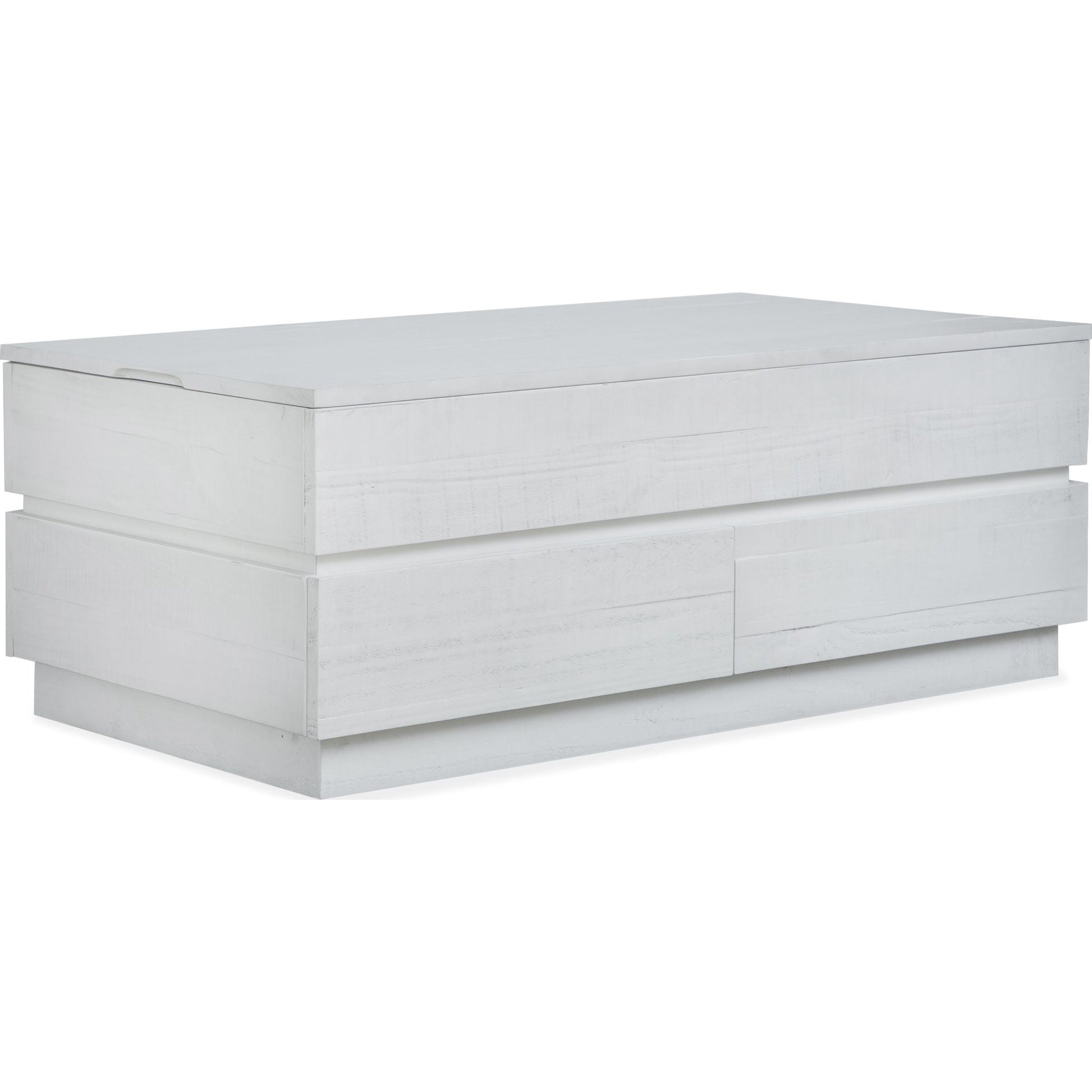 Introducing the Claudette collection - featuring a stunning alabaster finish on rustic low pine solids. Standout pieces in this collection include a lift-top storage cocktail table with casters and a rectangular end table. Perfect for adding warmth and character to your living room or hallway decor!
