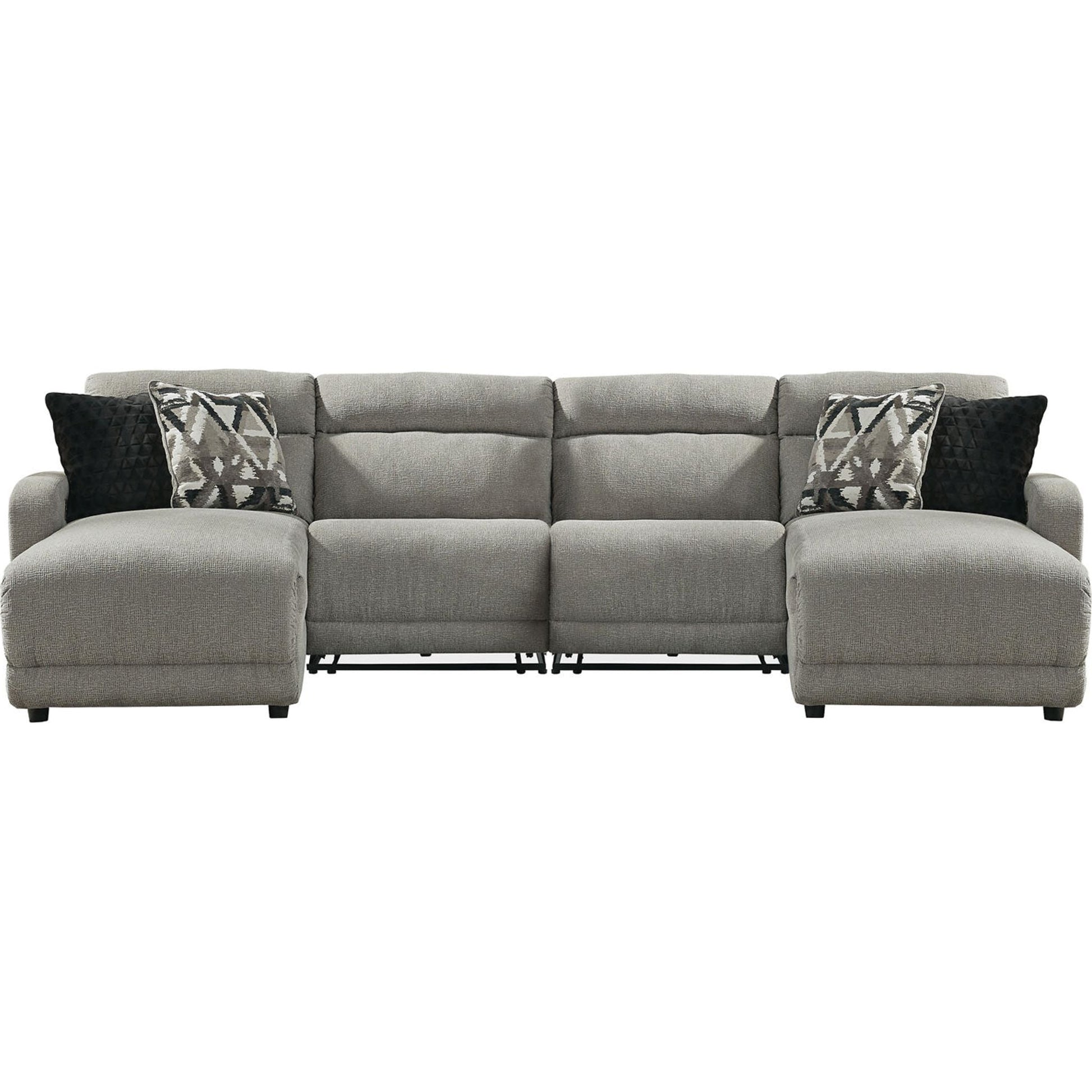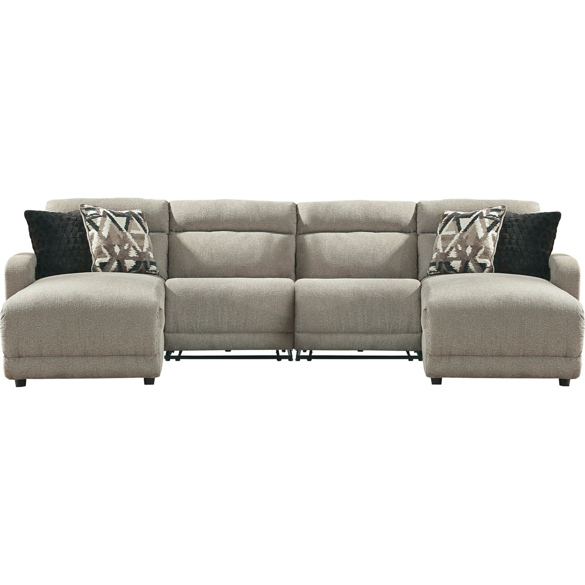 Delightfully modern. Exceptionally comfortable. When it comes to modular furniture with easy-elegant appeal, it’s hard to beat this power reclining sectional. Wrapped in a decadently plush stone-tone fabric for neutral versatility, it's dressed to impress with a clean-lined divided back, curved track arms and a low-profile back for a relaxed, contemporary aesthetic.