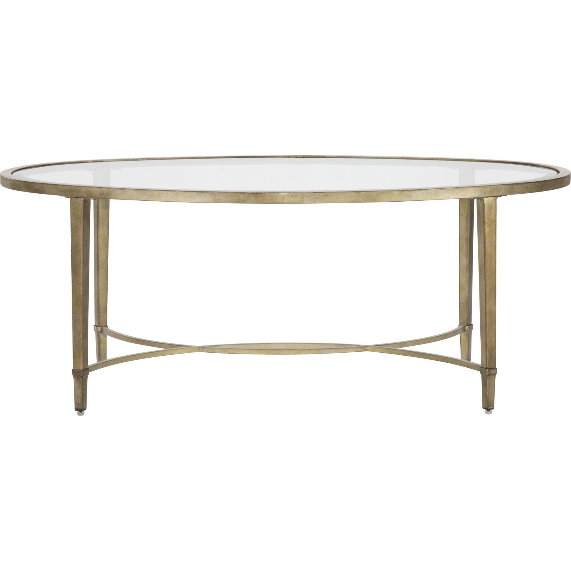 The Copia Coffee Table Enhances the Casual Style of Your Living Room Bring elegant design and casual style into your living space with the Copia coffee table. Its metal base has an attractive antique silver finish with a golden shimmer. The base features a contemporary design with interlocked half-circles, which provide support and create an outstanding look. The 5mm glass top has an oval shape and 1-inch bevelled edges. With its striking design, the Copia antique silver coffee table acts as the centrepiece of your living room. Its contemporary shape blends well with furniture and decor accents in many casual styles. This attractive coffee table makes it easy to serve drinks and snacks to your guests while they relax on the sofa. Its glass top is easy to clean with just a damp cloth. The glass material distributes light in a way that creates the illusion of an airier room, so this table fits well in smaller apartments or condos. For larger rooms, matching sofa and end tables are available separately to complete your decor. Antique silver finish with a golden nuance The Copia casual coffee table has a 5mm glass top so spills clean up easily An attractive look that suits casual decor styles