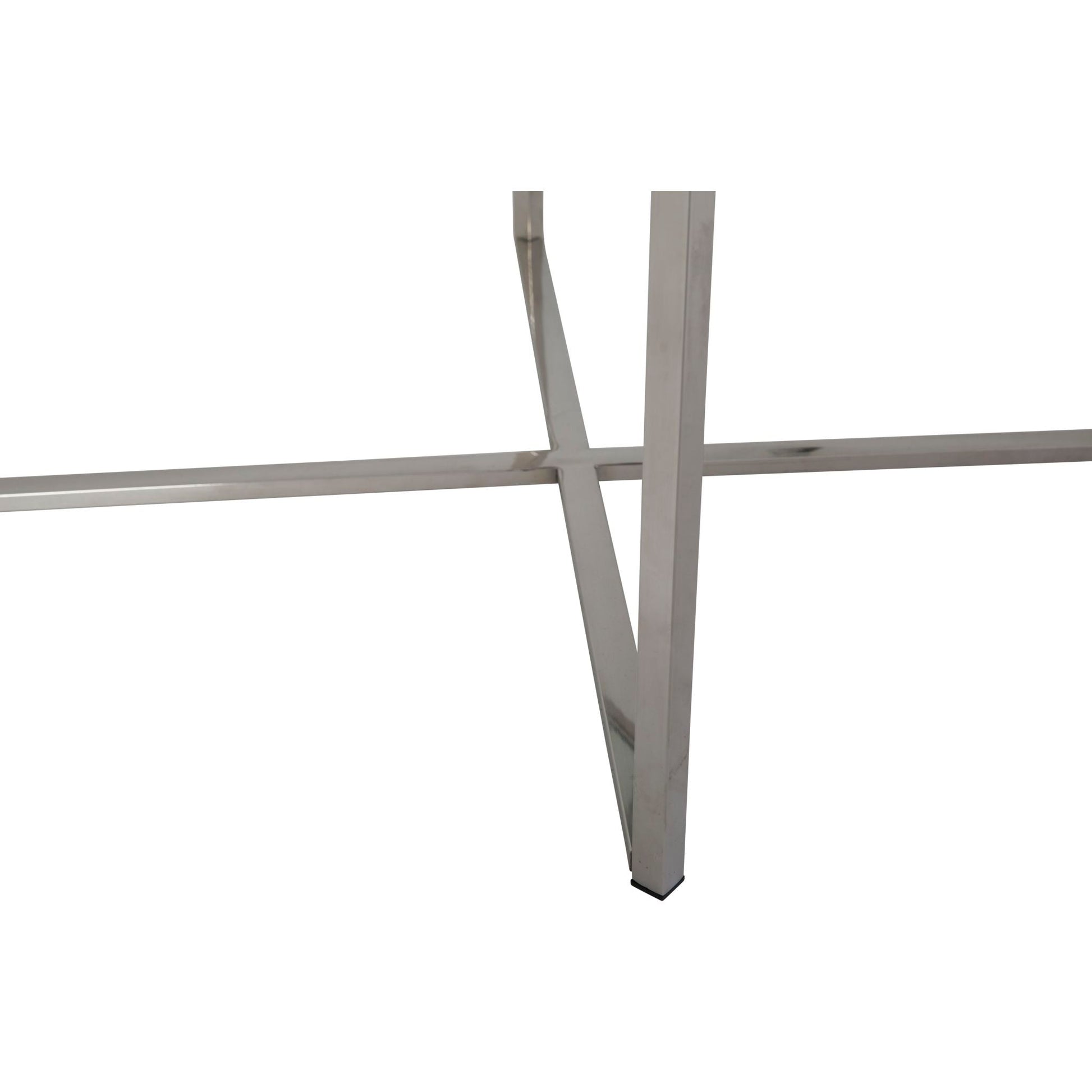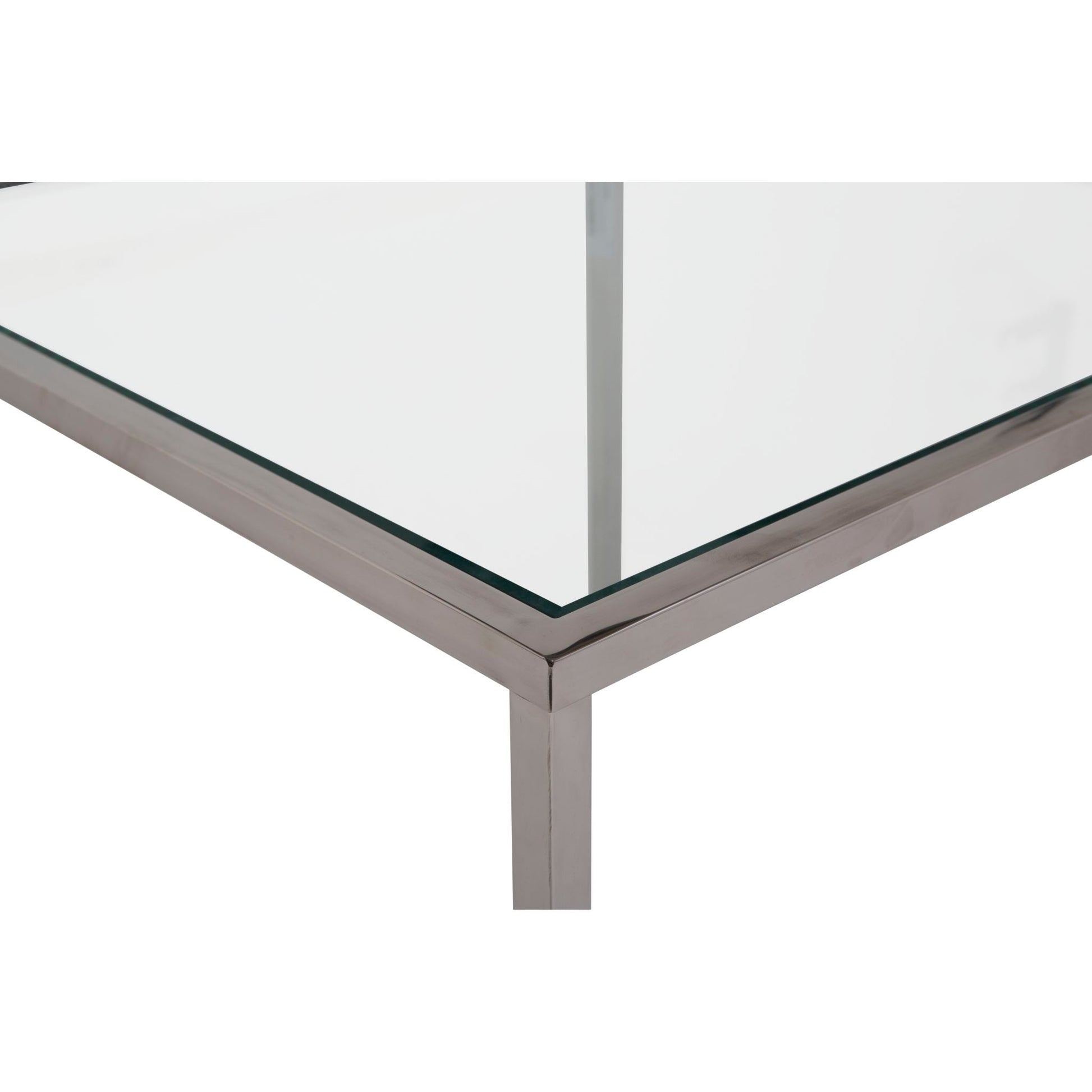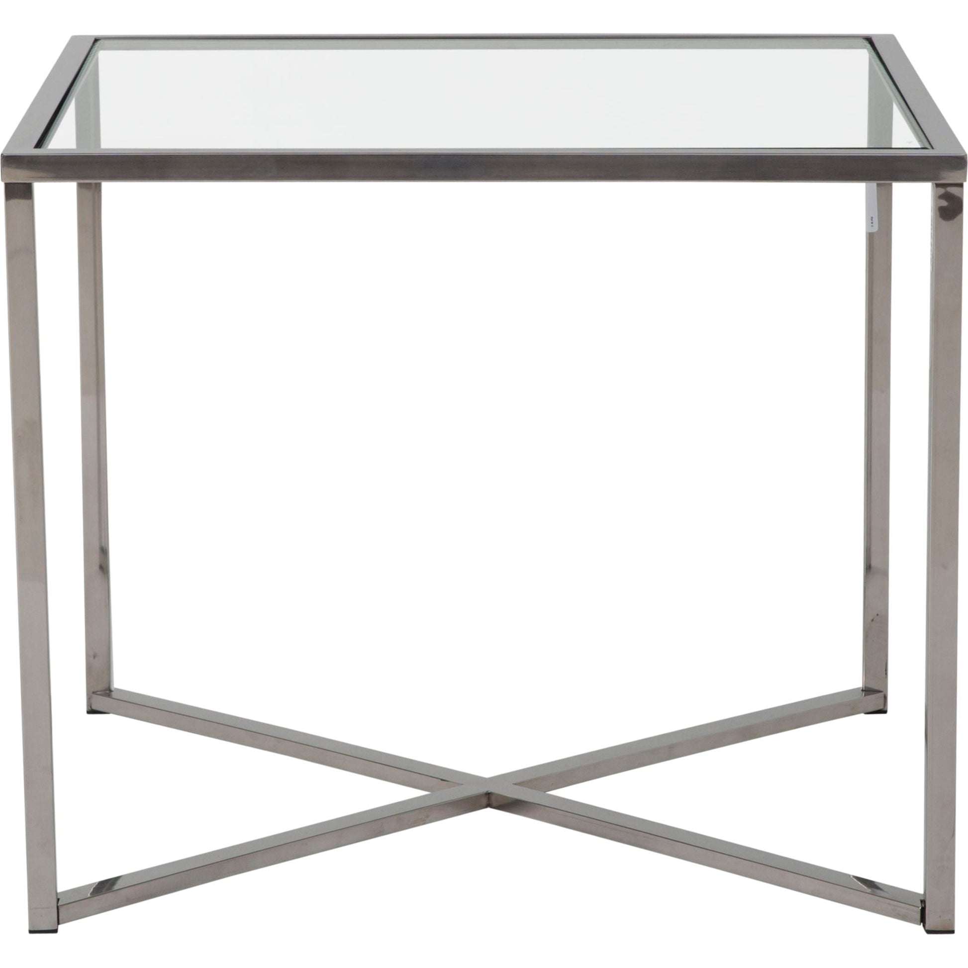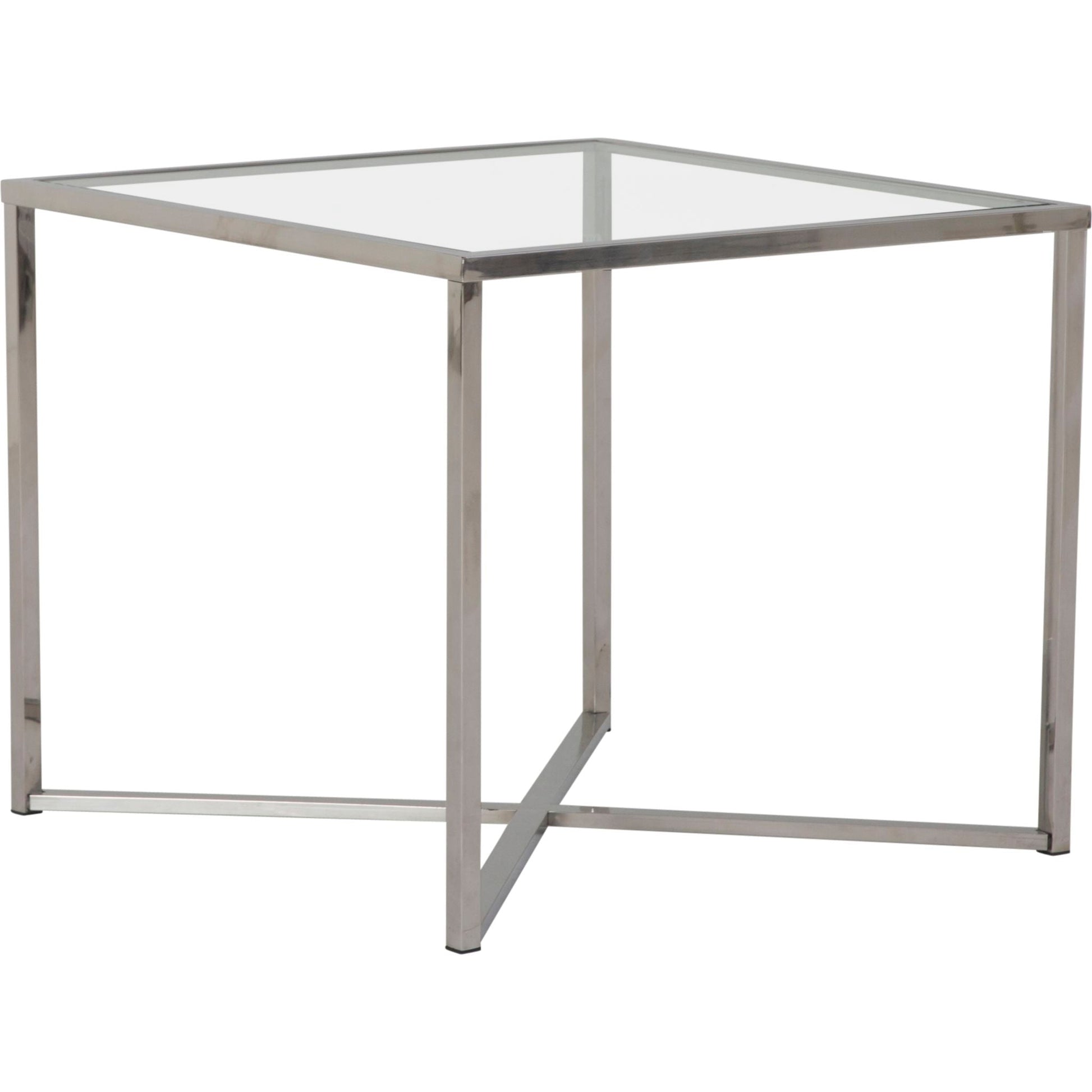Chrome and glass tablesSleek modern X-base designBeveled 10mm tempered clear glass topStainless steel base in chrome finish