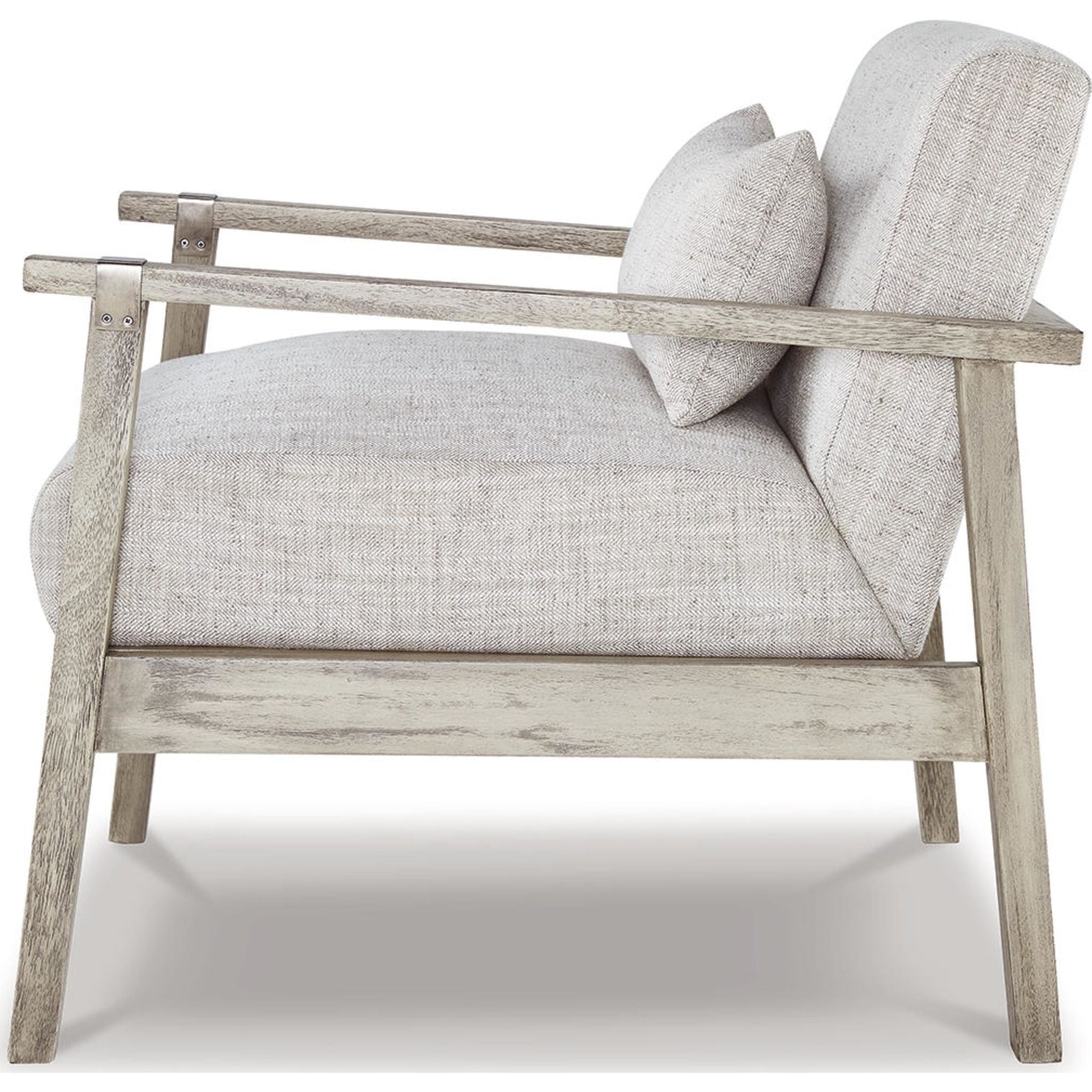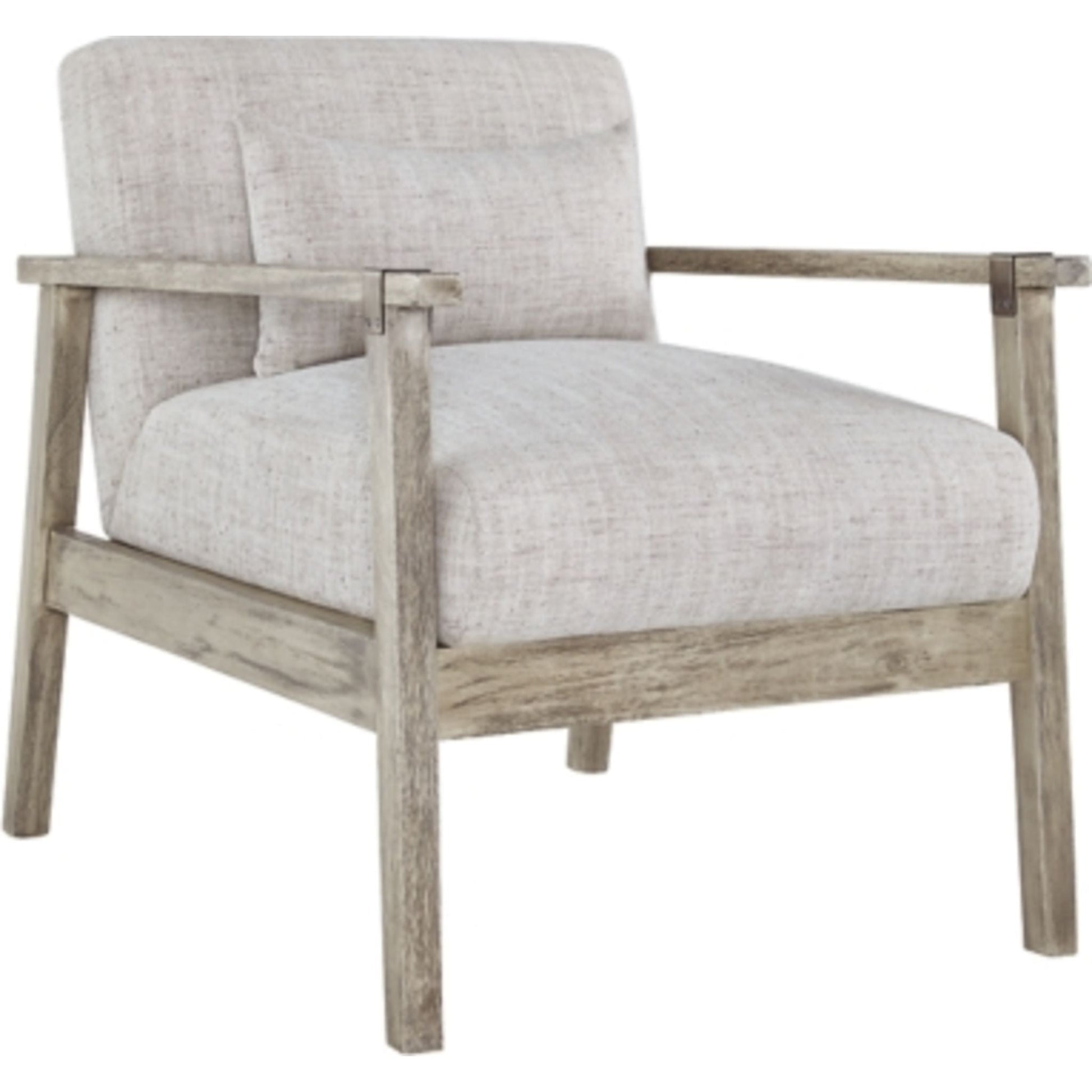Keep your seating casually cool with this accent chair. The clean-lined design sports a gray finish for a modern appeal, while light neutral upholstery in a herringbone pattern creates textural interest. Antiqued pewter-tone accents add a touch of urban flair, rounding out this relaxed take on contemporary style.