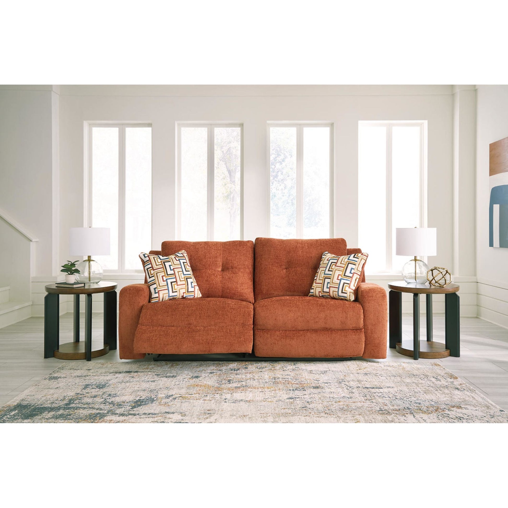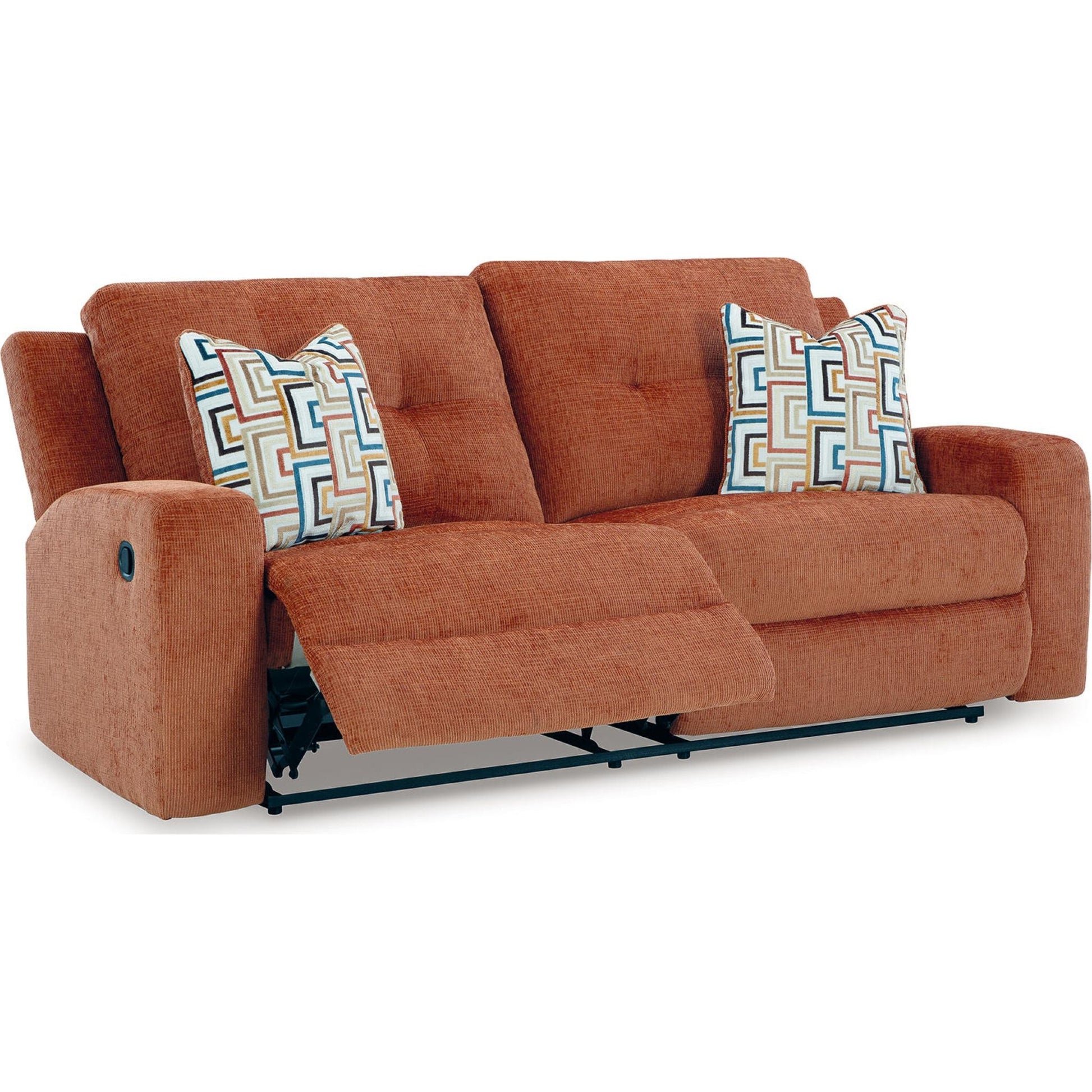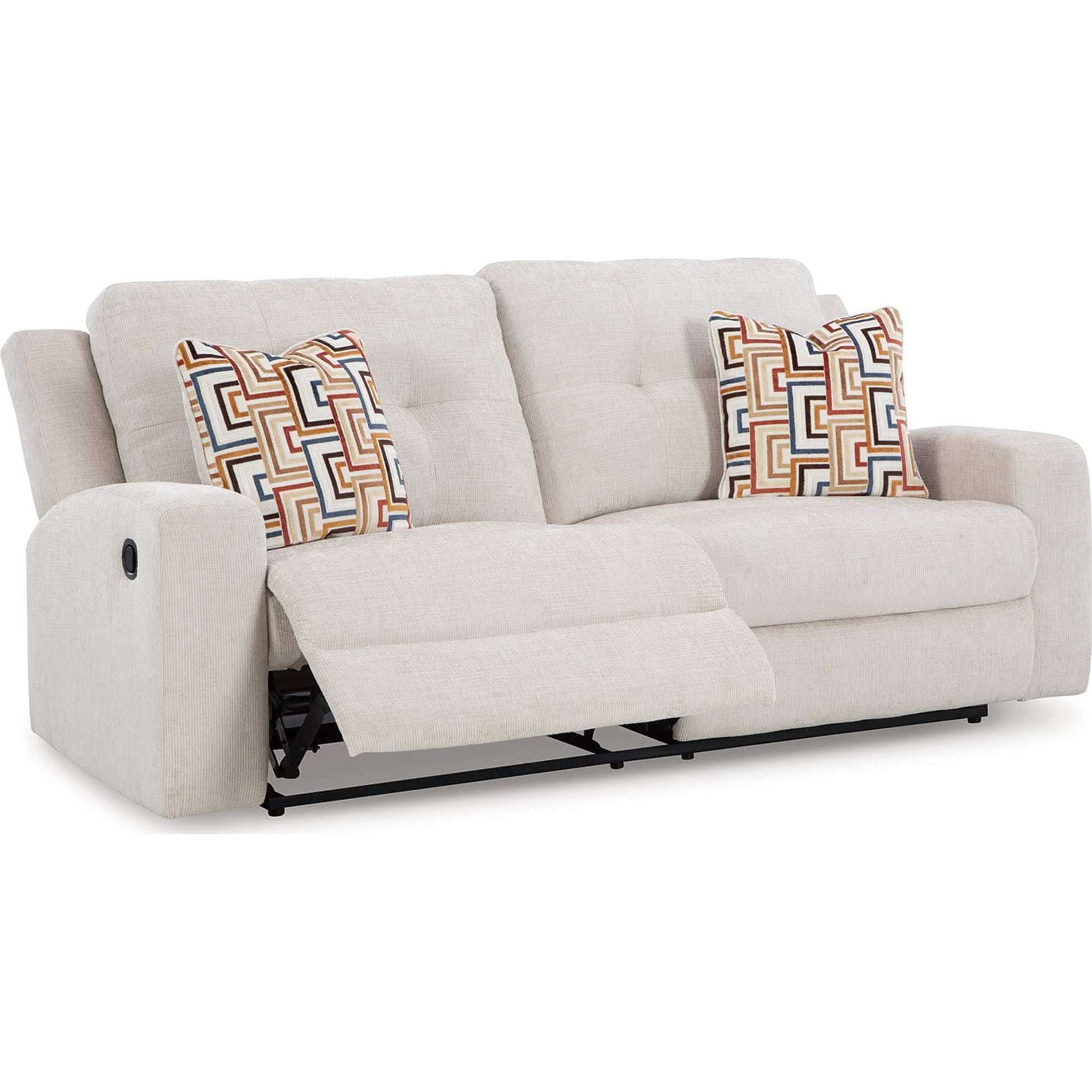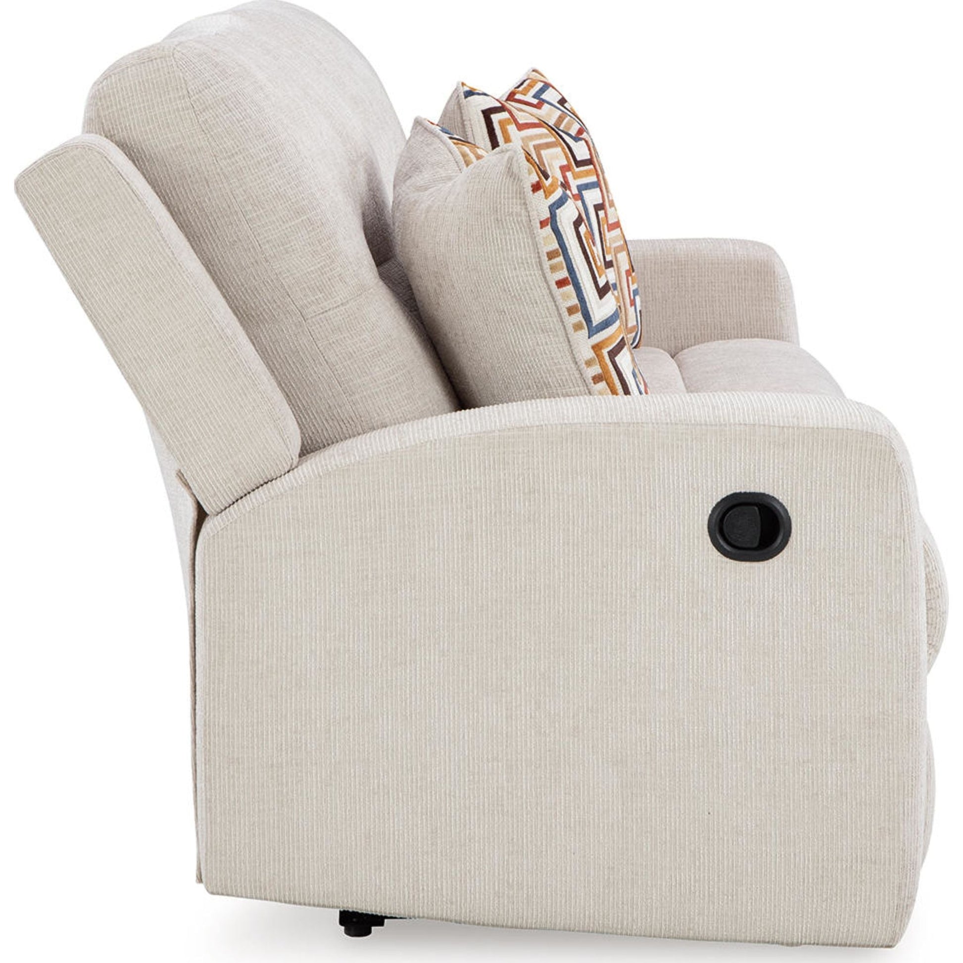 This reclining sofa invites you to a luxuriously soft lounging experience. The chic hue fits right in with contemporary color palettes. A tufted back keeps the look right on trend. Balancing style and function, its pull tab reclining effortlessly takes you to relaxation mode.