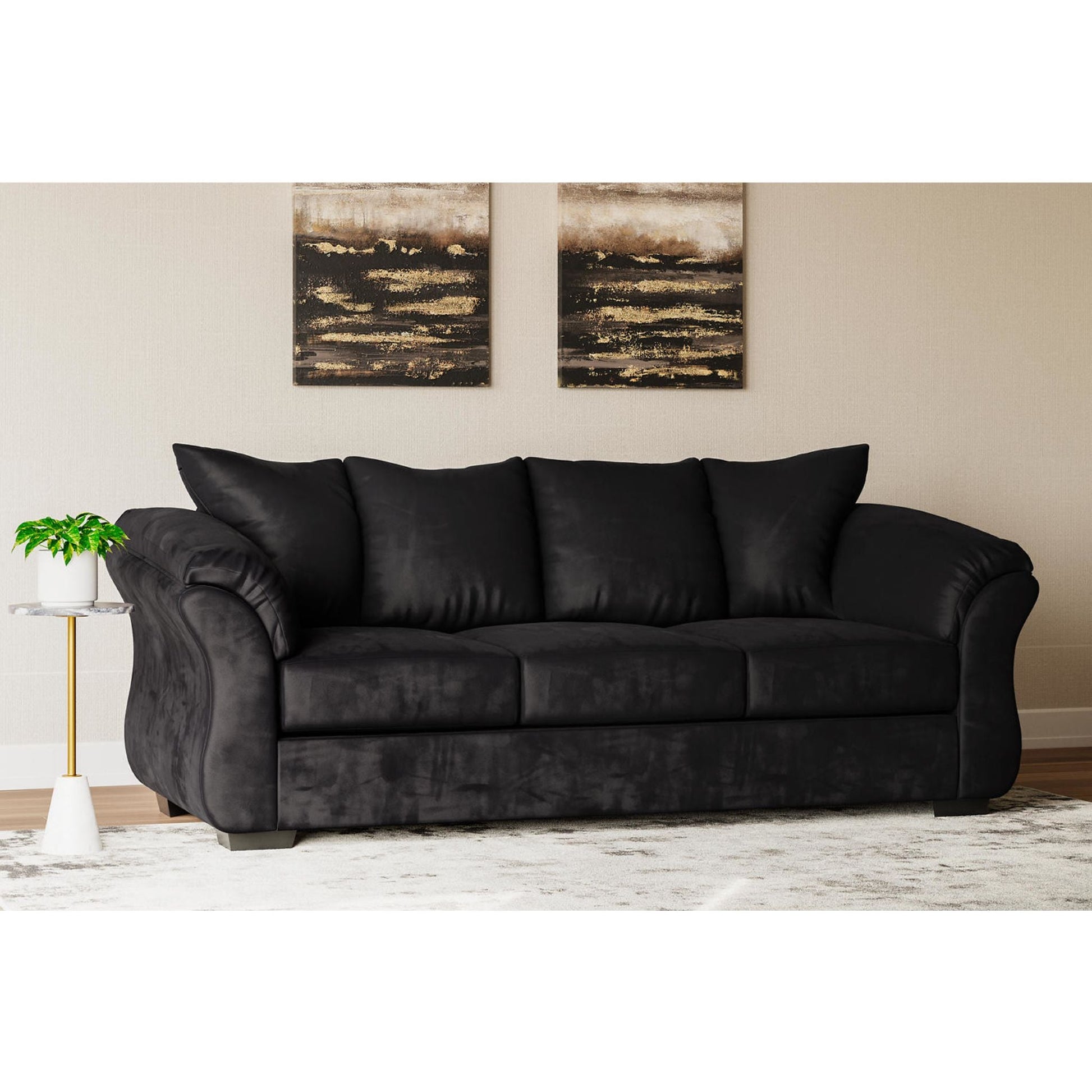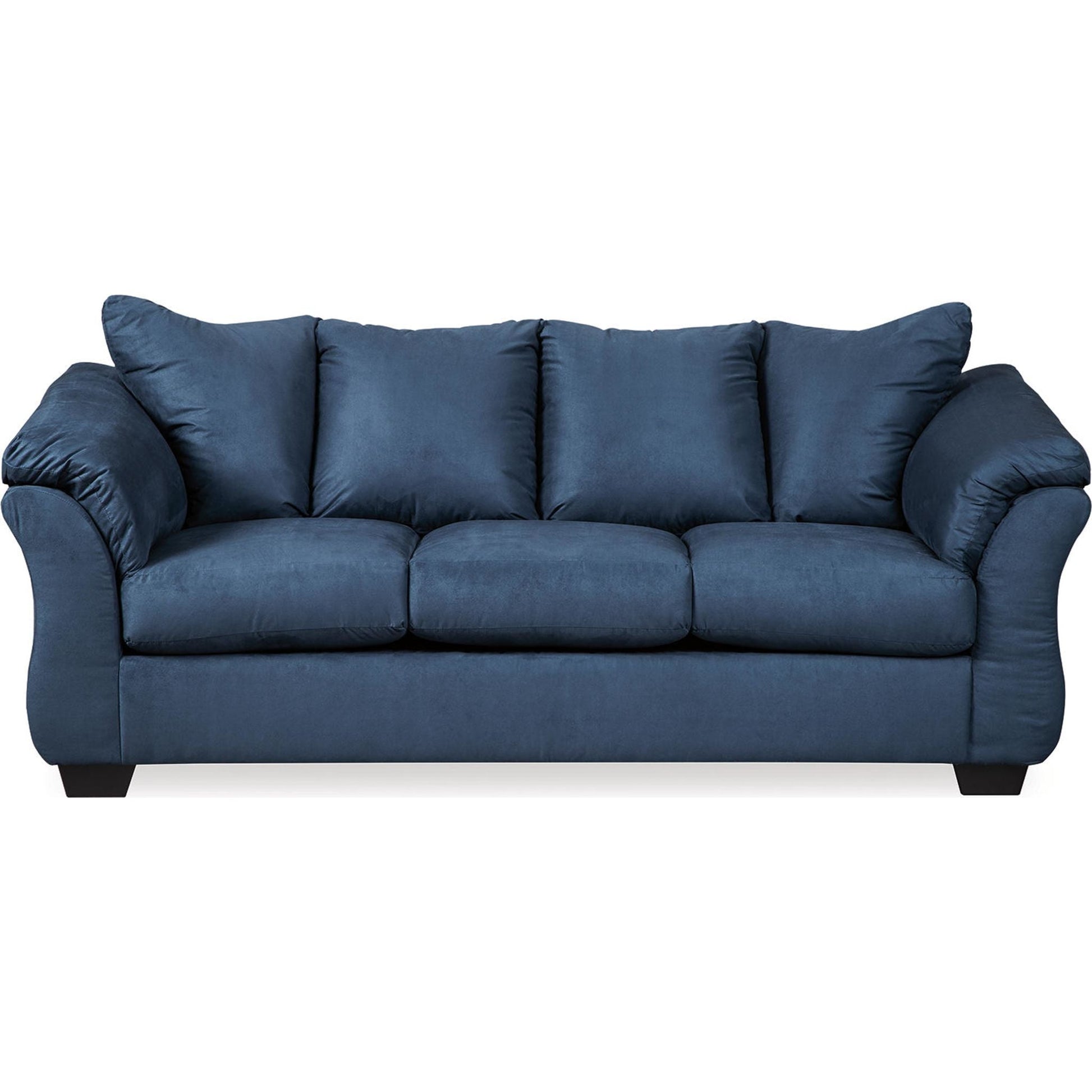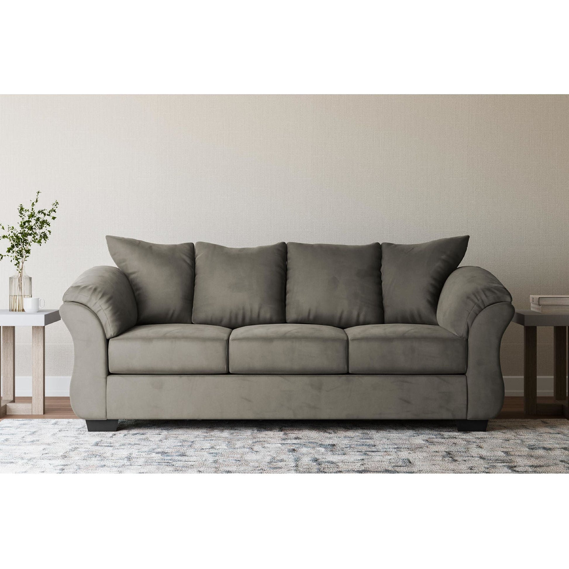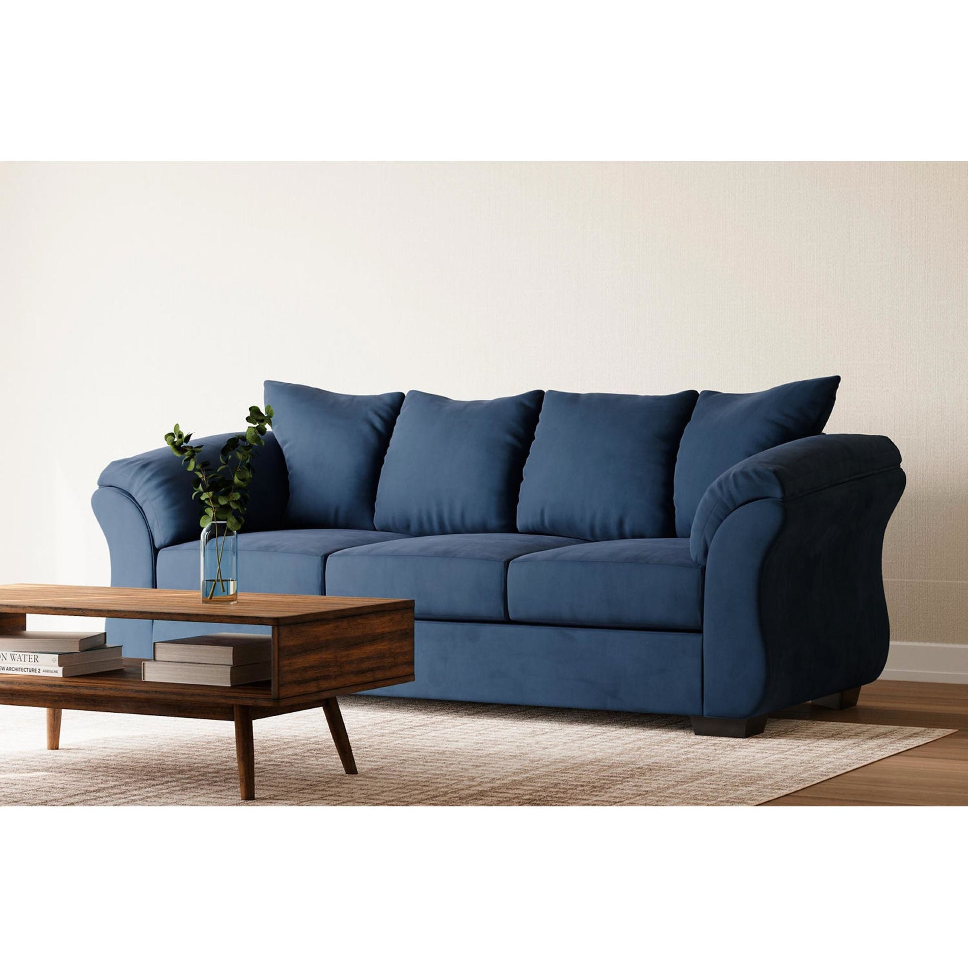 Talk about fine lines and great curves. That’s the beauty of this standout sofa—made to suit your appreciation for clean, contemporary style. A striking flared frame, comfy pillow top armrests and an ultra-soft upholstery that holds up to everyday living complete this fashion statement.
