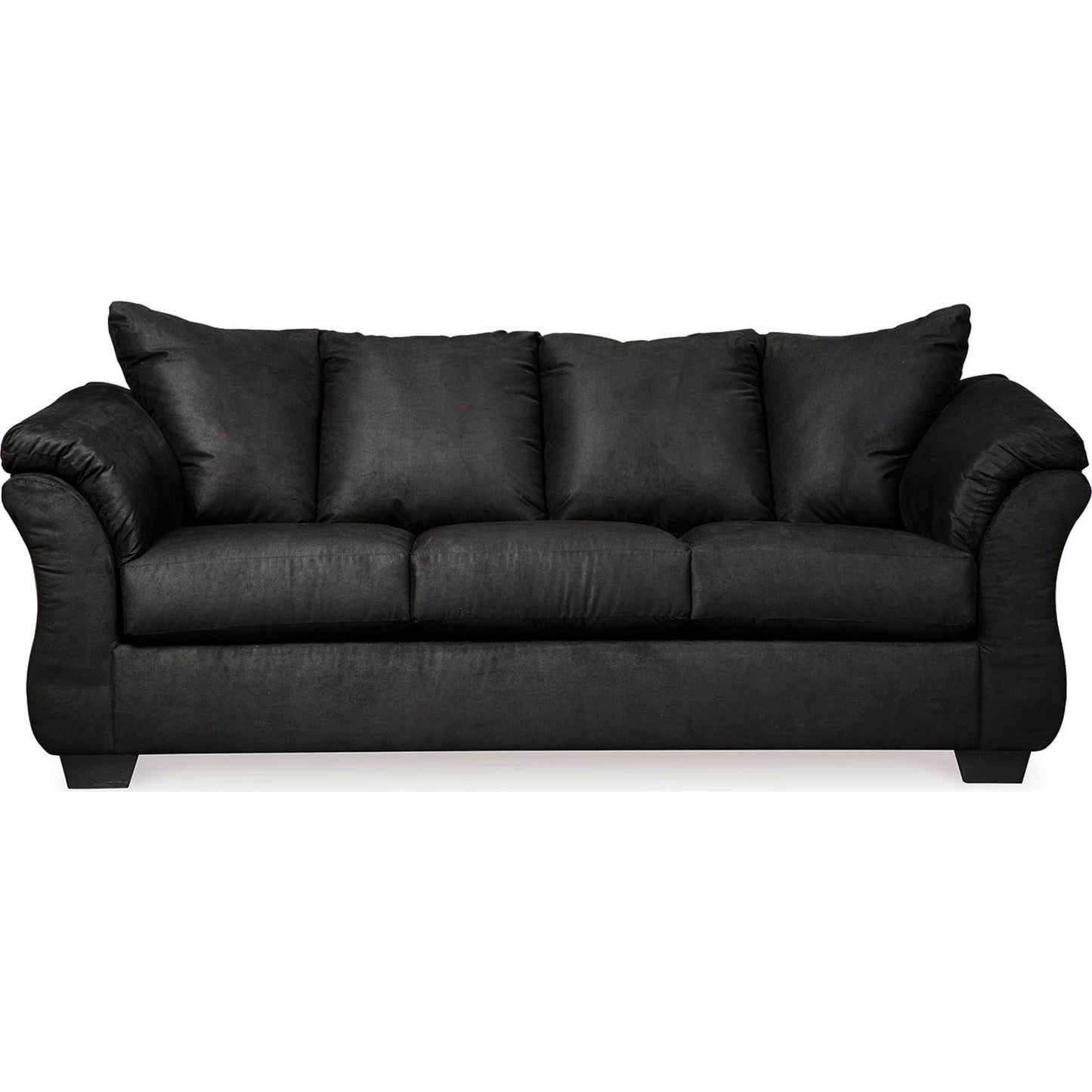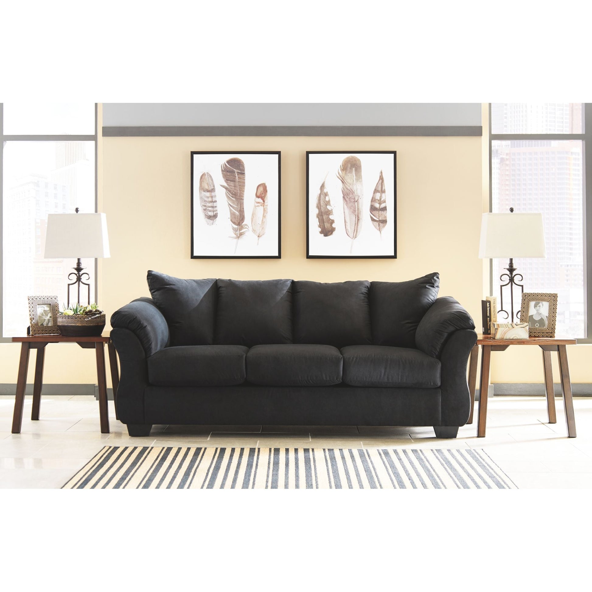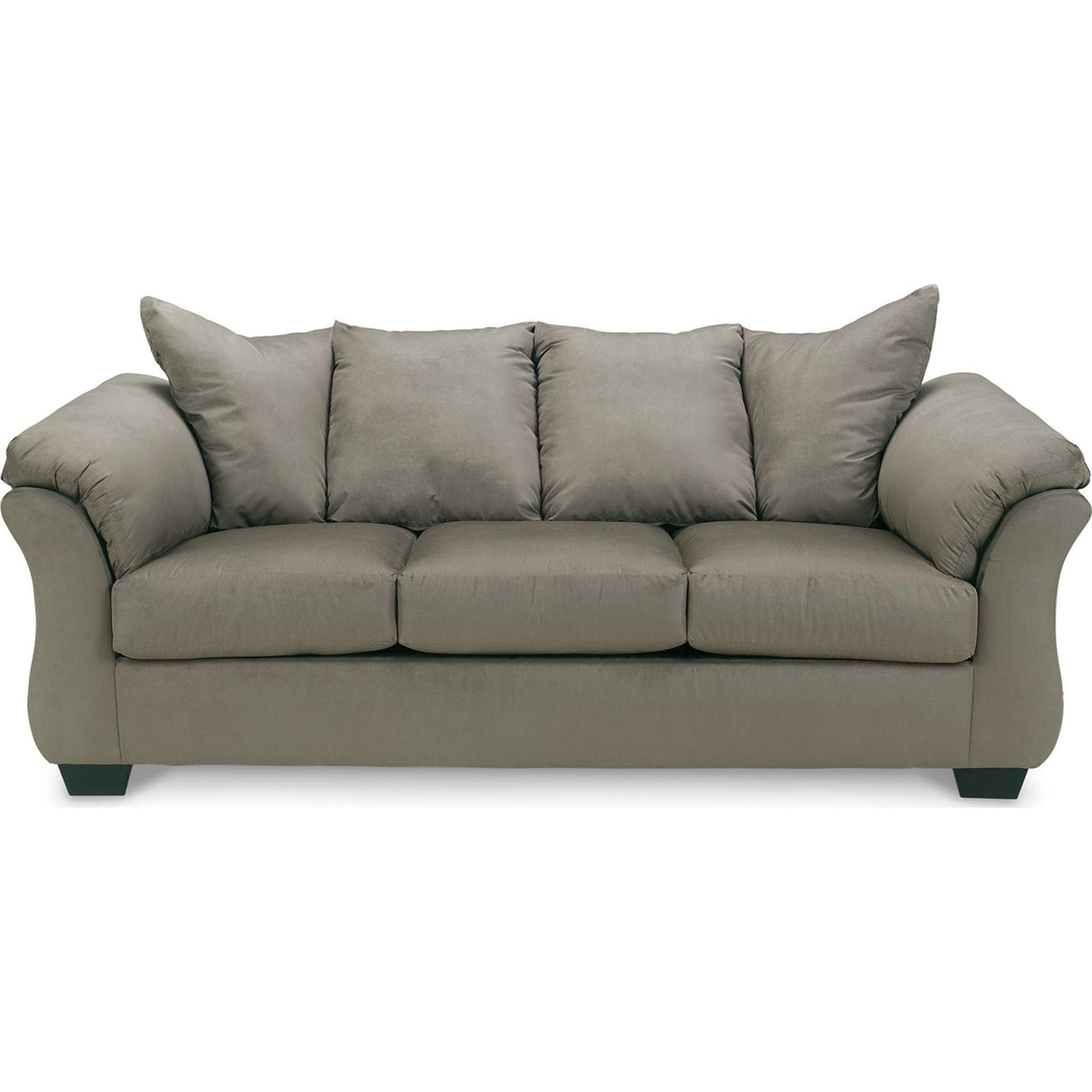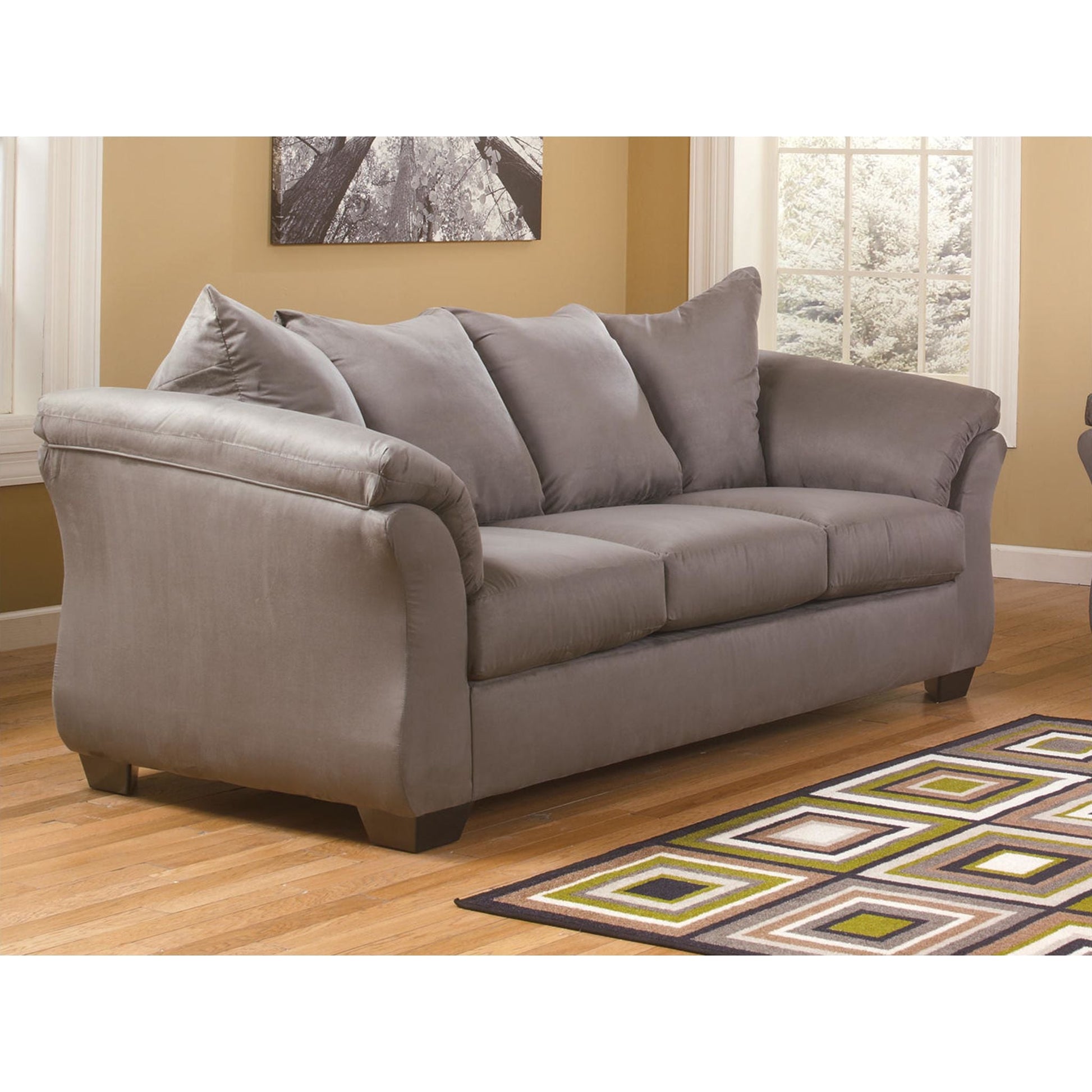 Talk about fine lines and great curves. That’s the beauty of this standout sofa—made to suit your appreciation for clean, contemporary style. A striking flared frame, comfy pillow top armrests and an ultra-soft upholstery that holds up to everyday living complete this fashion statement.