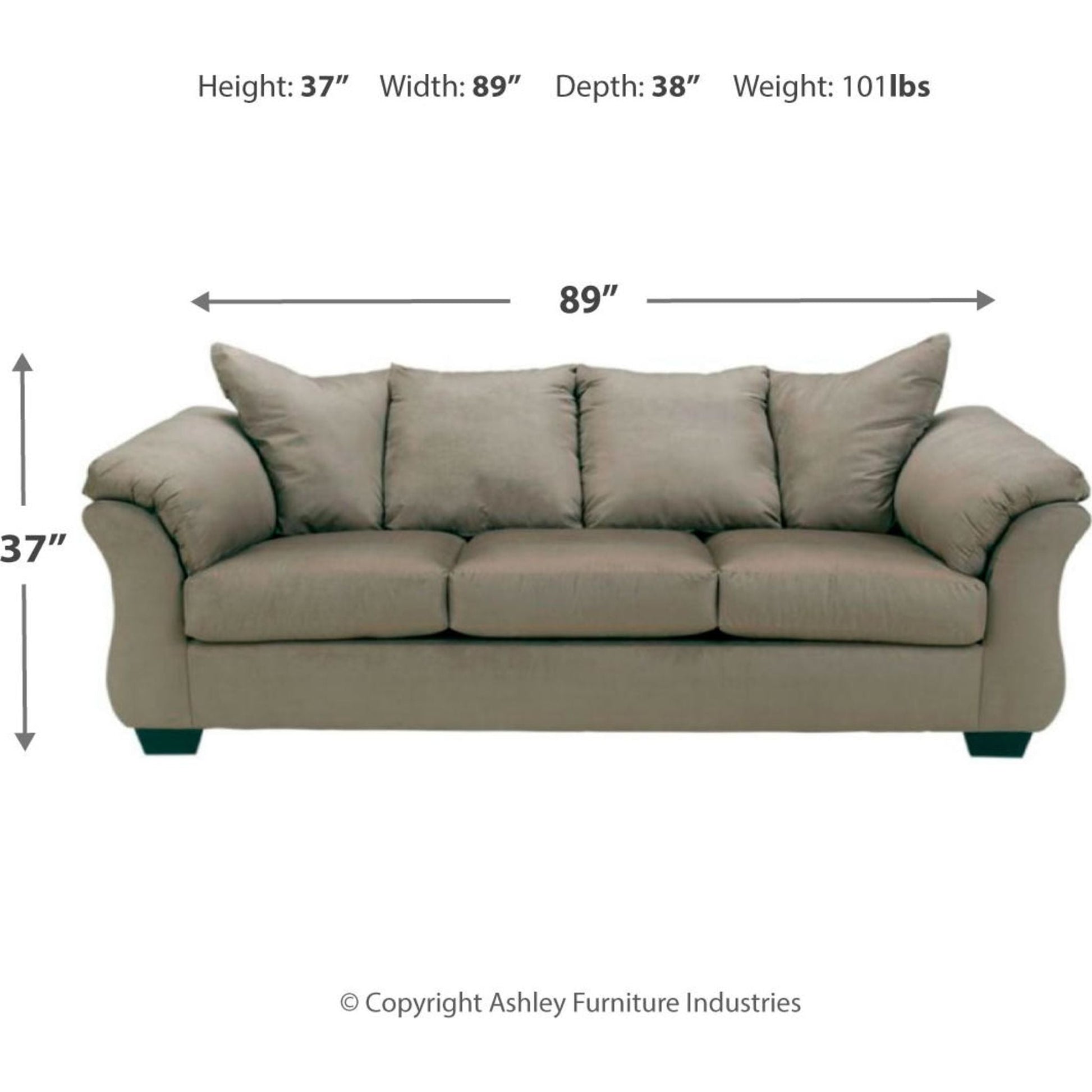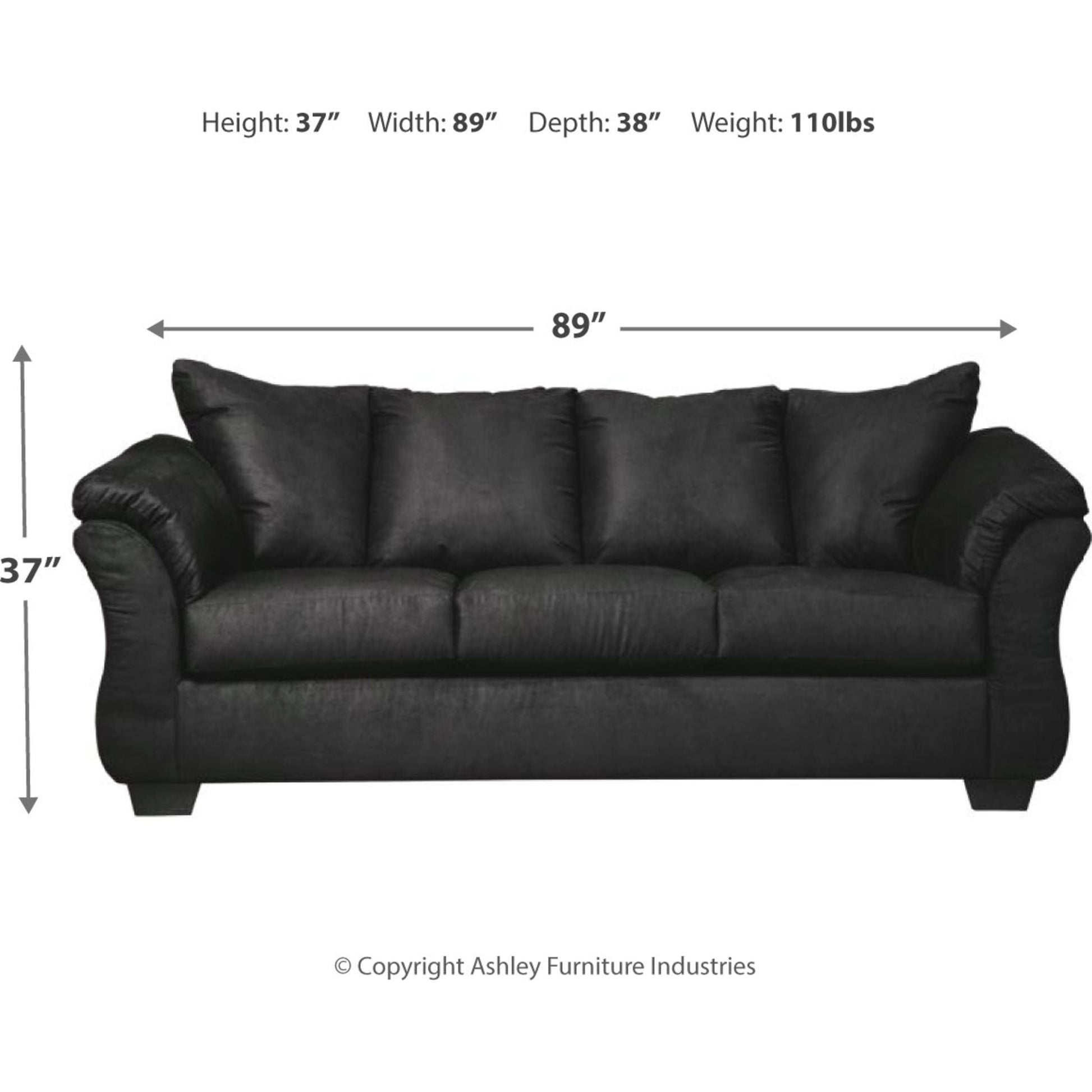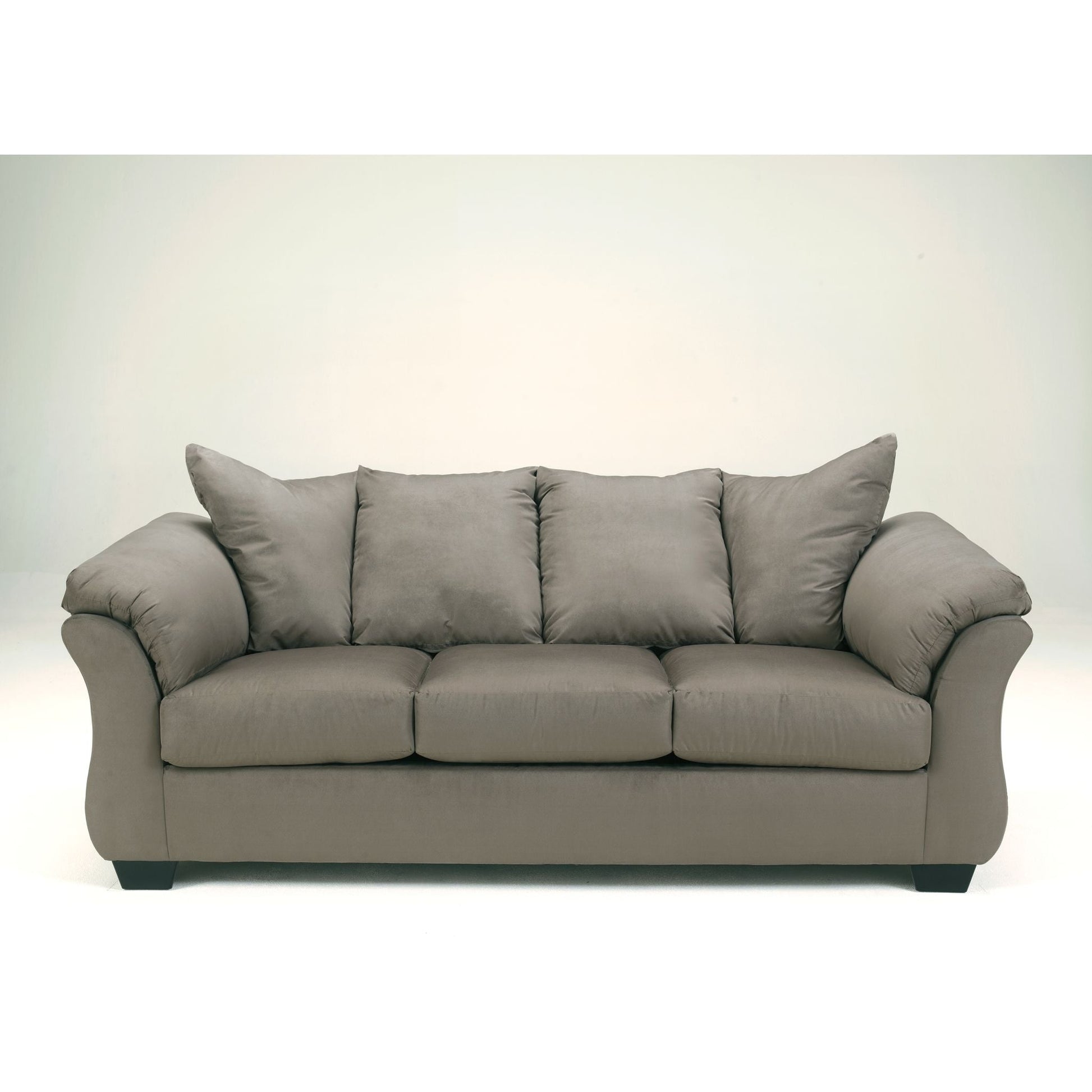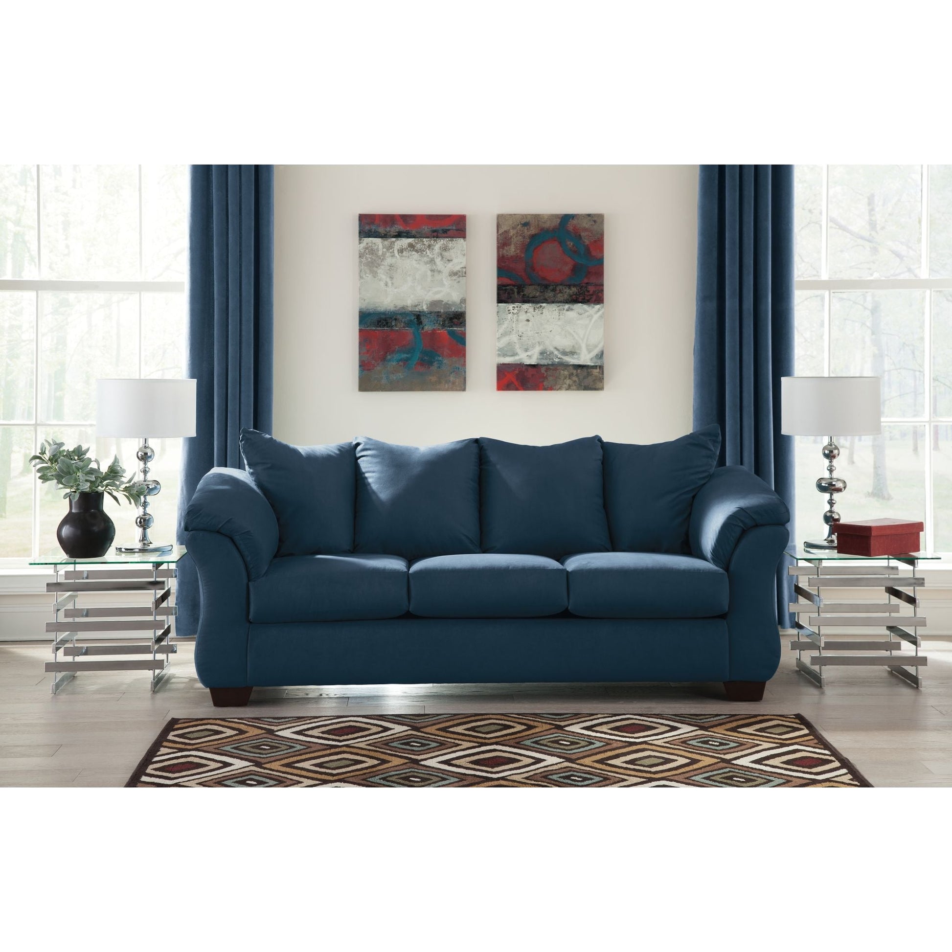Talk about fine lines and great curves. That’s the beauty of this standout sofa—made to suit your appreciation for clean, contemporary style. A striking flared frame, comfy pillow top armrests and an ultra-soft upholstery that holds up to everyday living complete this fashion statement.