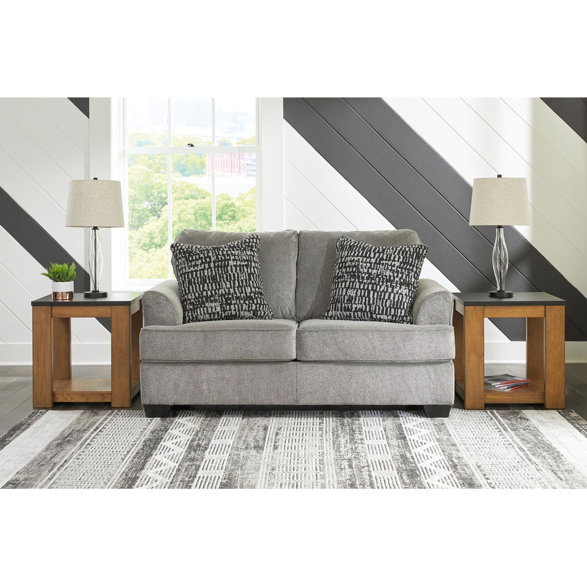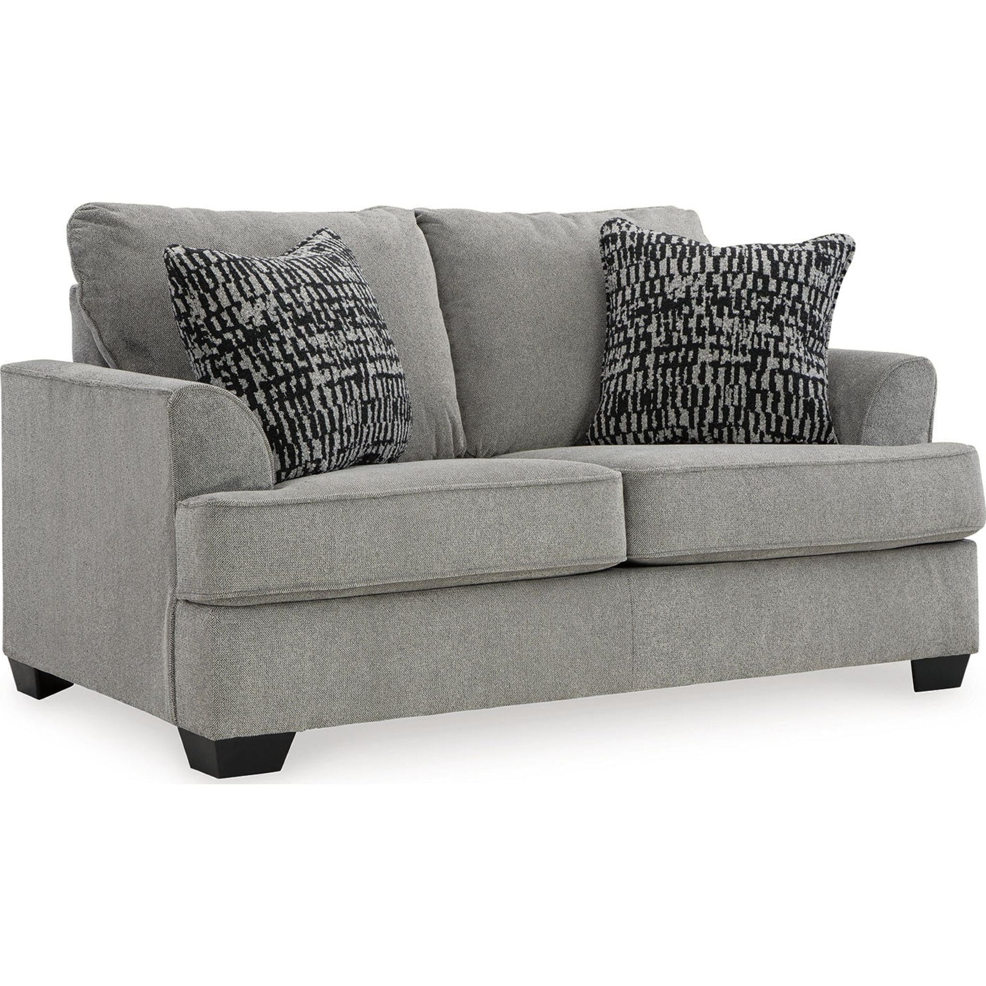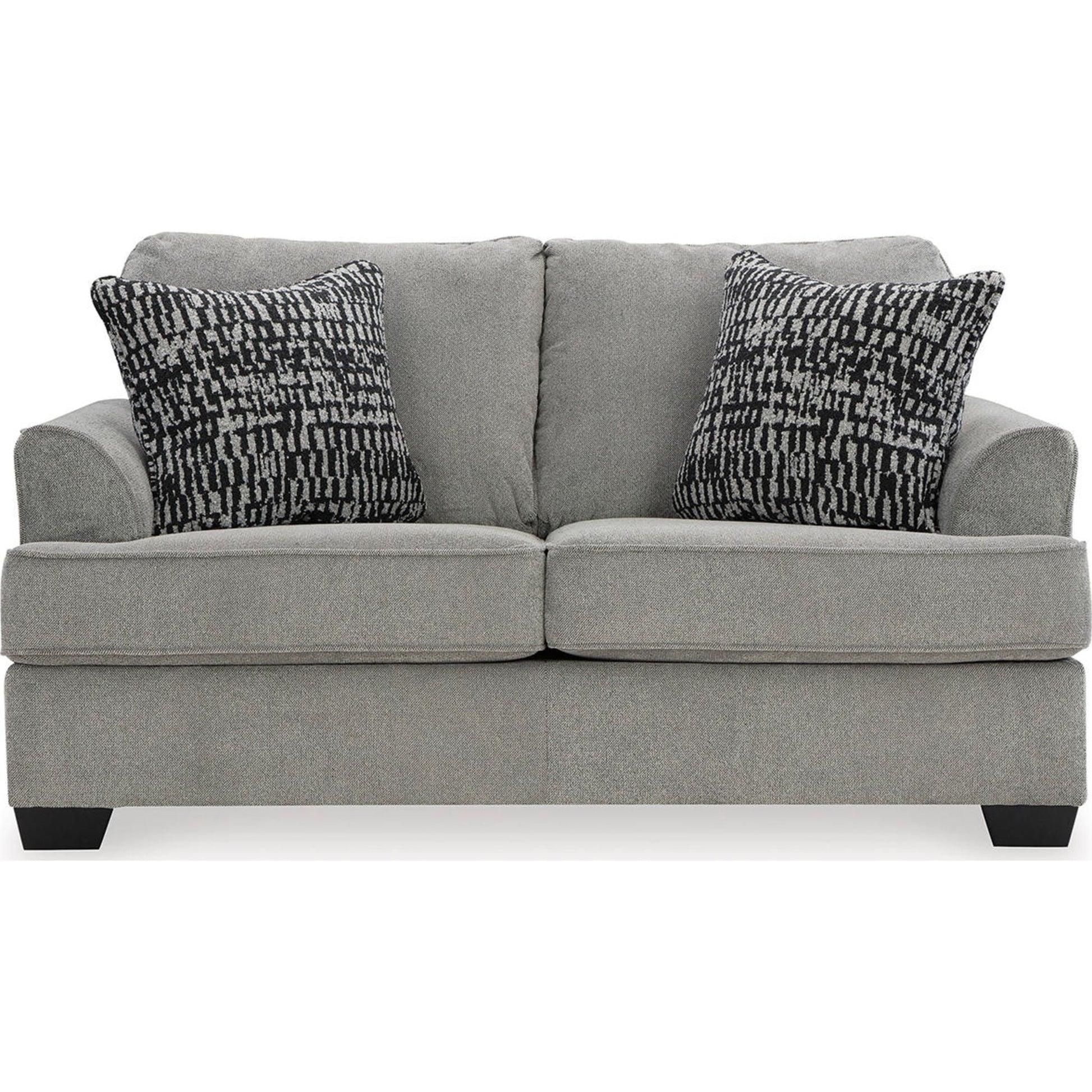 Stealing the show in on-trend, wonderfully plush upholstery, this loveseat takes center stage with its comfort and contemporary look. A generous seat depth makes the high-design piece comfortable enough for easy everyday living. Sit back and relax in clean, cool style anywhere and everywhere you please with this striking loveseat.