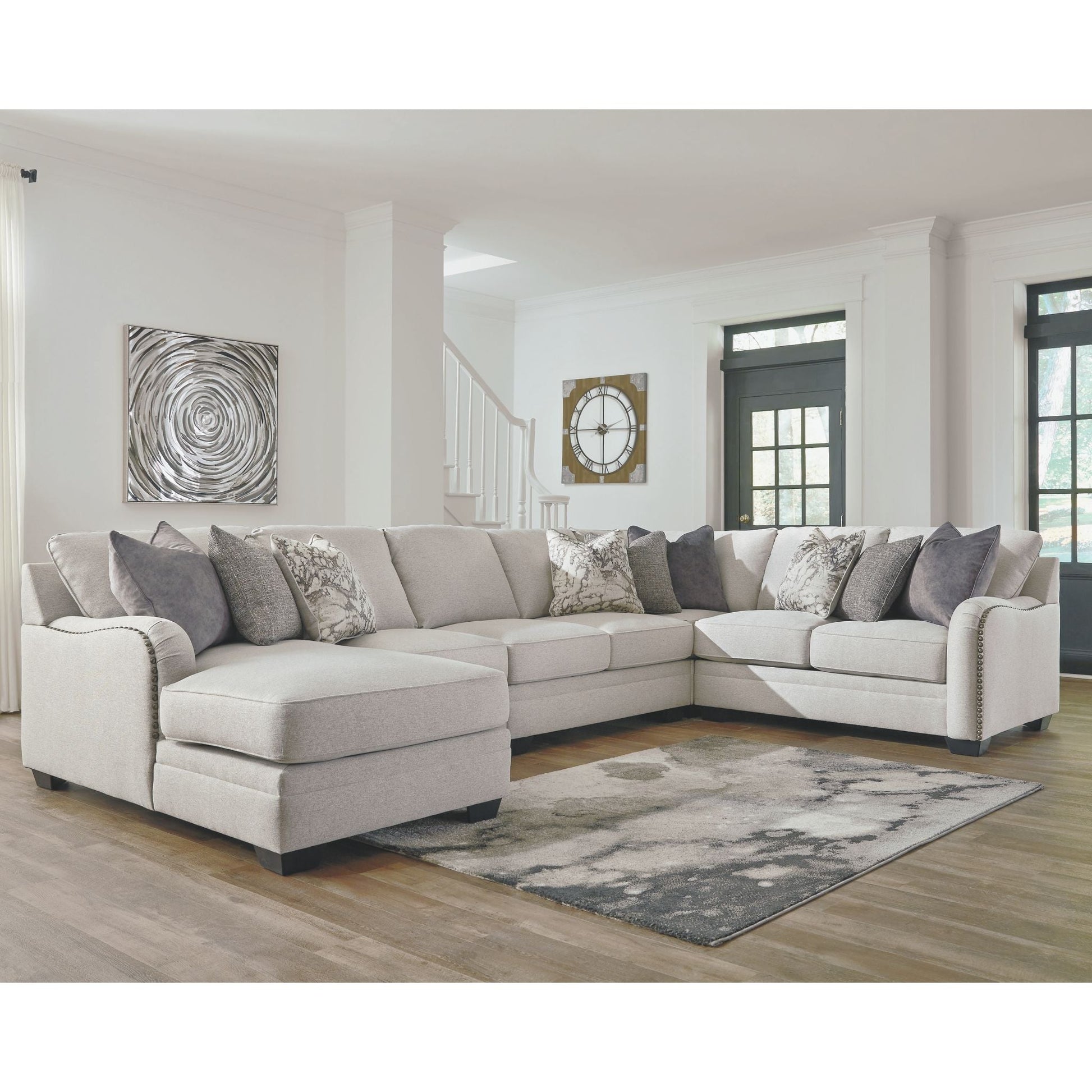 Looking for a 'transitional' look that’s as comfortable in contemporary spaces as it is in classic surroundings? Rest your eyes on the beauty of this sectional. The soft, tight woven texture and chalky beige hue are so in the now. Gracefully curved arms punctuated with oversized nailhead trim infuse a sense of everyday elegance.