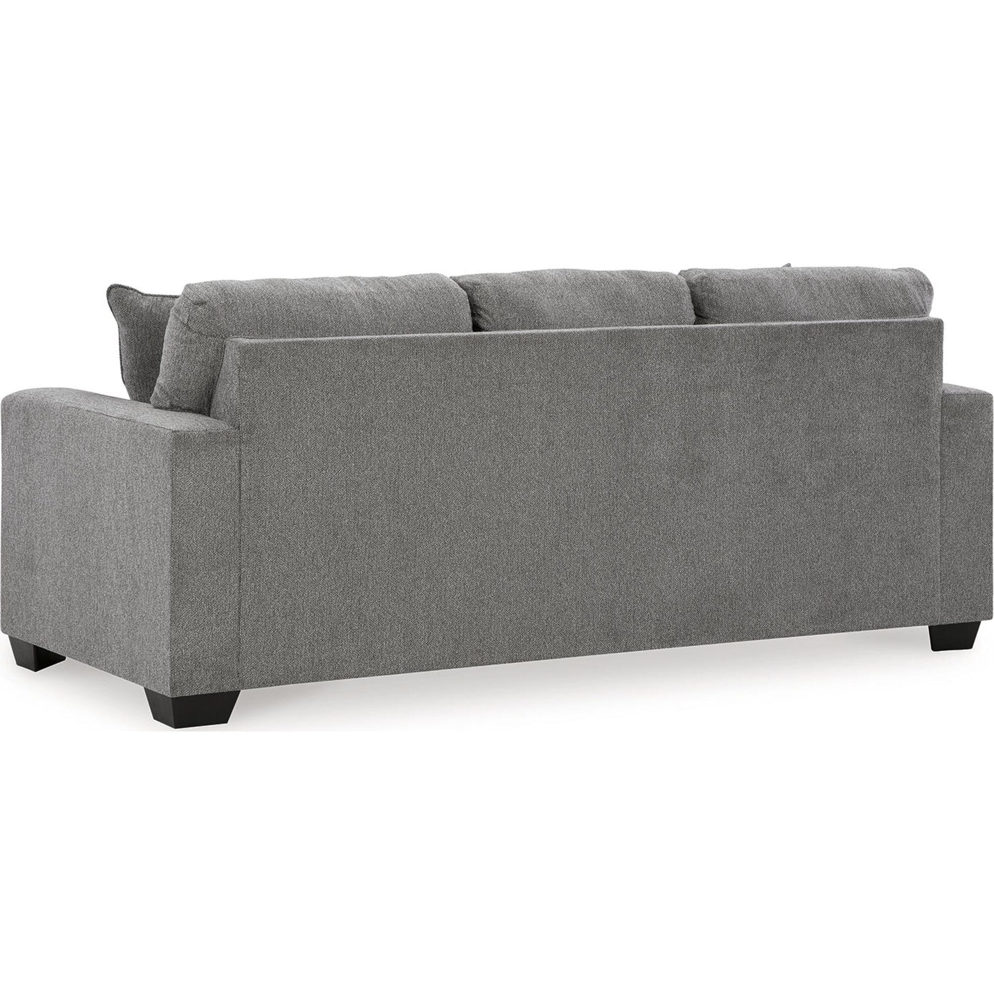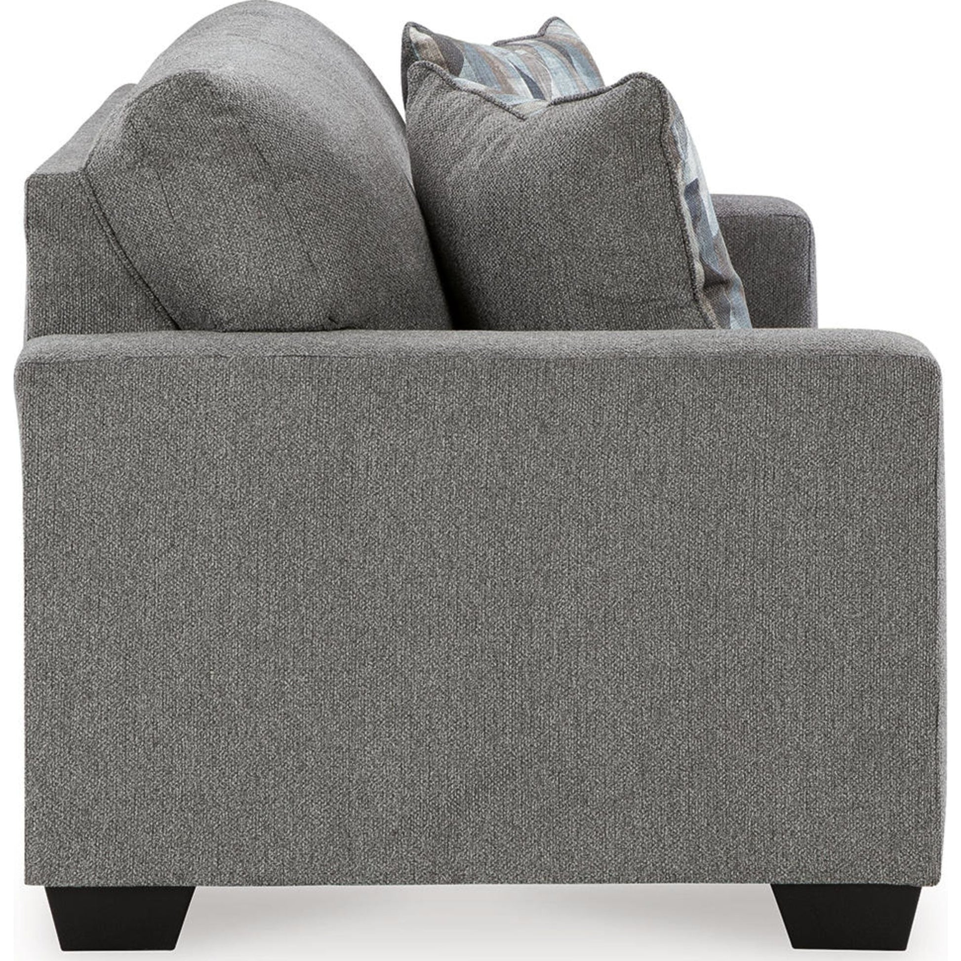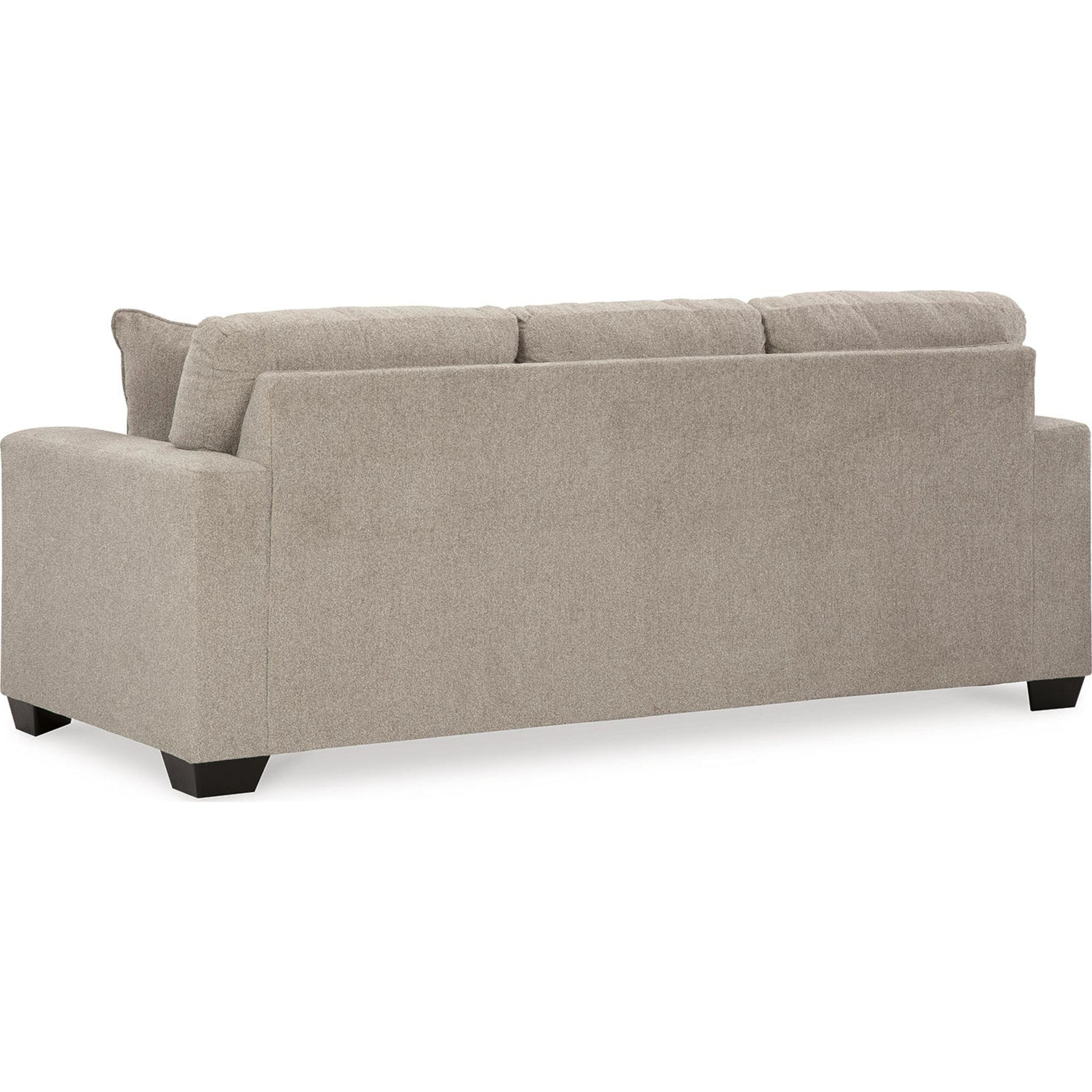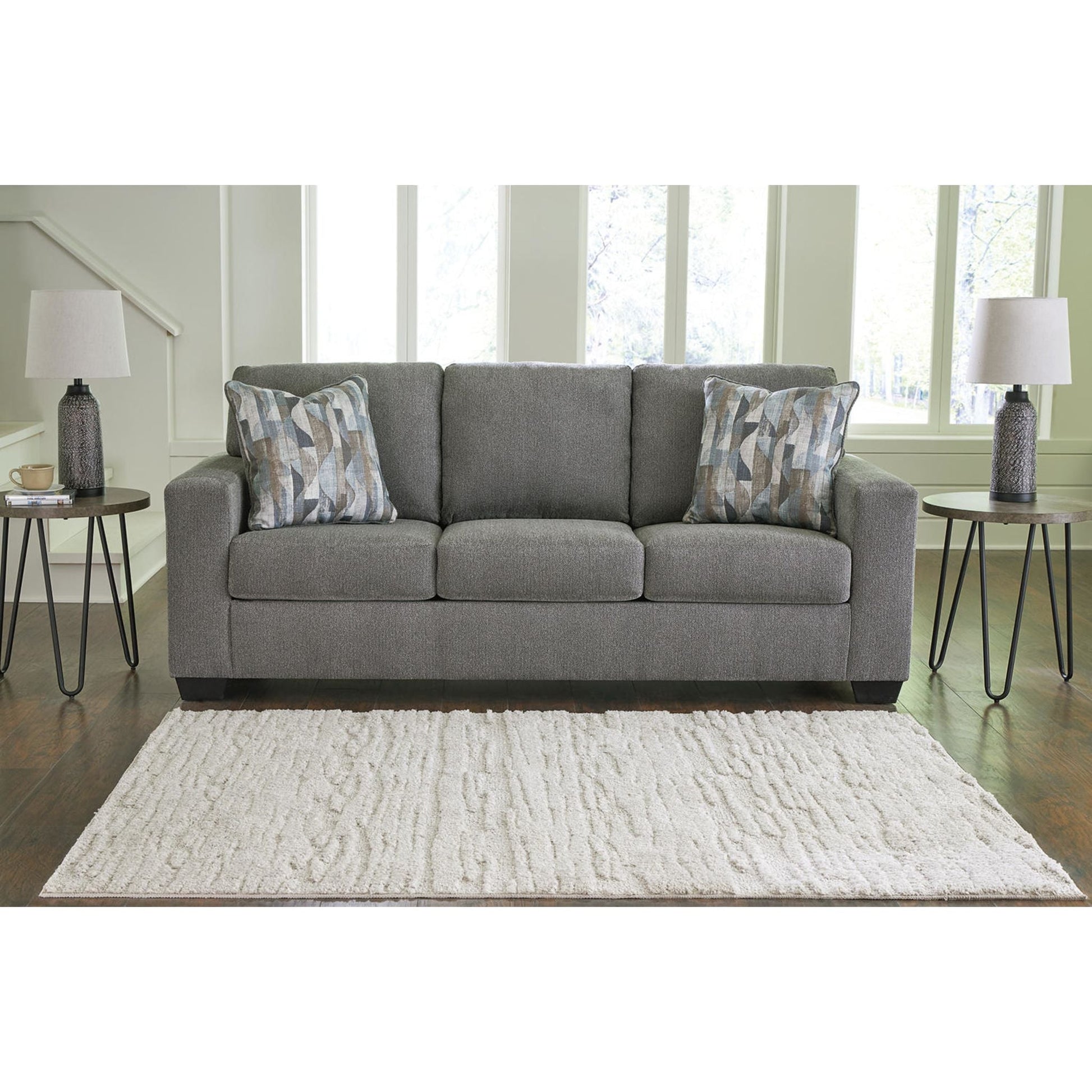 You’re in for a neat treat with this sofa. Its comfy seats are covered in soft, textural upholstery, and the wide track arms are eager to support your quest for total relaxation. Distressed abstract toss pillows bring a fresh breath of contemporary style while accentuating the sofa's color.