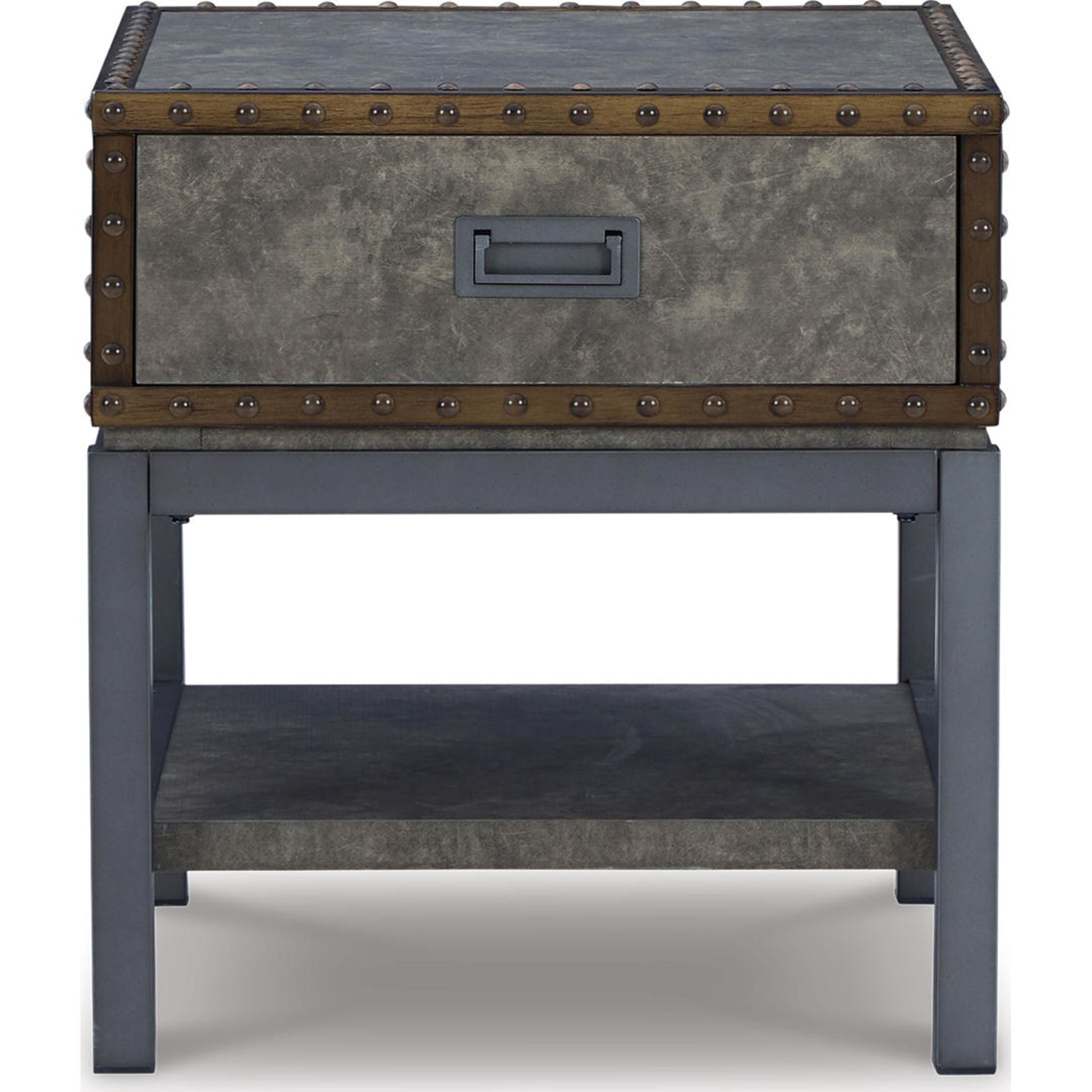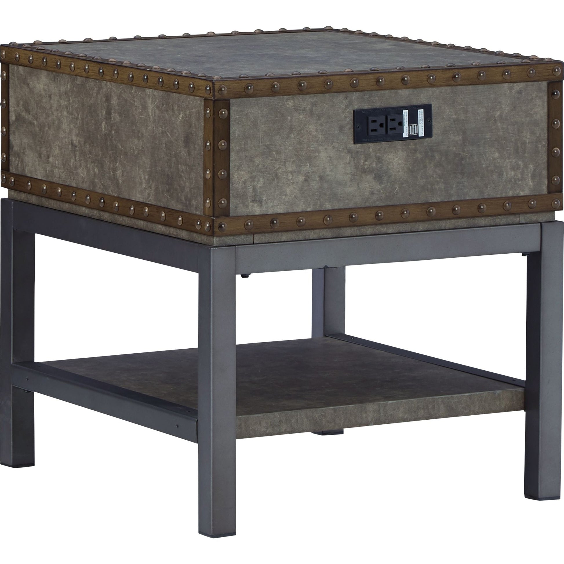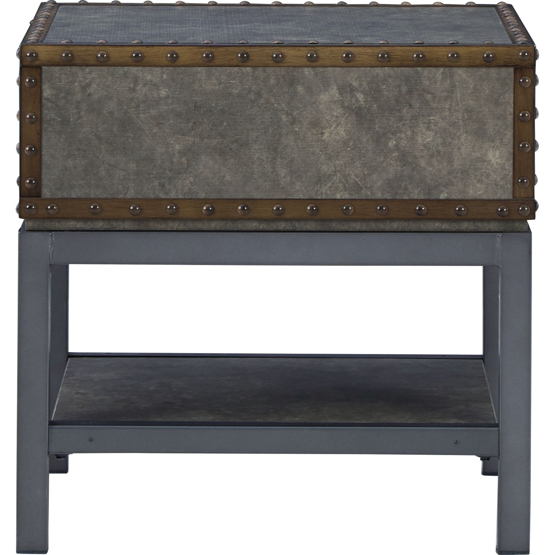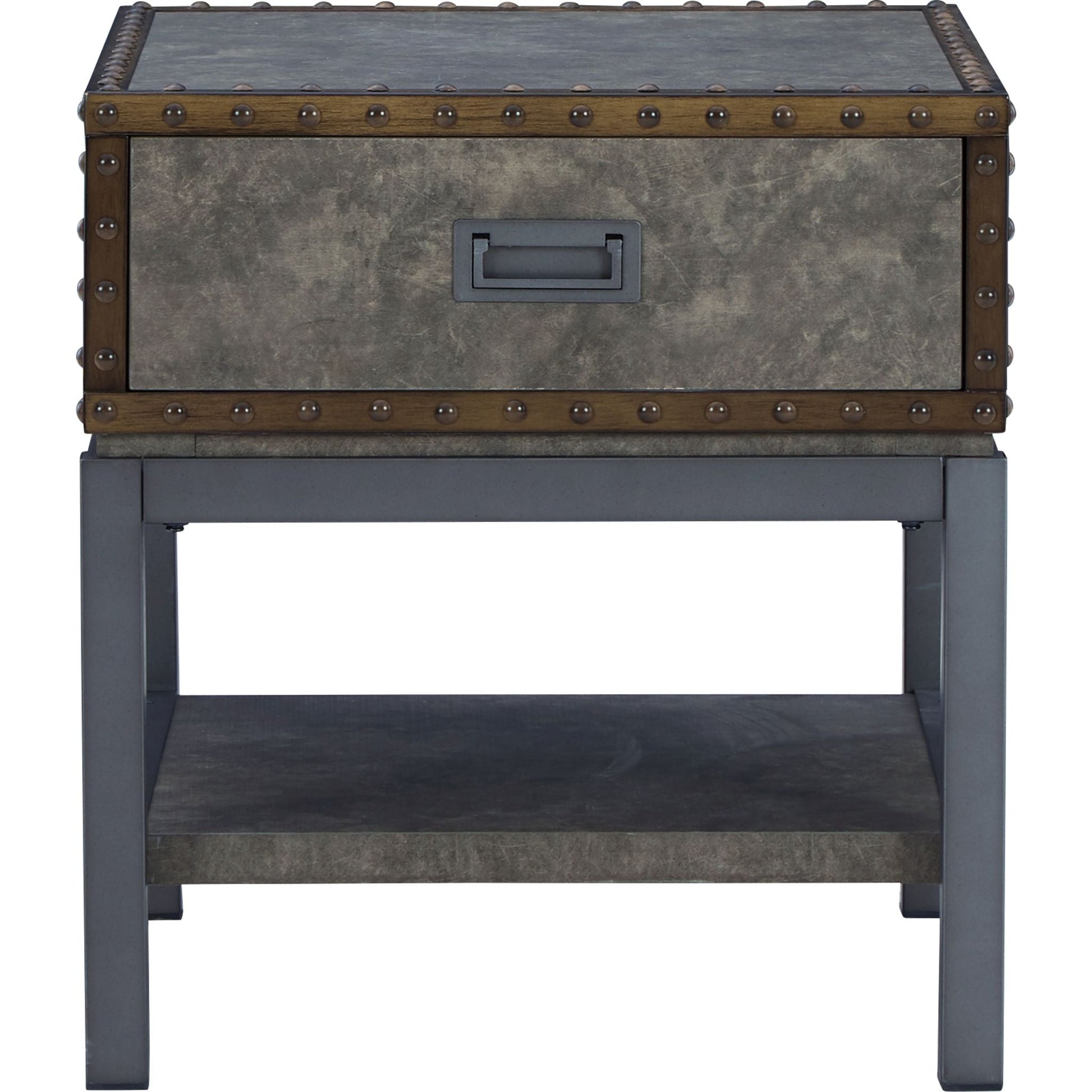 Reinvented for the here and now, this end table rocks vintage industrial design with a traditional vibe. Its metal accent trim and bronze-tone metal base are ready to embrace the modern demands of everyday life. A lower shelf and a fully finished drawer provide plenty of storage, while the built-in power supply with dual USB charging keeps your devices charged up and ready.