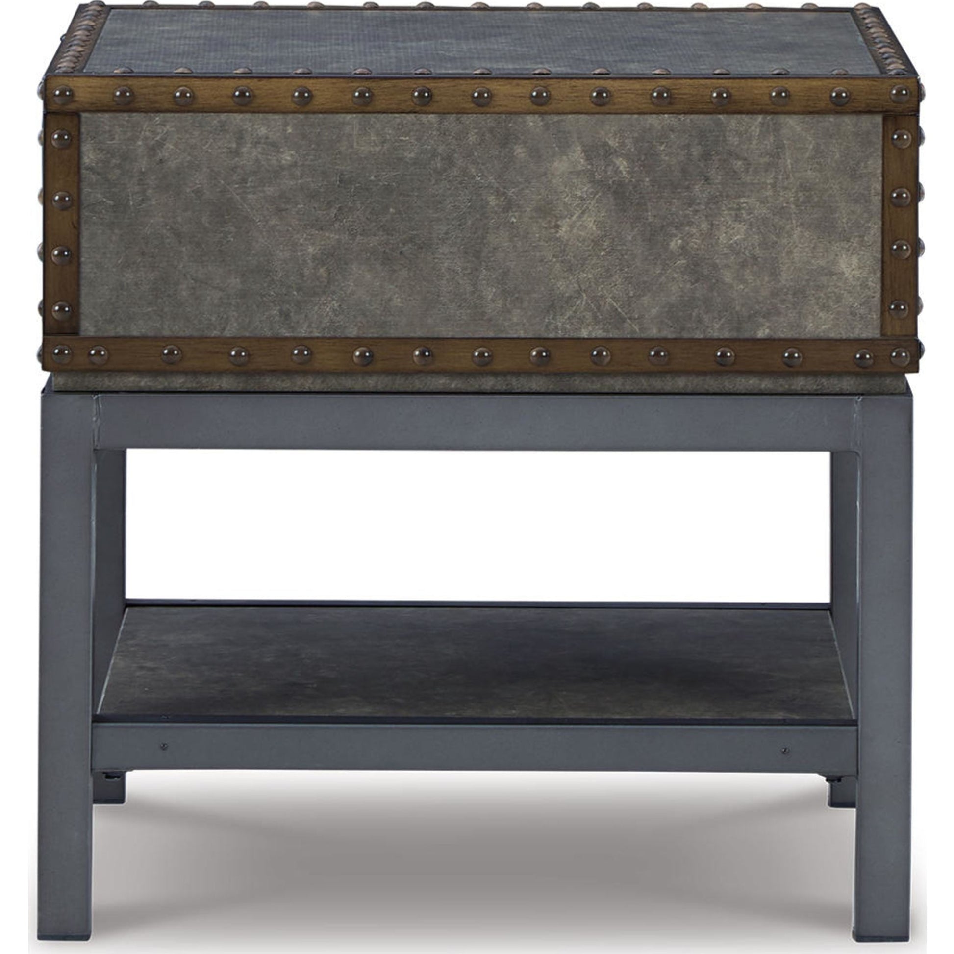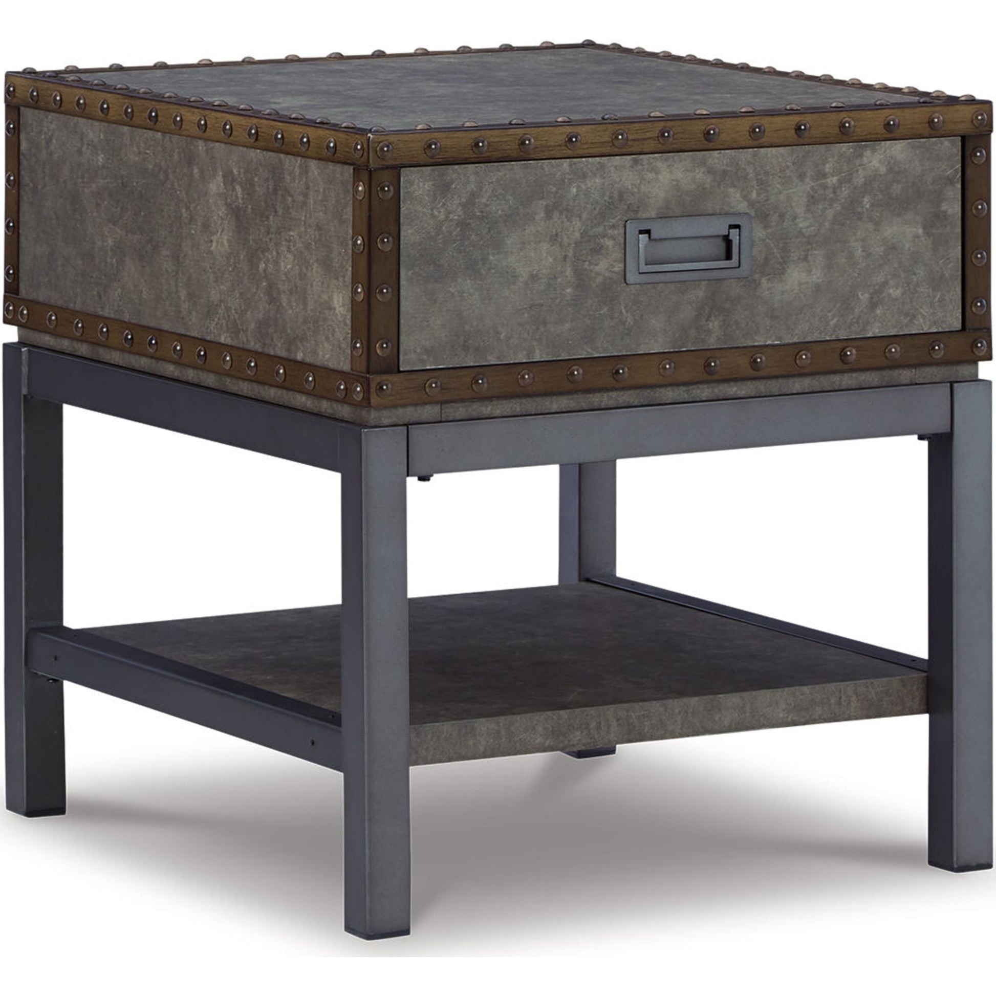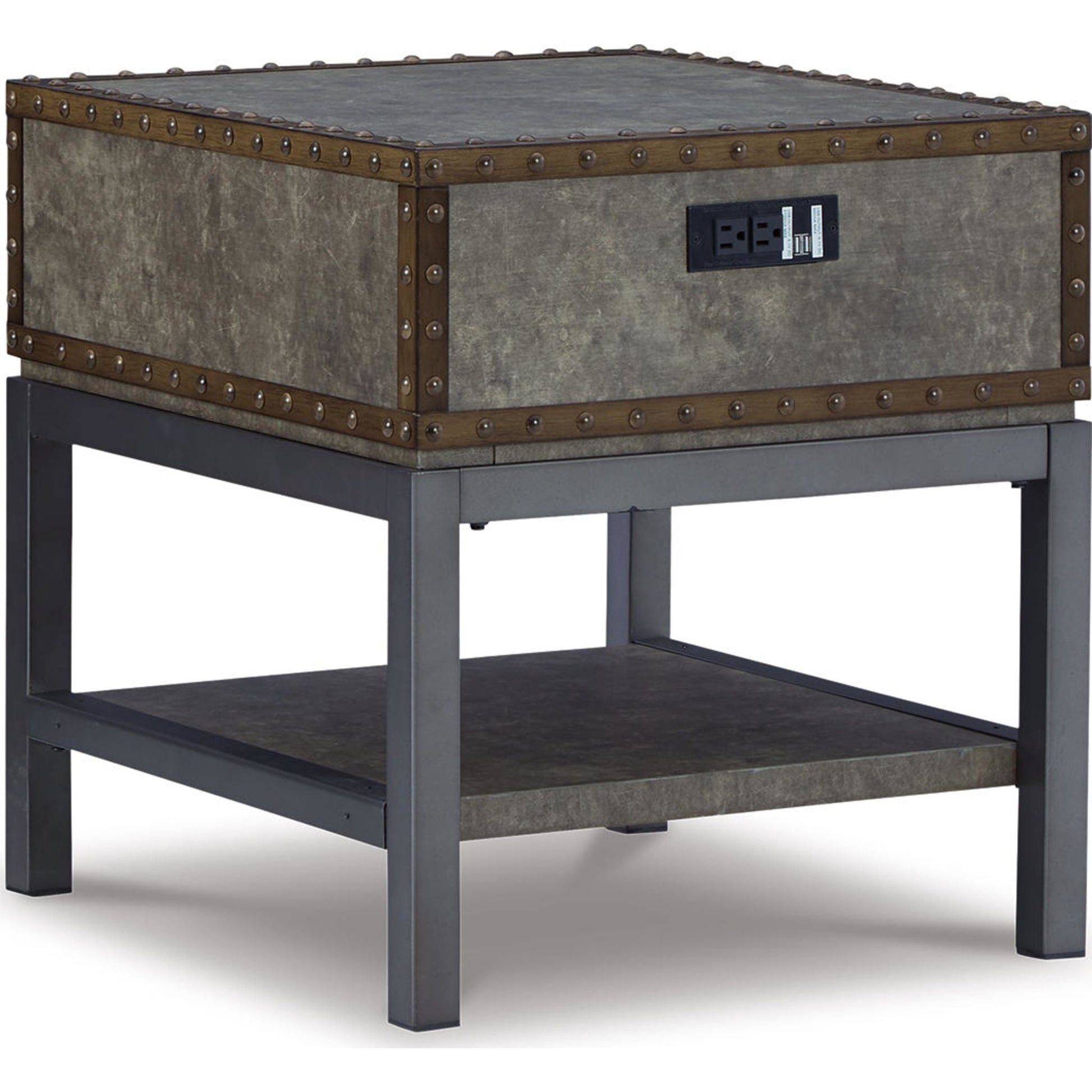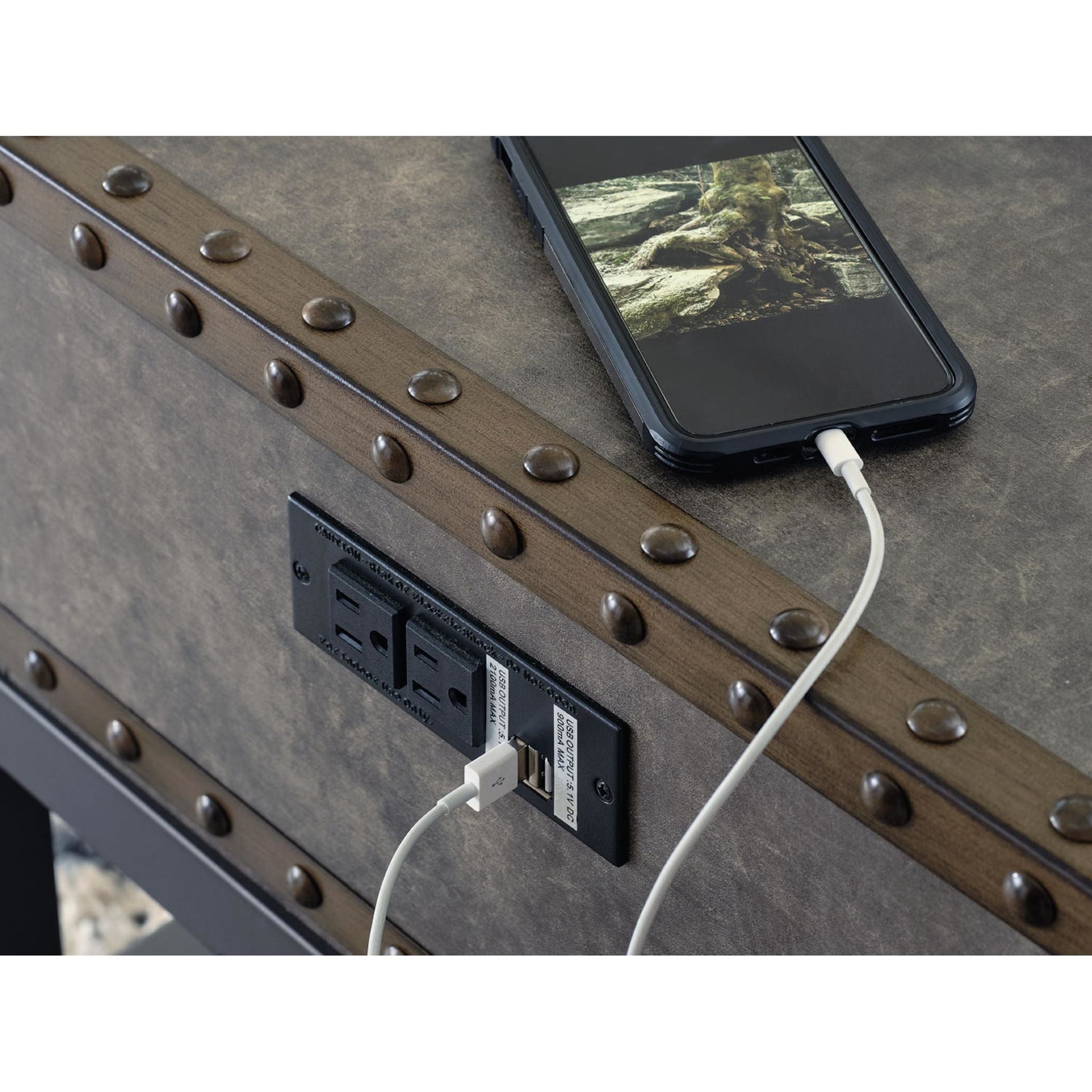 Reinvented for the here and now, this end table rocks vintage industrial design with a traditional vibe. Its metal accent trim and bronze-tone metal base are ready to embrace the modern demands of everyday life. A lower shelf and a fully finished drawer provide plenty of storage, while the built-in power supply with dual USB charging keeps your devices charged up and ready.