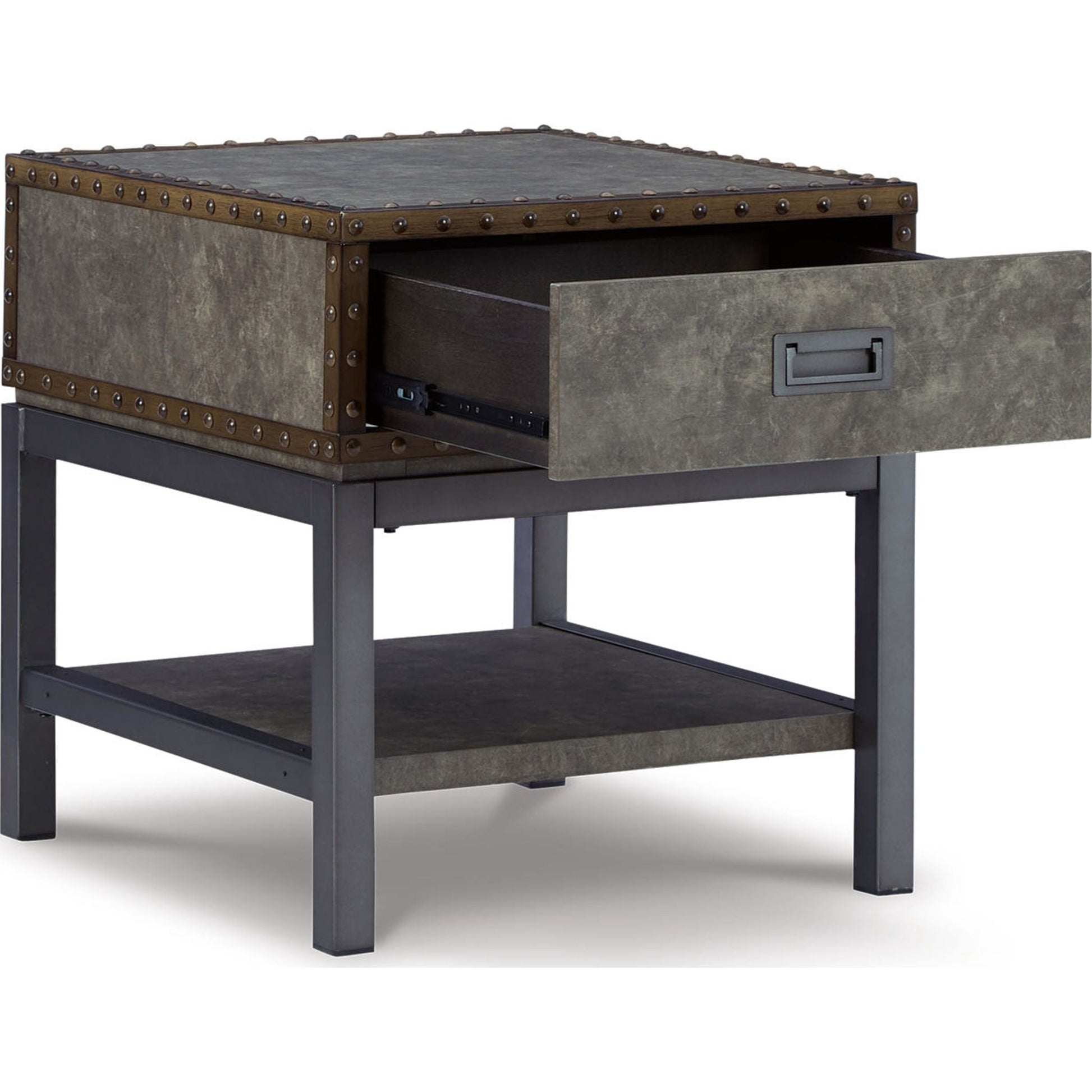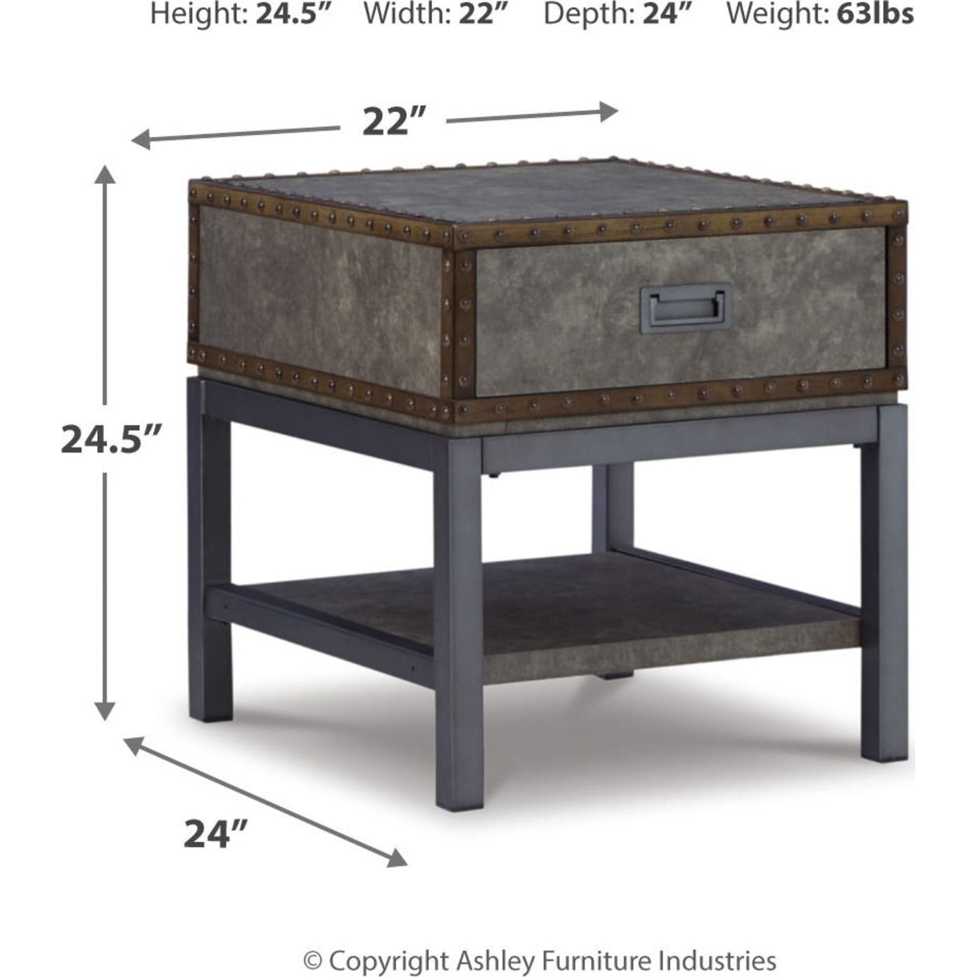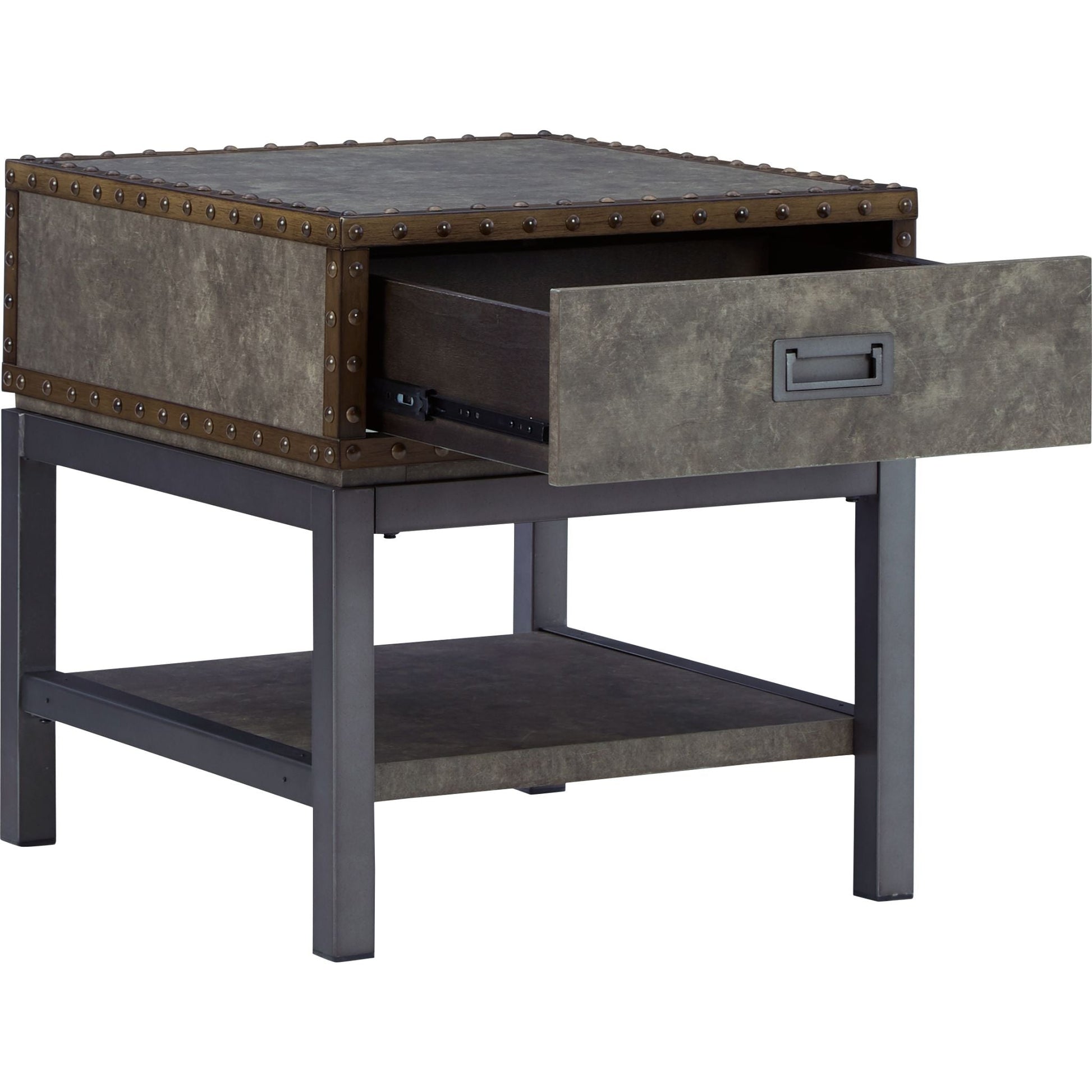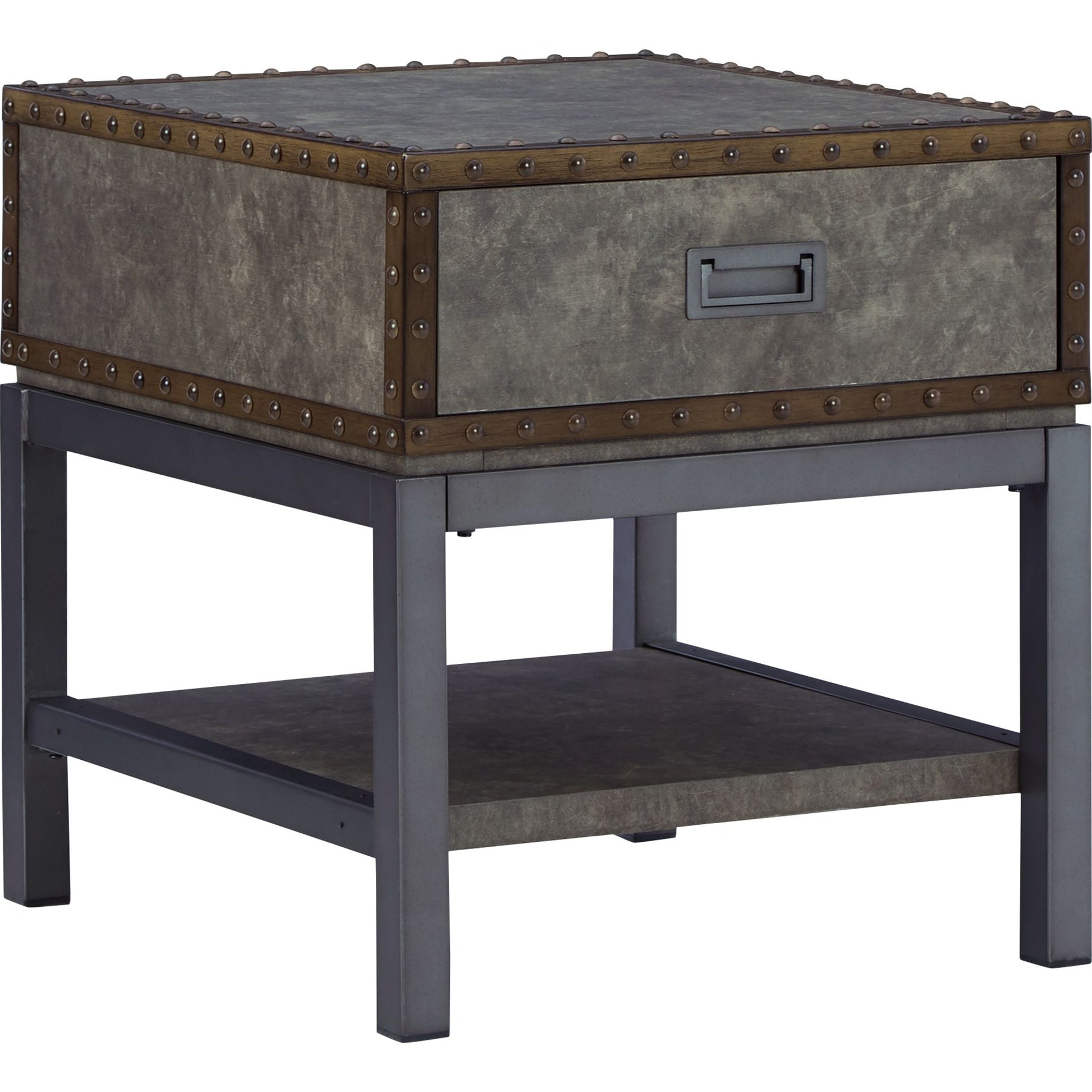 Reinvented for the here and now, this end table rocks vintage industrial design with a traditional vibe. Its metal accent trim and bronze-tone metal base are ready to embrace the modern demands of everyday life. A lower shelf and a fully finished drawer provide plenty of storage, while the built-in power supply with dual USB charging keeps your devices charged up and ready.