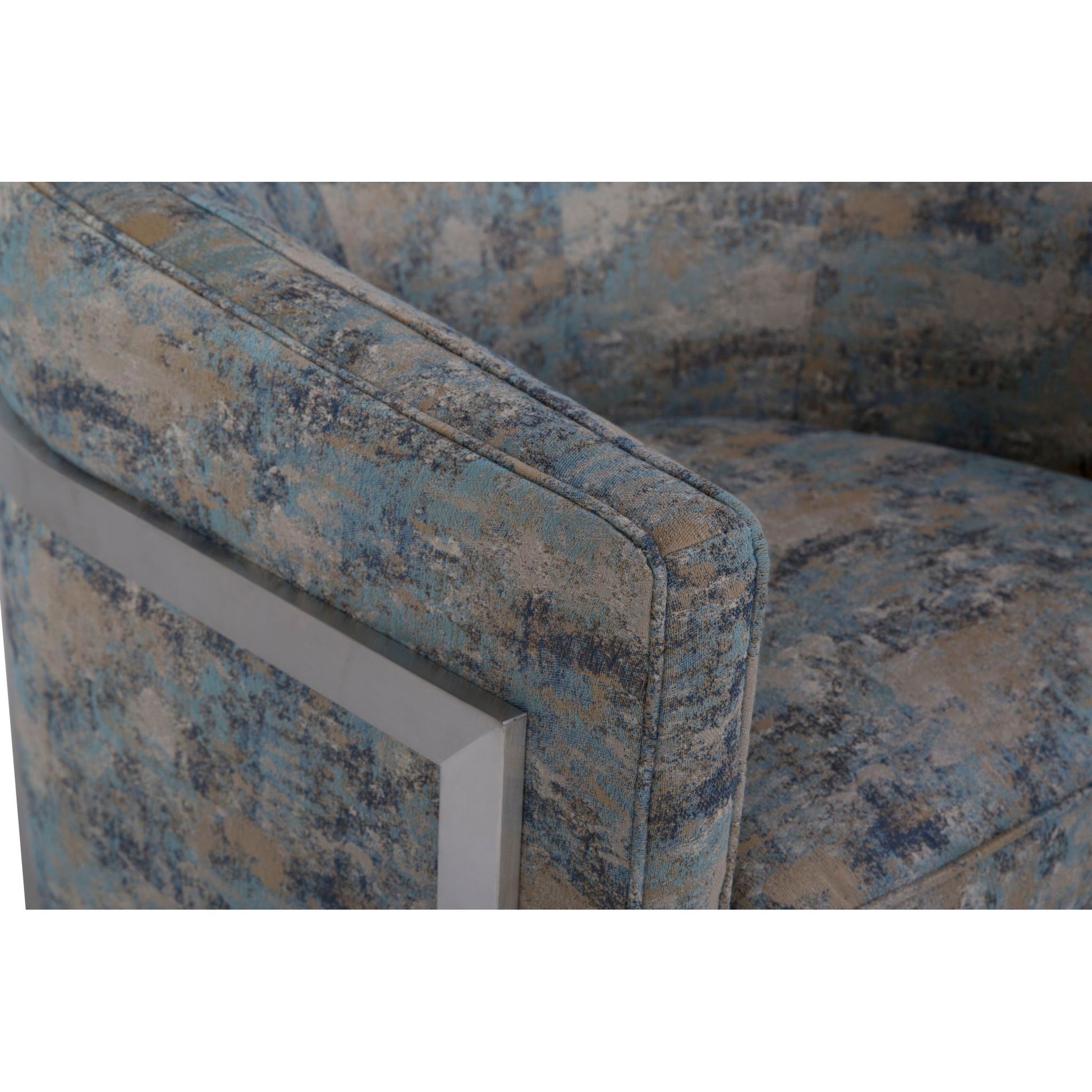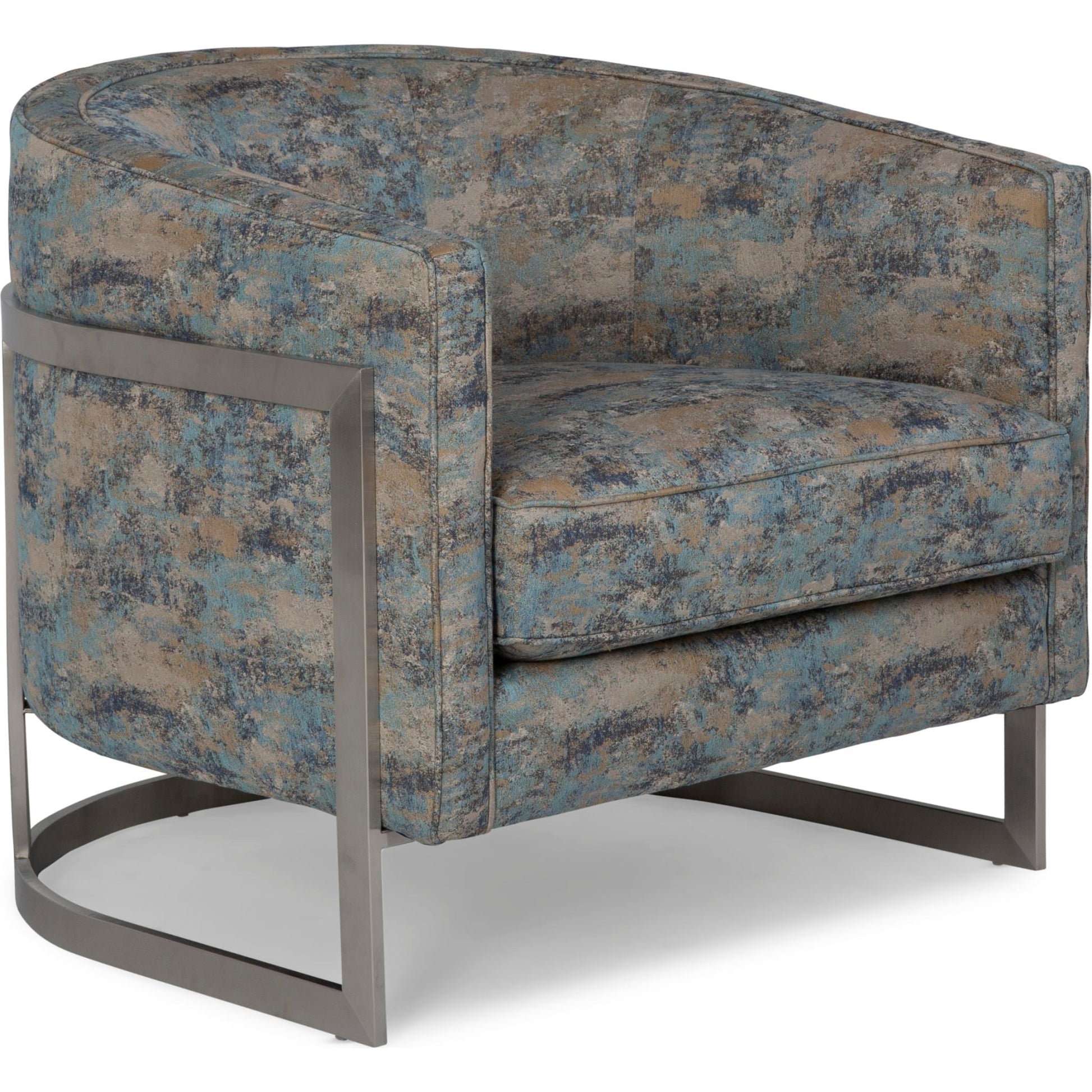 Bring Attention to Your Formal Living Room With The Dezi Accent Chair Give new life to your formal living room by adding a Dezi accent chair in each corner of the room. Deep colours of the fabric upholstery blend well with dark furniture. The fabric and curved metal legs are in modern style, adding detail for a variety of colour choices in any room. The sinuous spring structure maintains this long-lasting custom accent chair so it doesn't sag over time. The 1.9-lb. high-resilience foam in the seat and back add comfort and support to this customizable accent chair. Place this chair in your living room, and add monochrome throw cushions for a touch of elegant style. The Dezi accent chair features dark marble-tone colours that blend with a variety of formal living room schemes This accent chair offers a modern-luxe style High-resilience foam adds durability Made in Canada