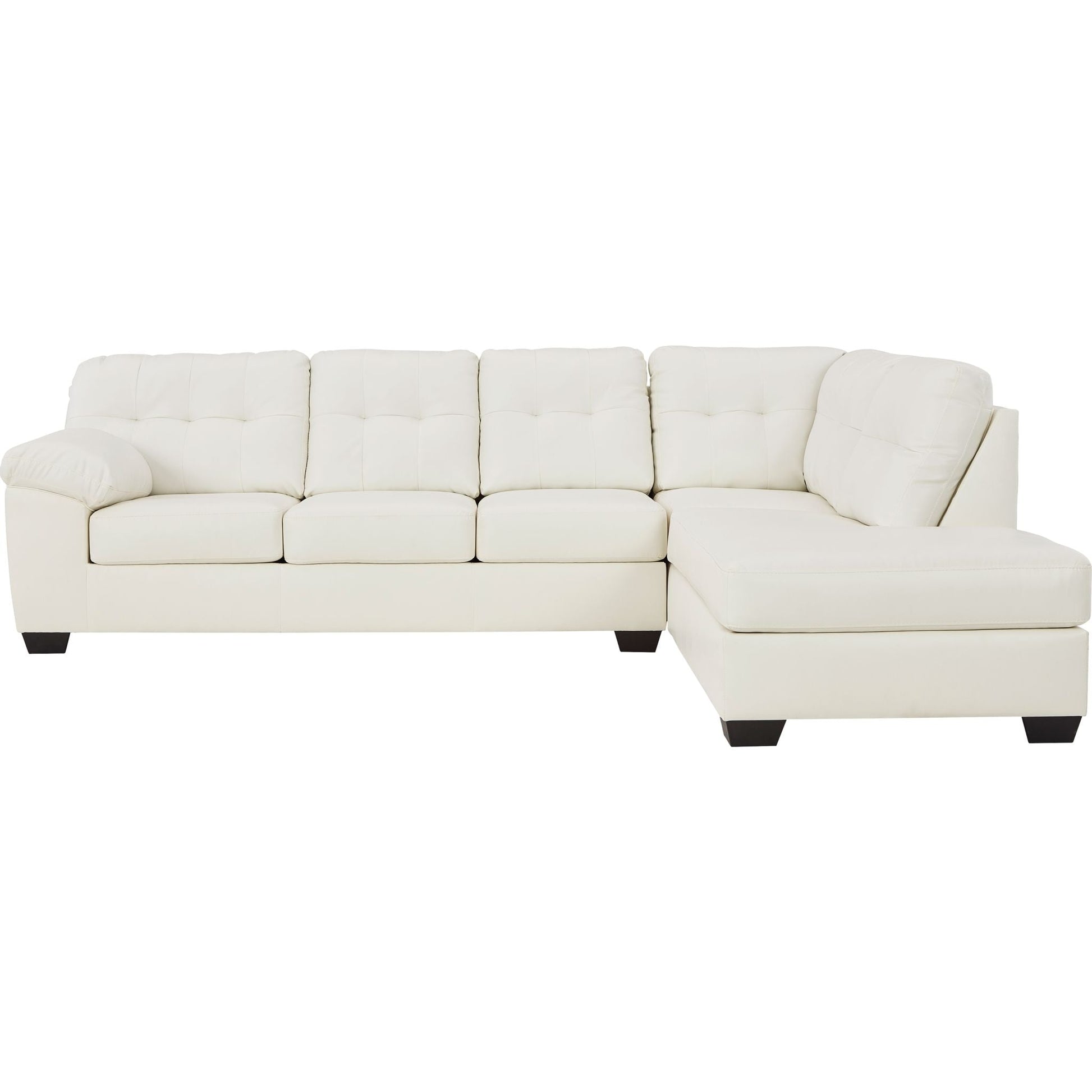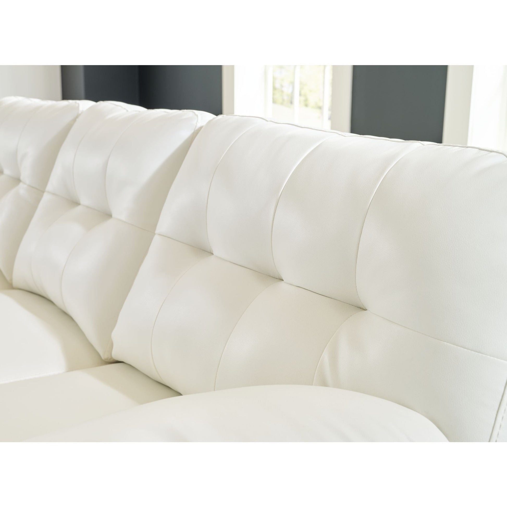 Dressed in glorious white faux leather, this sectional is certain to be the center of attention. With tasteful tufting, padded armrests and a sleek tapered design, its generous scale lets you share the space with family or use it for entertaining when friends drop in.