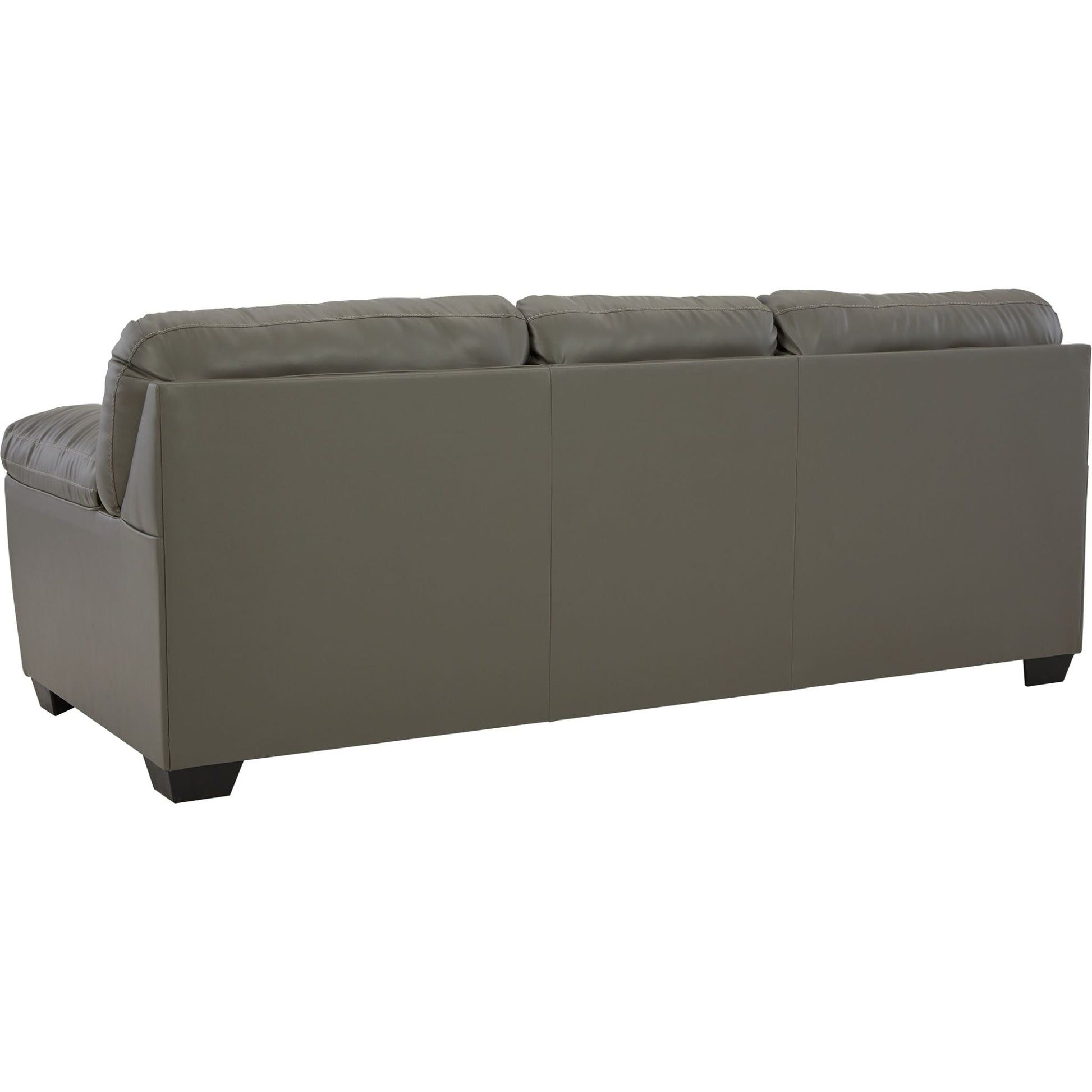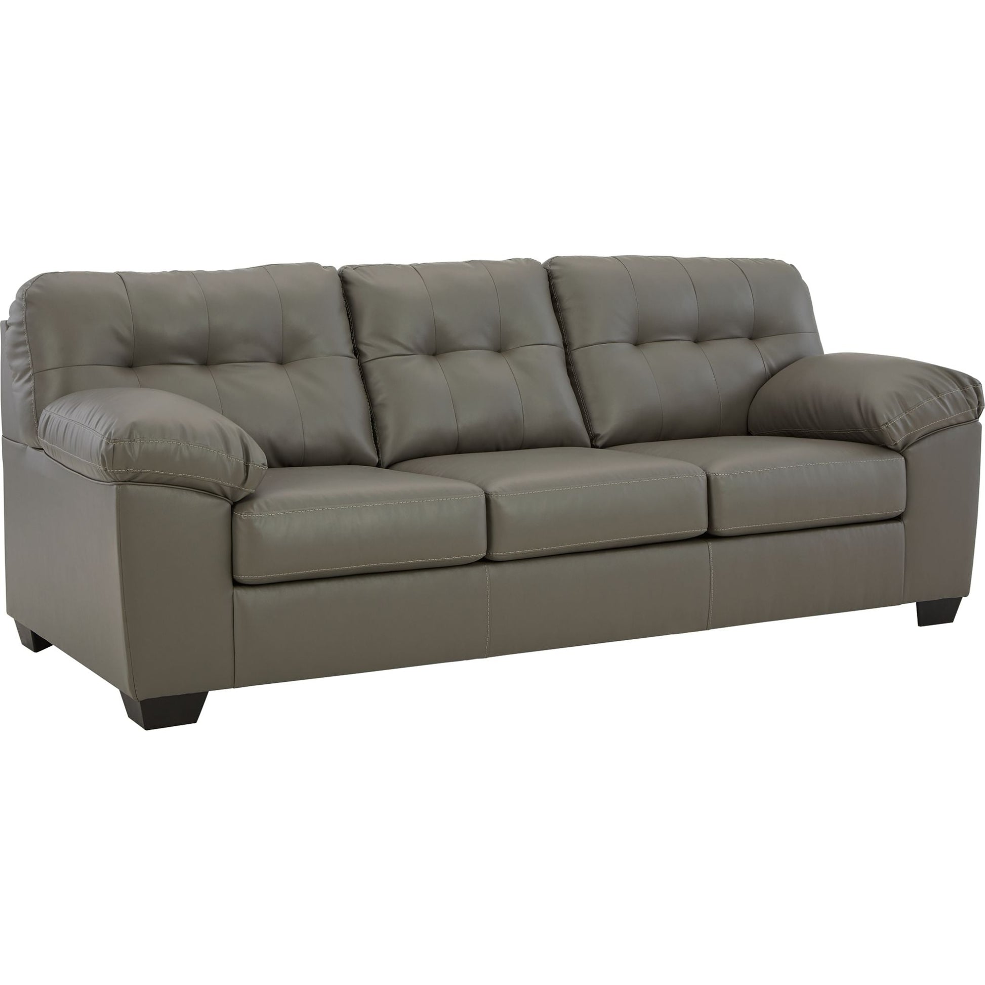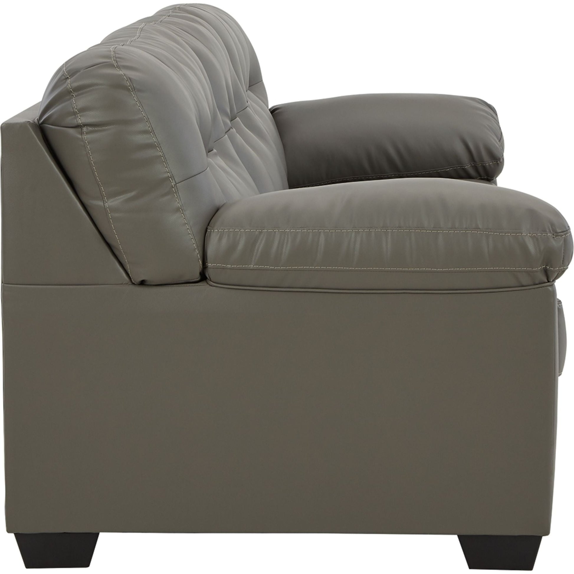 Dressed in glorious gray faux leather, this sofa is certain to be the center of attention. With tasteful tufting, padded armrests and a sleek tapered design, it combines style and comfort. This sofa's generous scale lets you kick back and relax at home solo or when hosting friends.