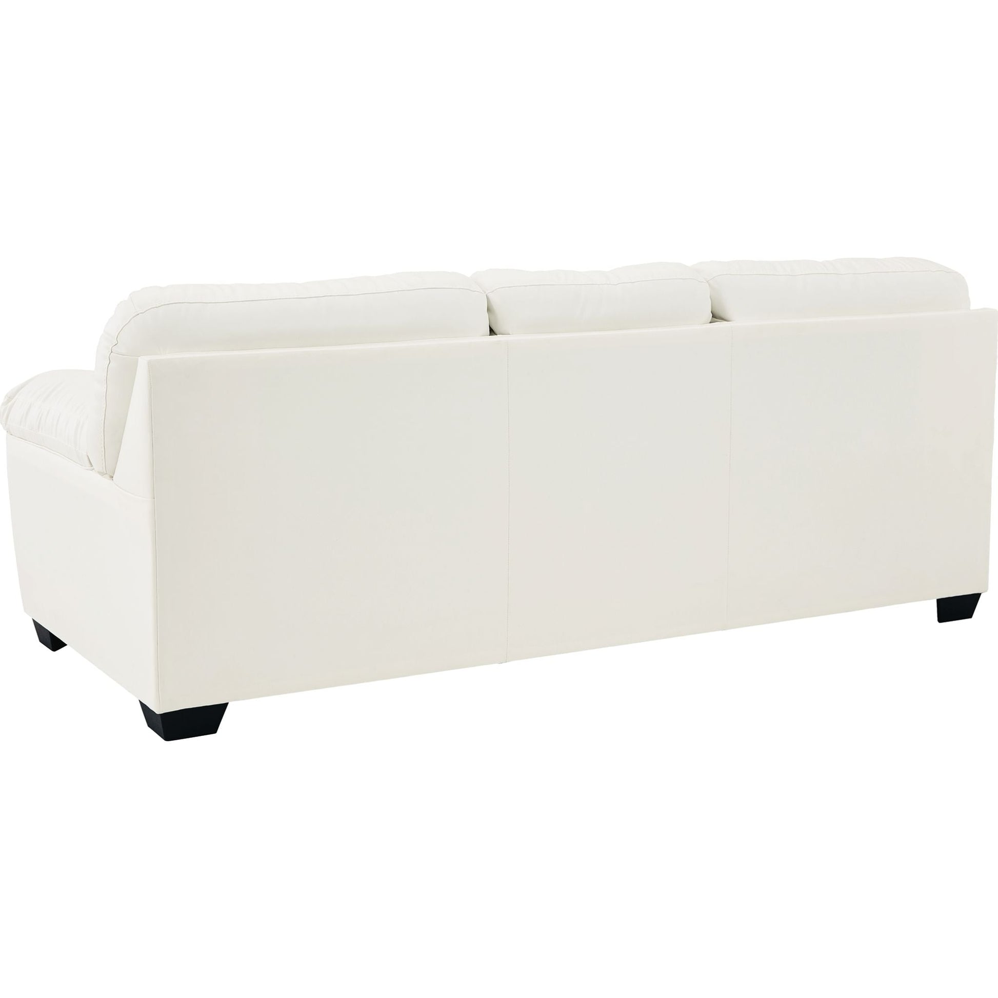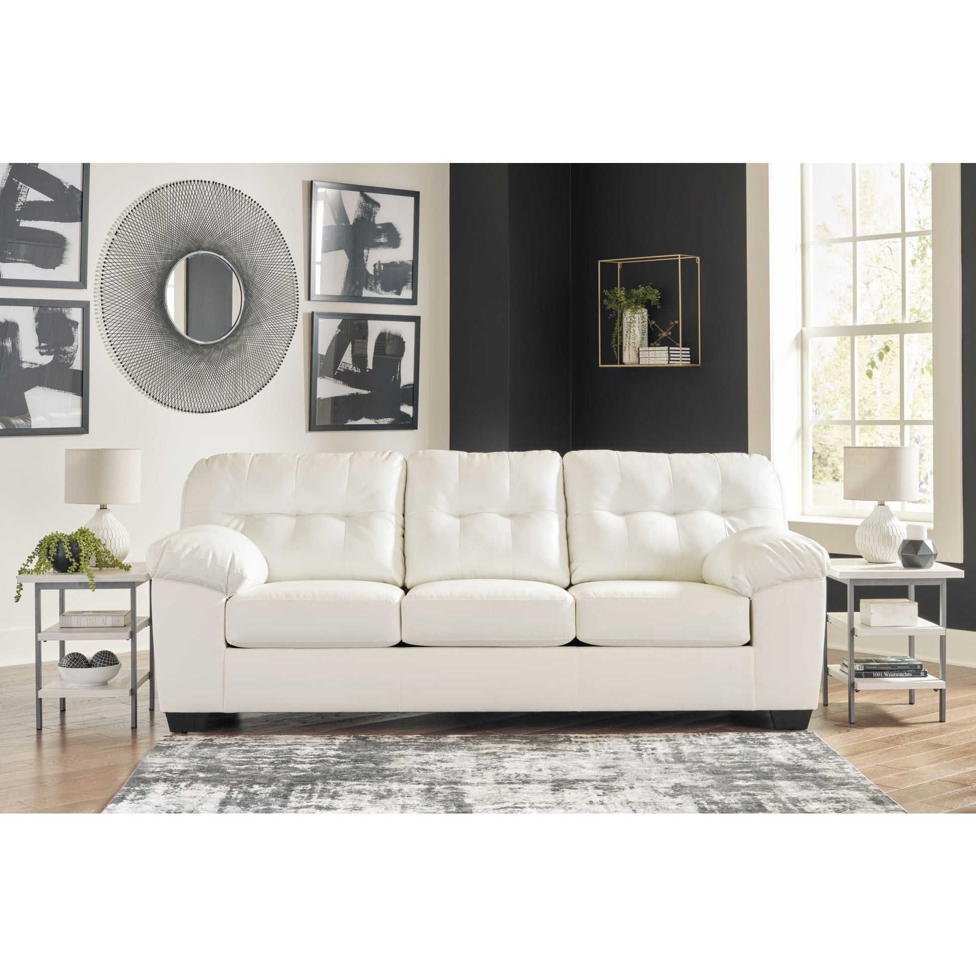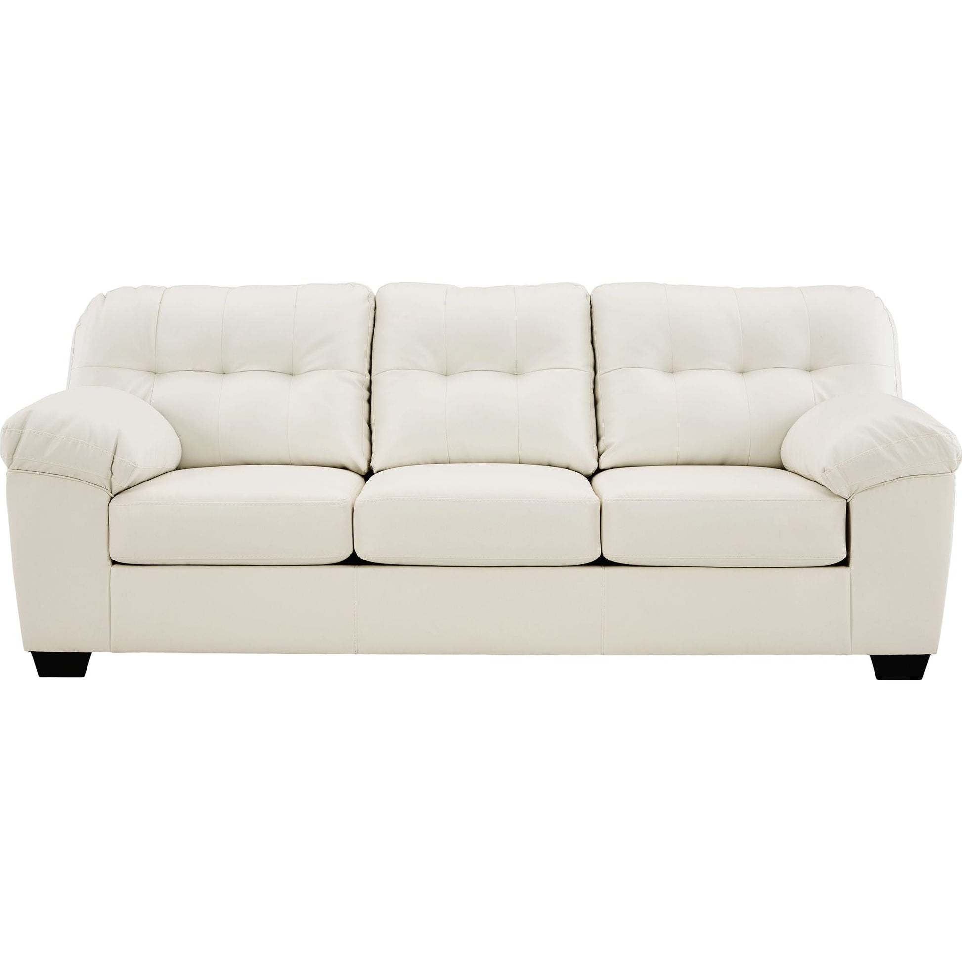 Dressed in glorious white faux leather, this sofa is certain to be the center of attention. With tasteful tufting, padded armrests and a sleek tapered design, it combines style and comfort. This sofa's generous scale and reclining motion let you kick back and relax at home solo or when hosting friends.