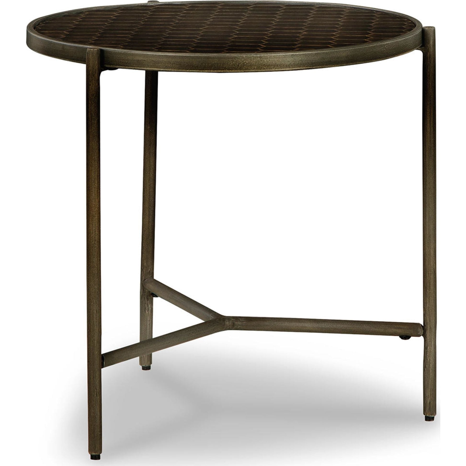 Play up your contemporary cool character with this round end table. The scooped honeycomb design on the top recalls retro motifs for a modern era, with a distressed brown finish enhancing the pattern. A round tubular base with a gray glaze rounds out the look. This table glows with a refined kind of radiance.