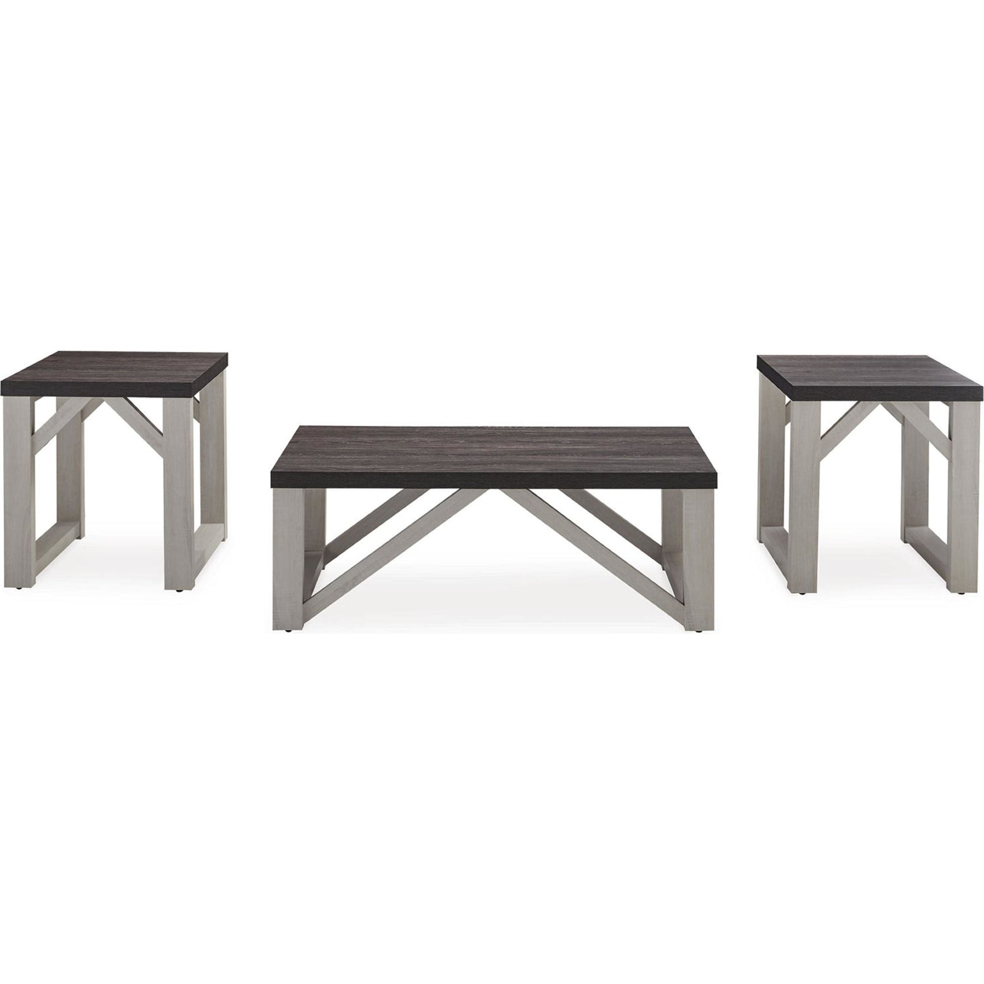 With an antiqued finish, plank-effect styling and an angled brace design, the Dorrinson table set is sure to elevate the look and feel of a room. Whether you embrace cottage chic or fancy modern farmhouse decor, these tables will look right at home flanking a sofa or chair.