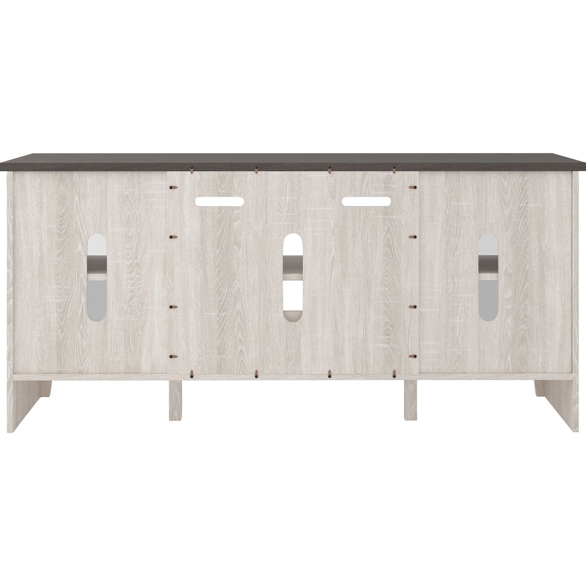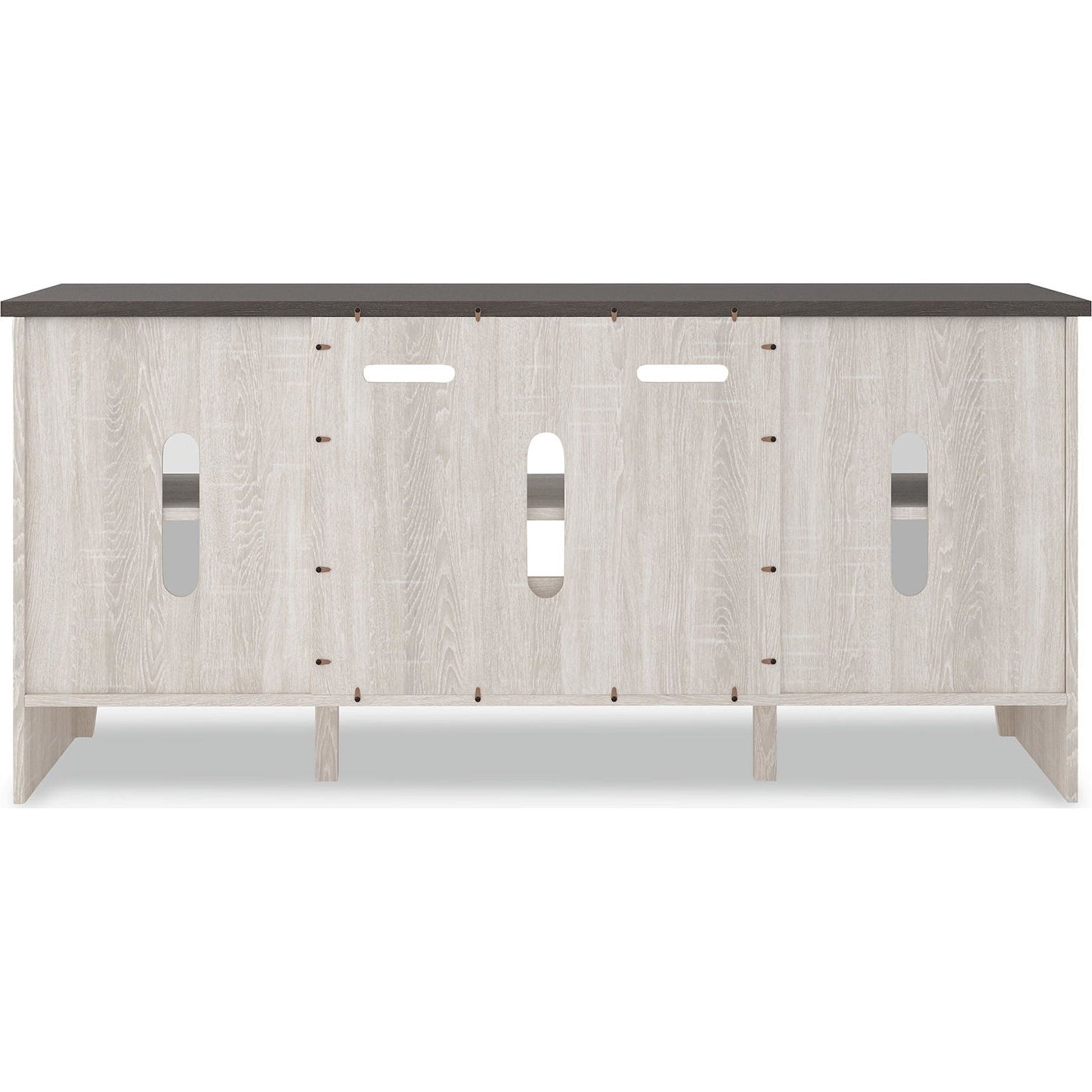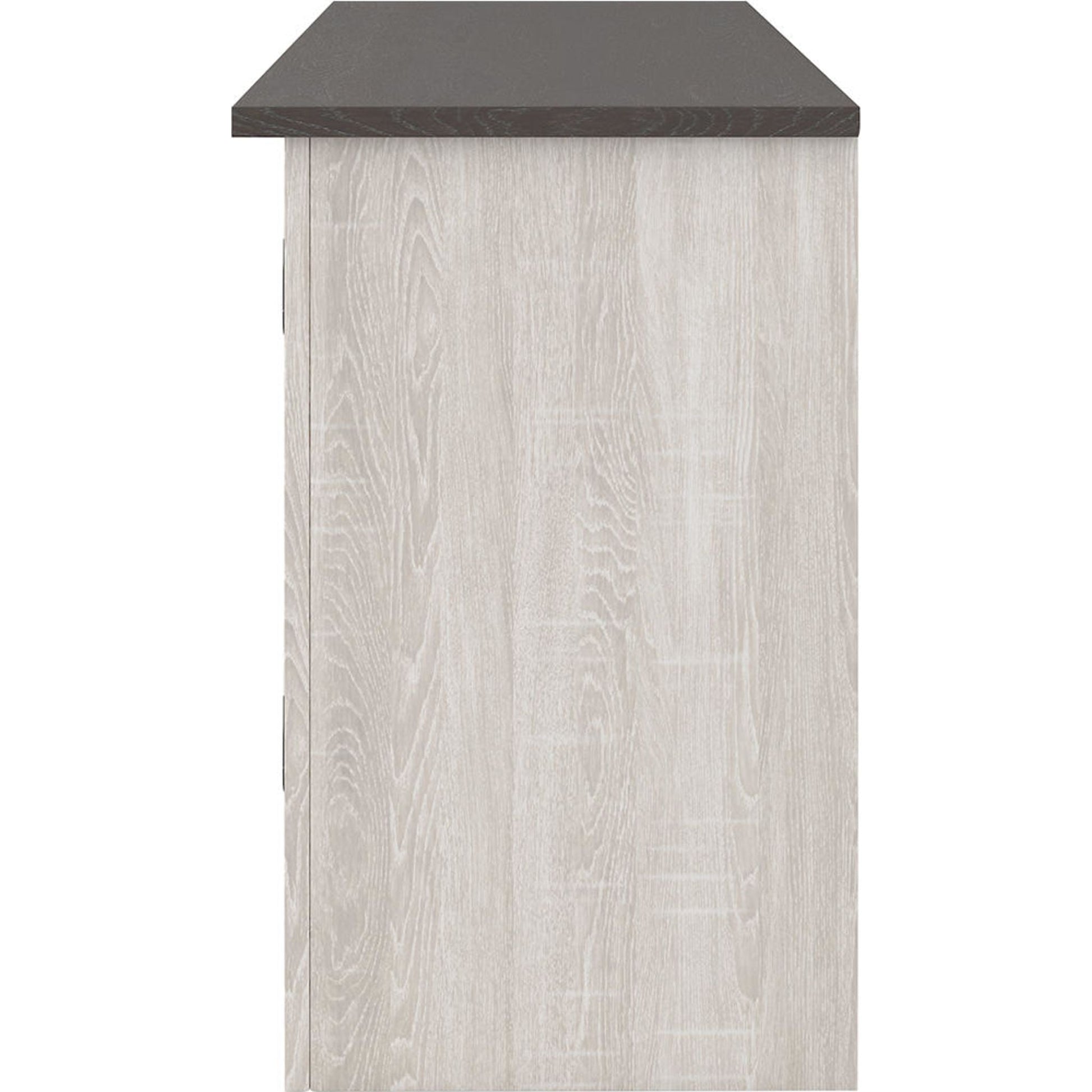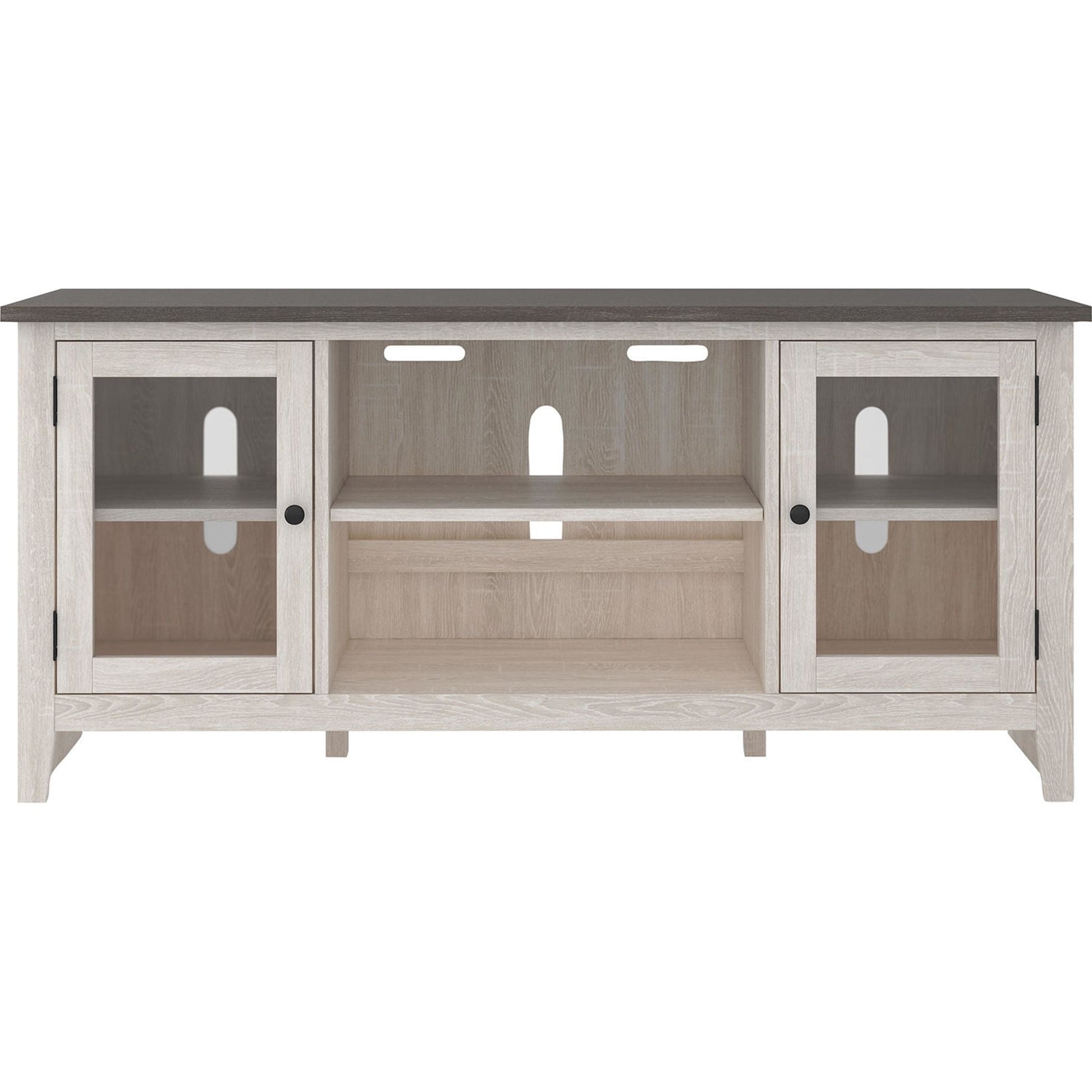 With its two-tone finish and minimalist charm, this TV stand with fireplace option is right in tune with your relaxed approach to high style. Beautifully made to accommodate your media equipment, it’s well equipped with adjustable shelving, cutouts for wire management and a pair of glass-front doors that enhance the clean-lined aesthetic. The look is ideal for modern farmhouse and contemporary settings.